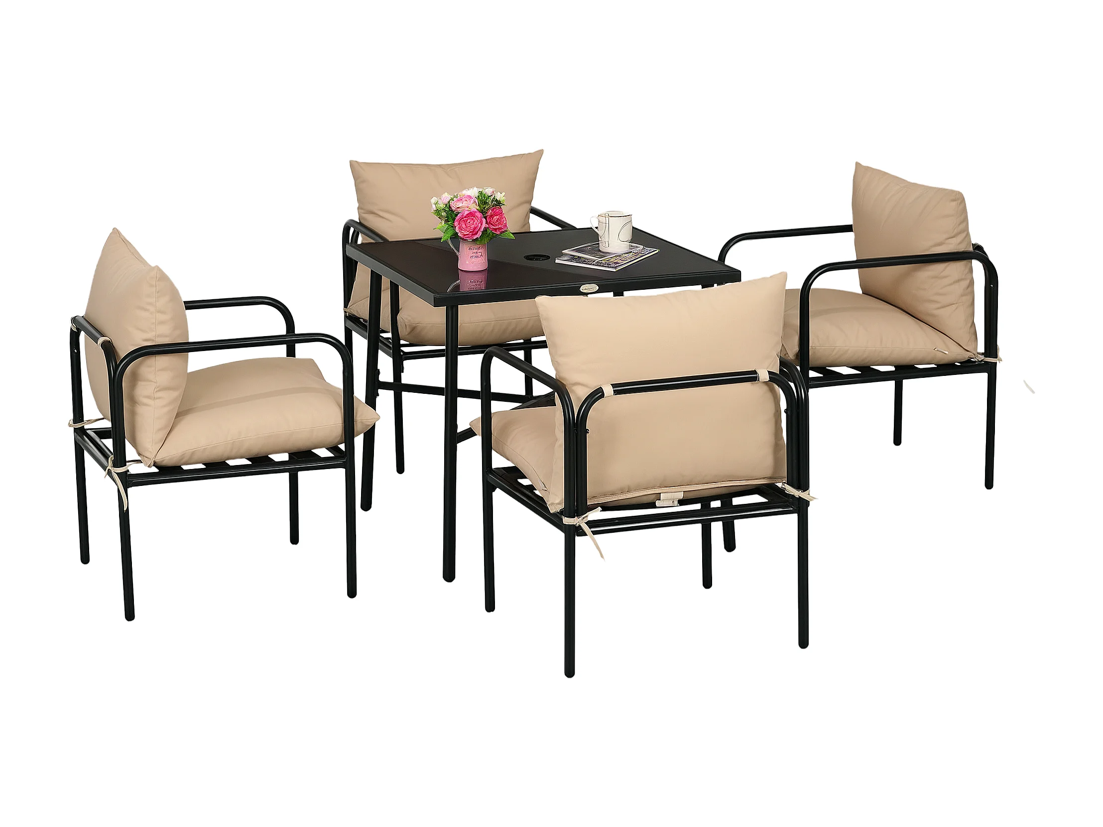 Ensemble salon de jardin 4 places 5 pièces - table à manger, 4 chaises, 4 coussins