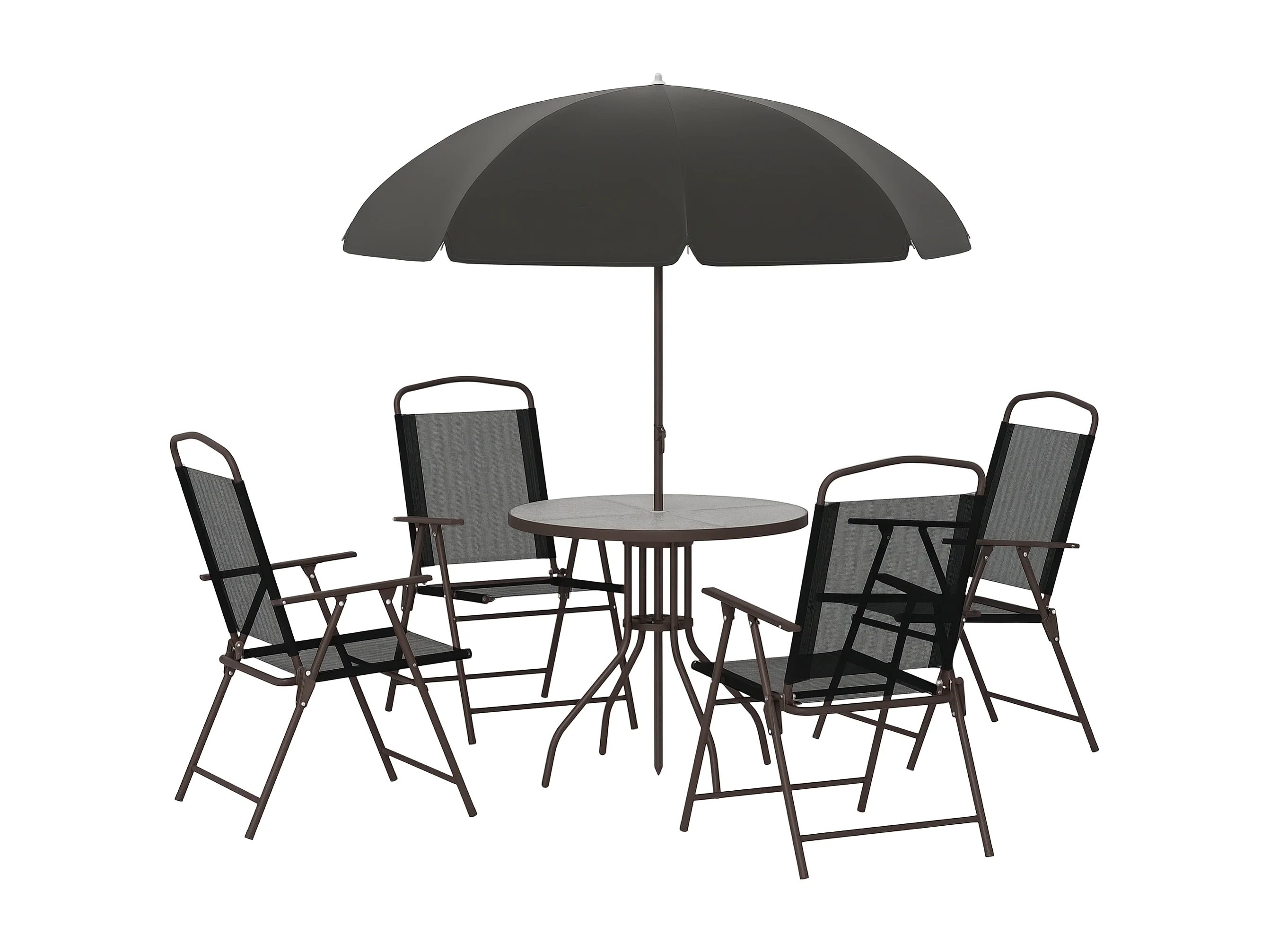 Ensemble salon de jardin 6 pcs - table ronde + 4 chaises pliables + parasol - acier époxy café textilène polyester noir