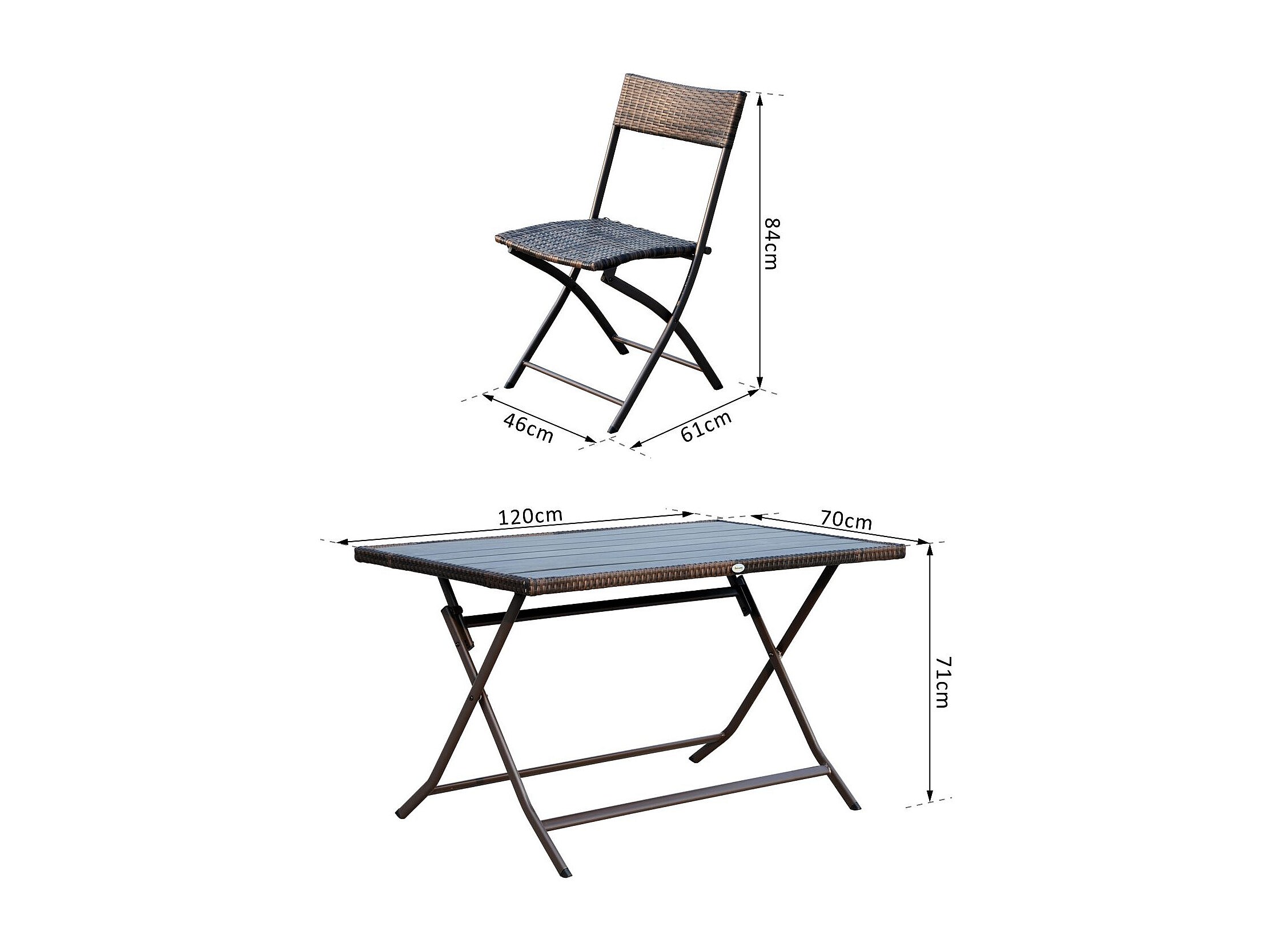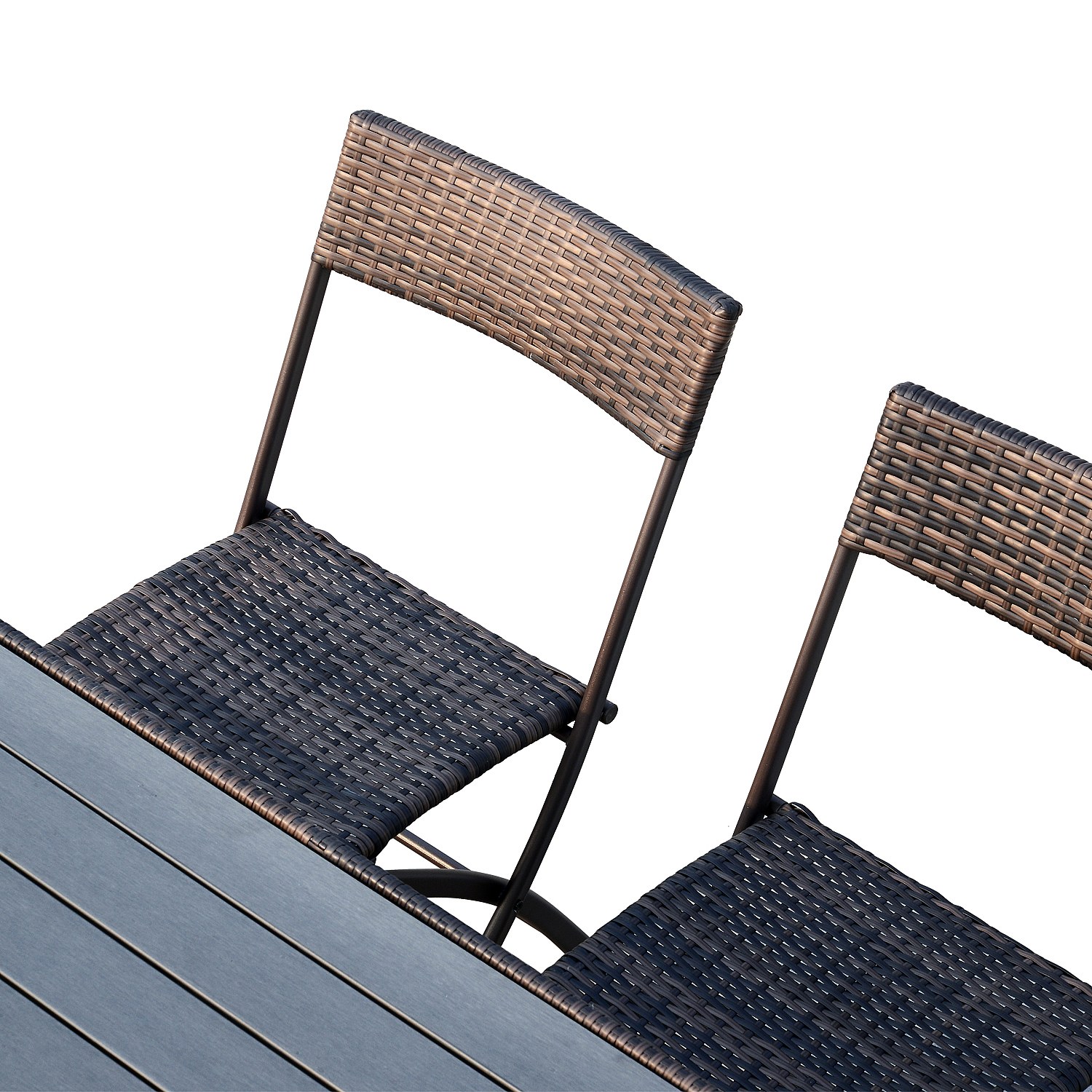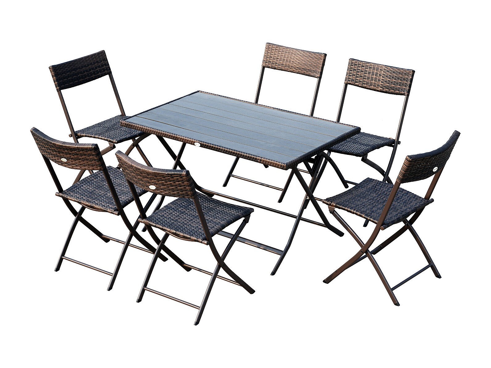 Ensemble salon de jardin 6 personnes grande table rectangulaire pliable + 6 chaises pliantes métal résine tressée PS chocolat