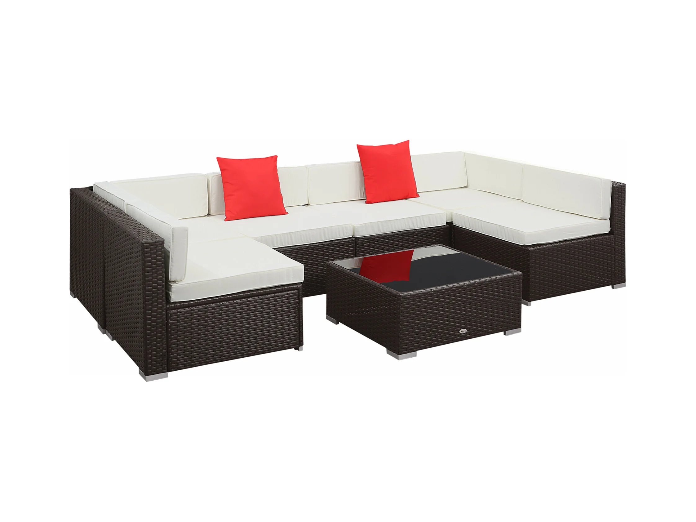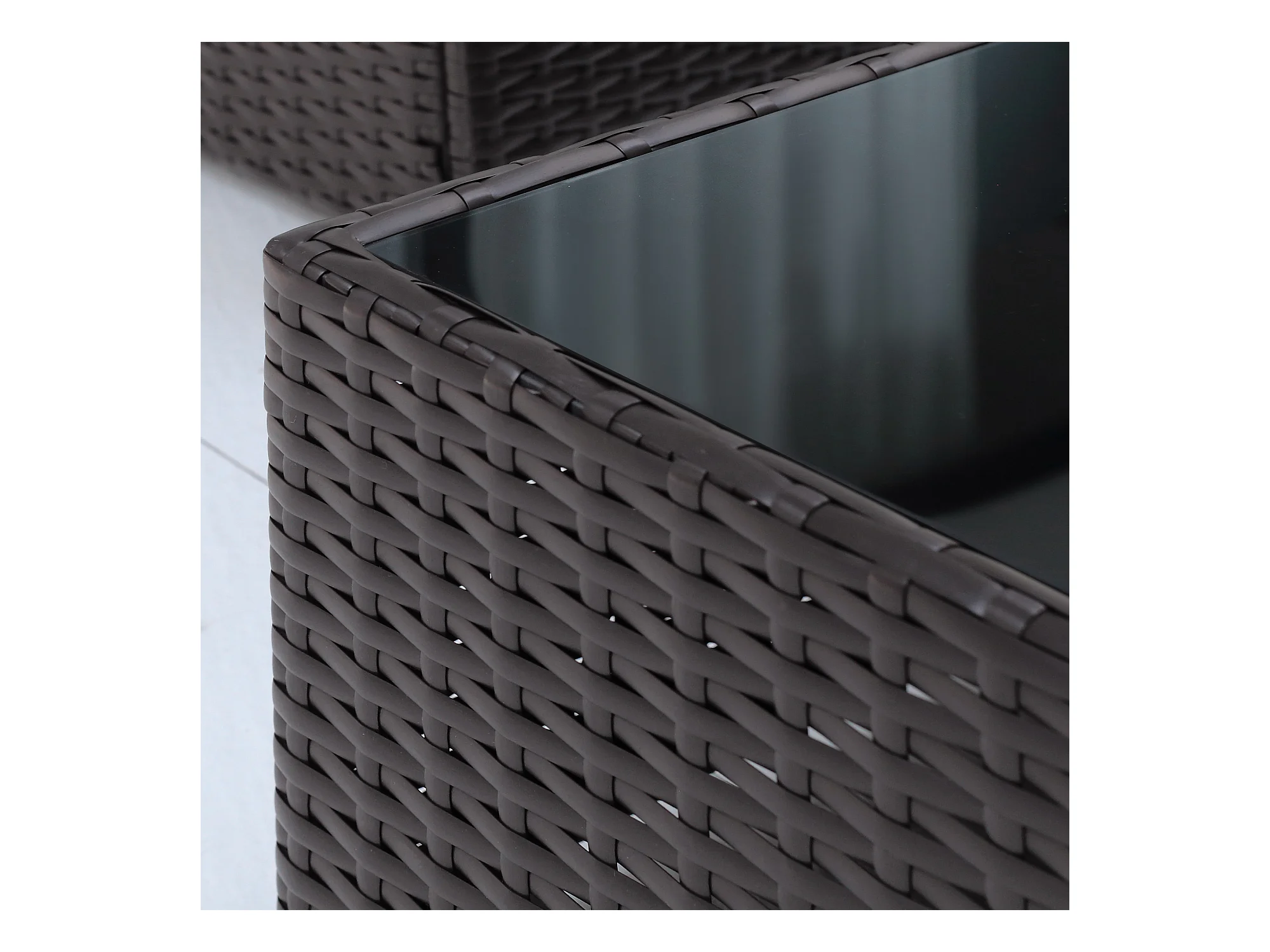 Ensemble salon de jardin 7 pièces modulables table basse plateau verre trempé coussins déhoussables inclus résine tressée imitation rotin brun foncé