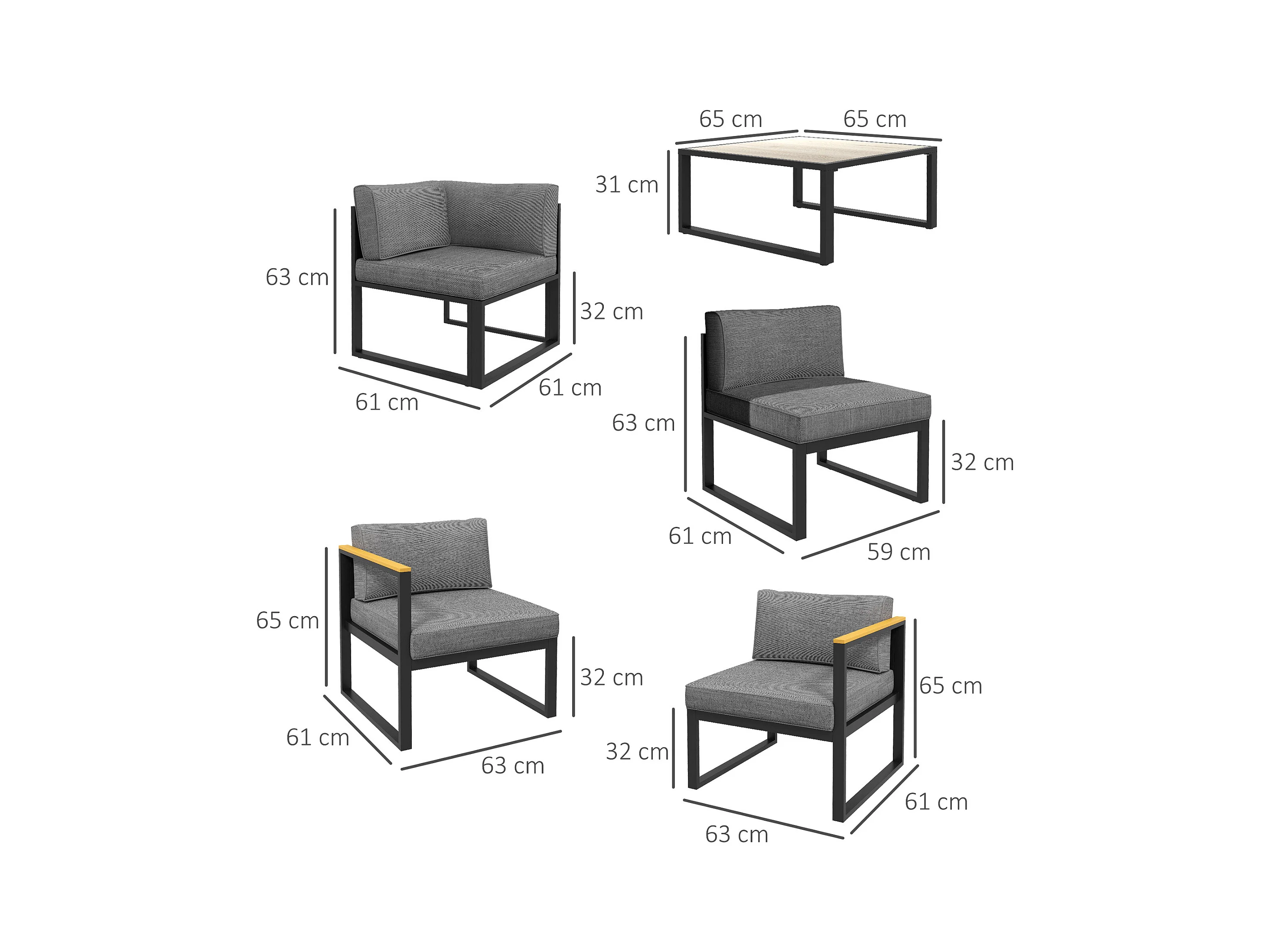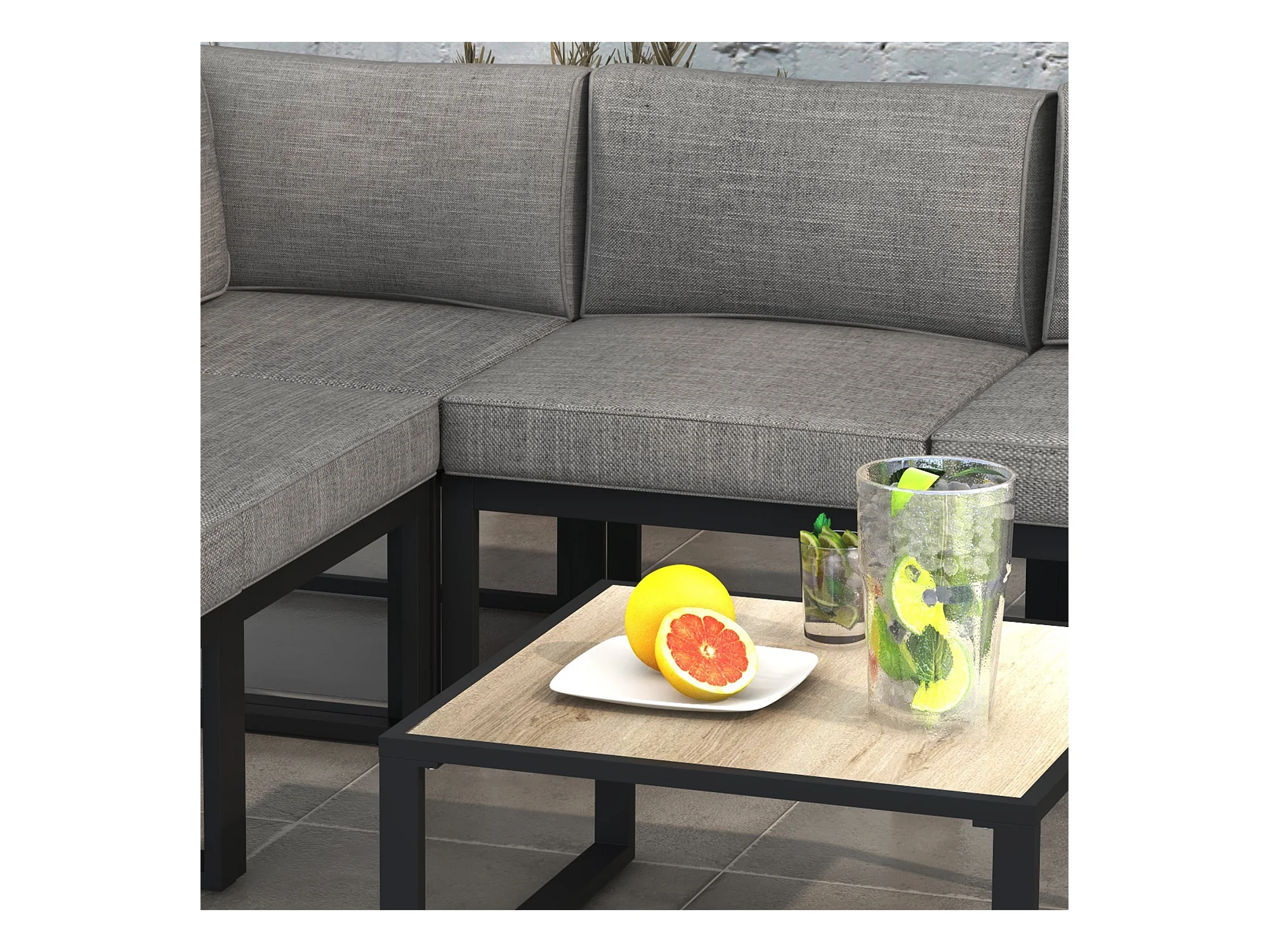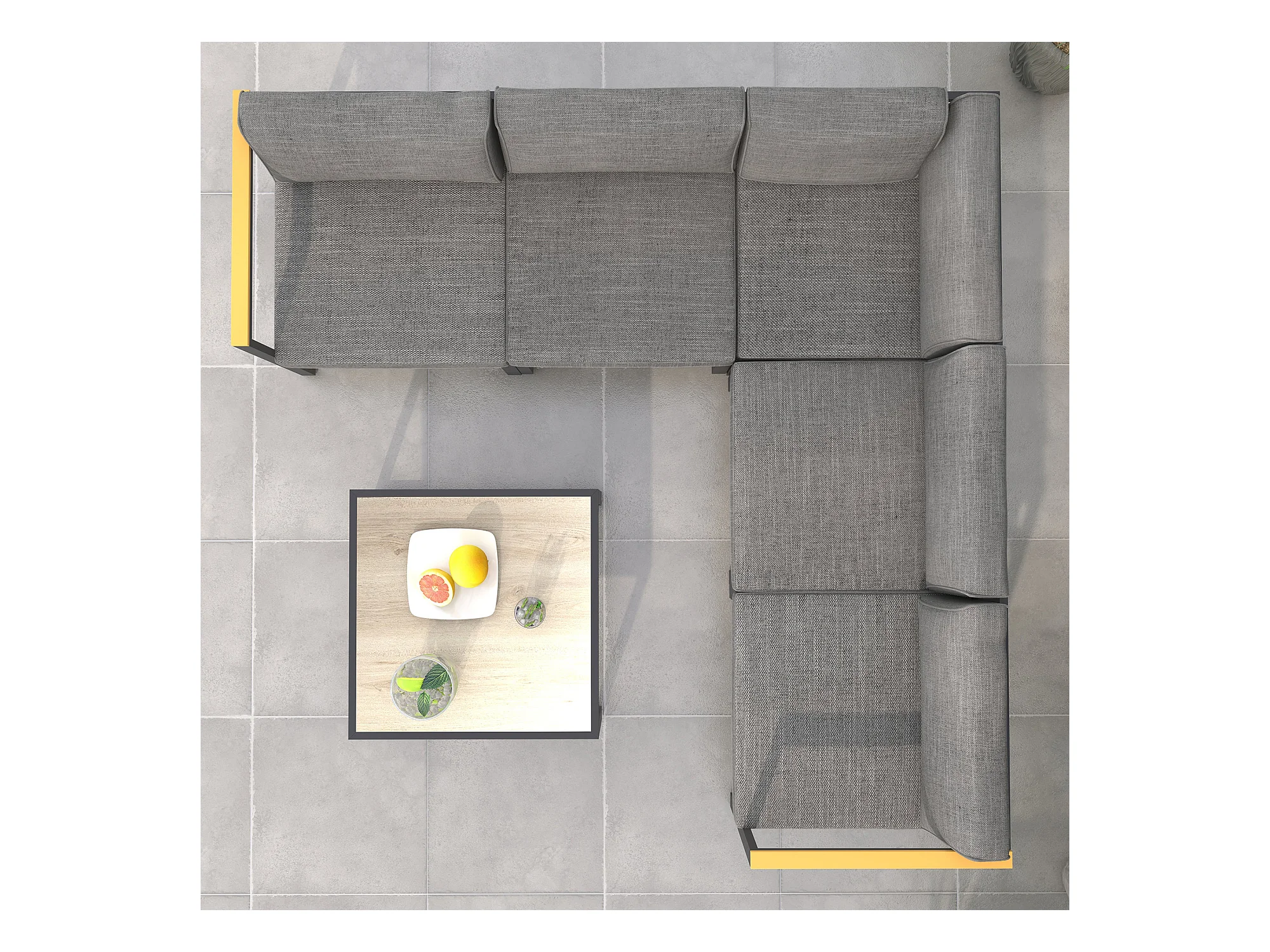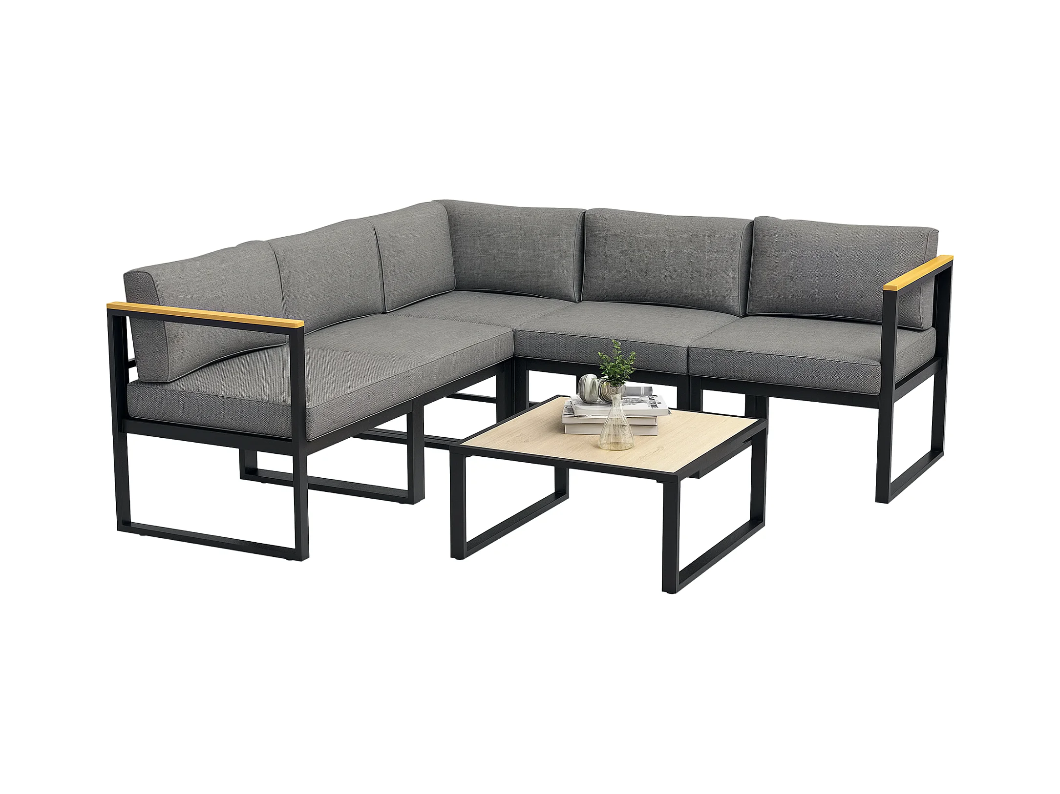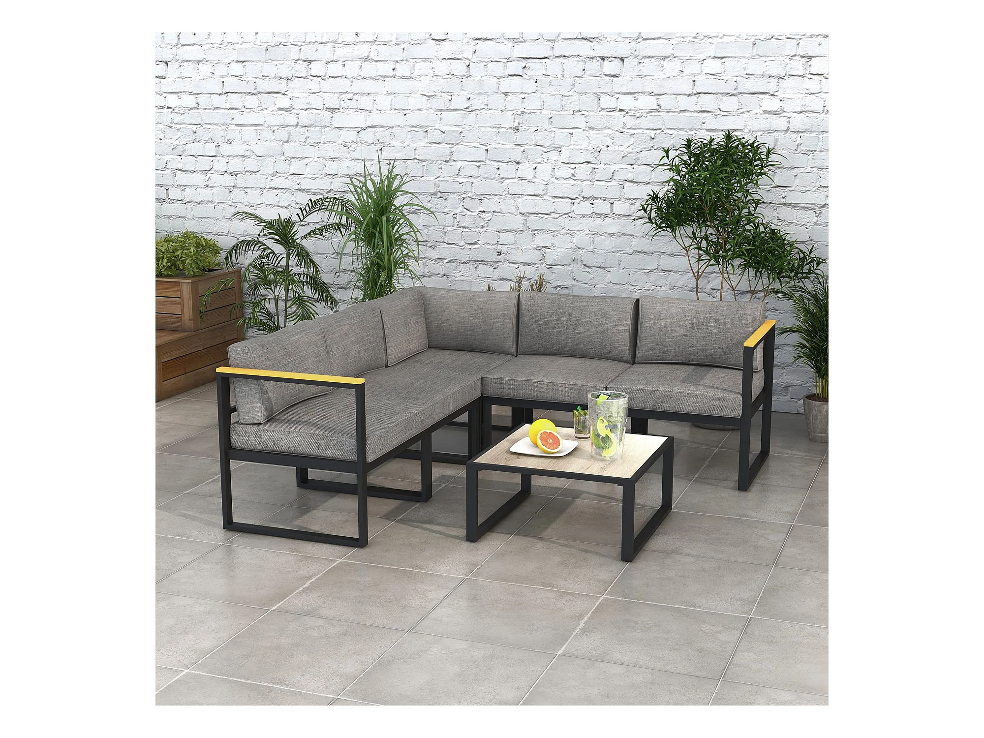 Ensemble salon de jardin d'angle 5 places design contemporain table basse coussins alu