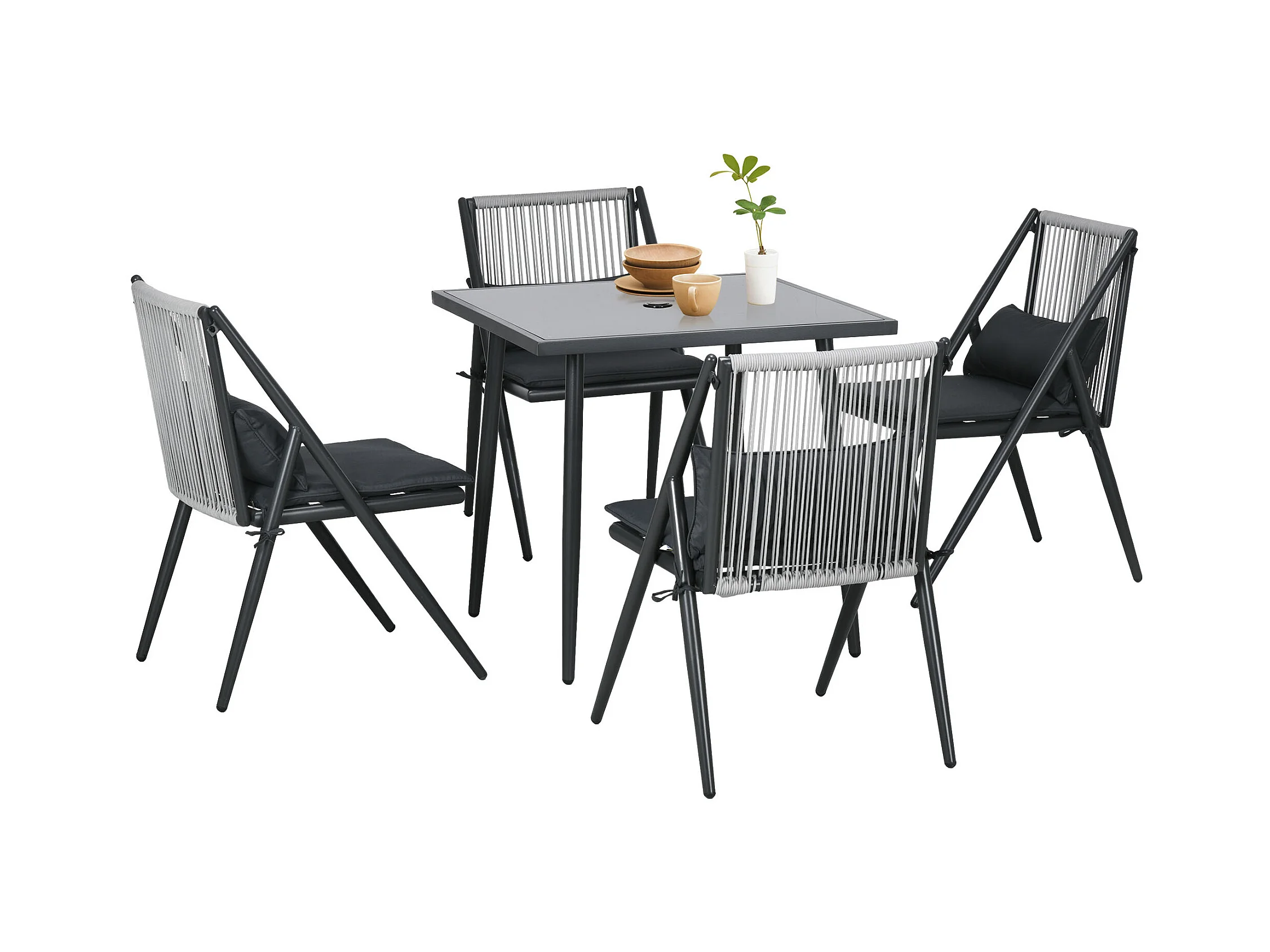 Ensemble salon de jardin design Acapulco 4 places 5 pièces noir alu gris