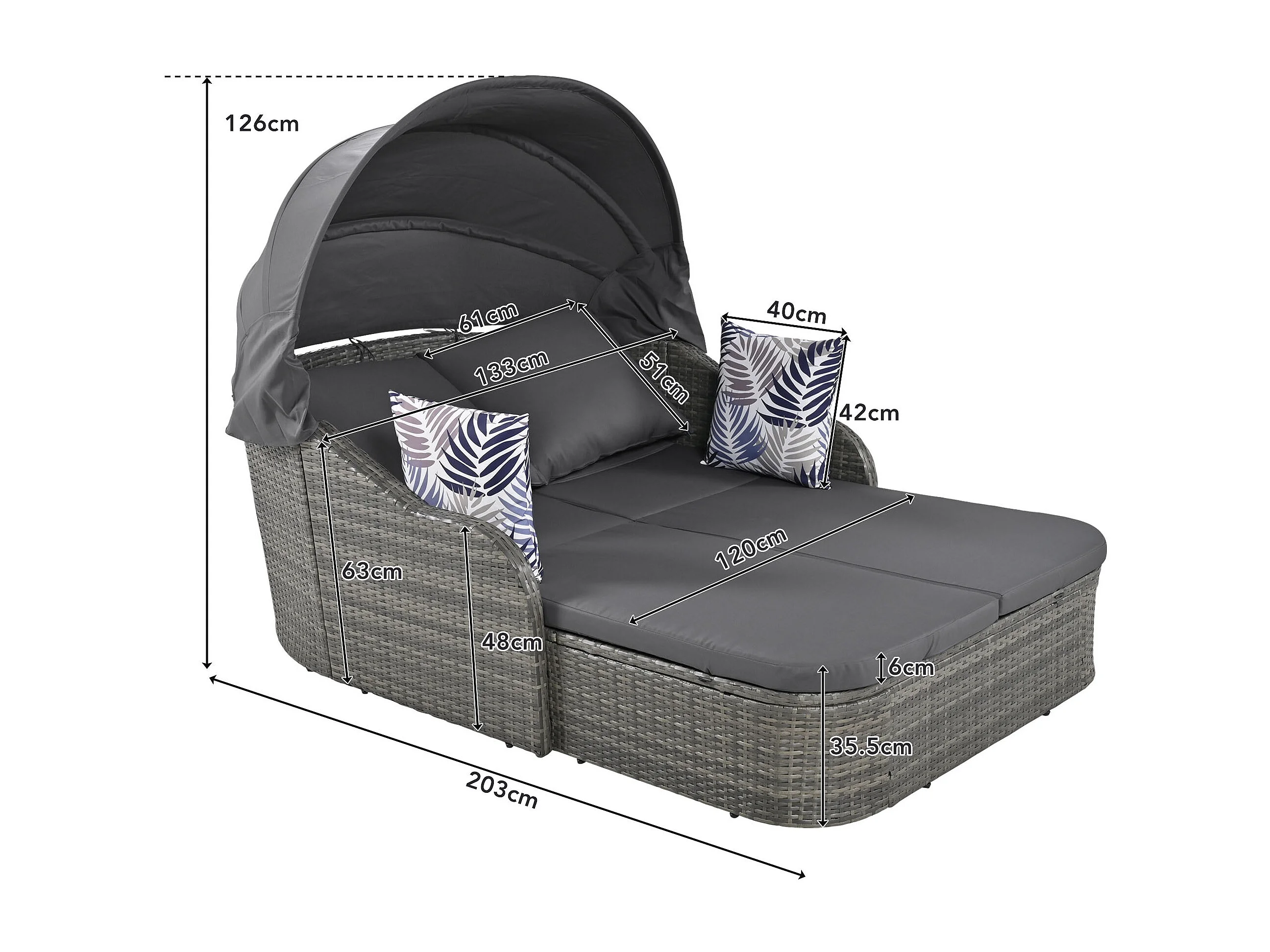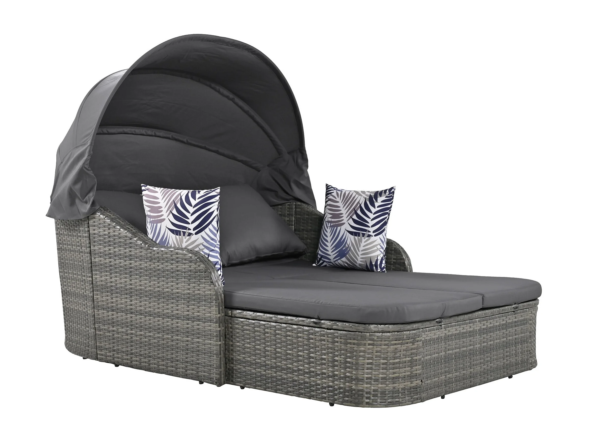Ensemble salon de jardin en rotin PE avec auvent réglable terrasse en osier 24h / 24 salon double avec 4 coussins et coussins amovibles gris