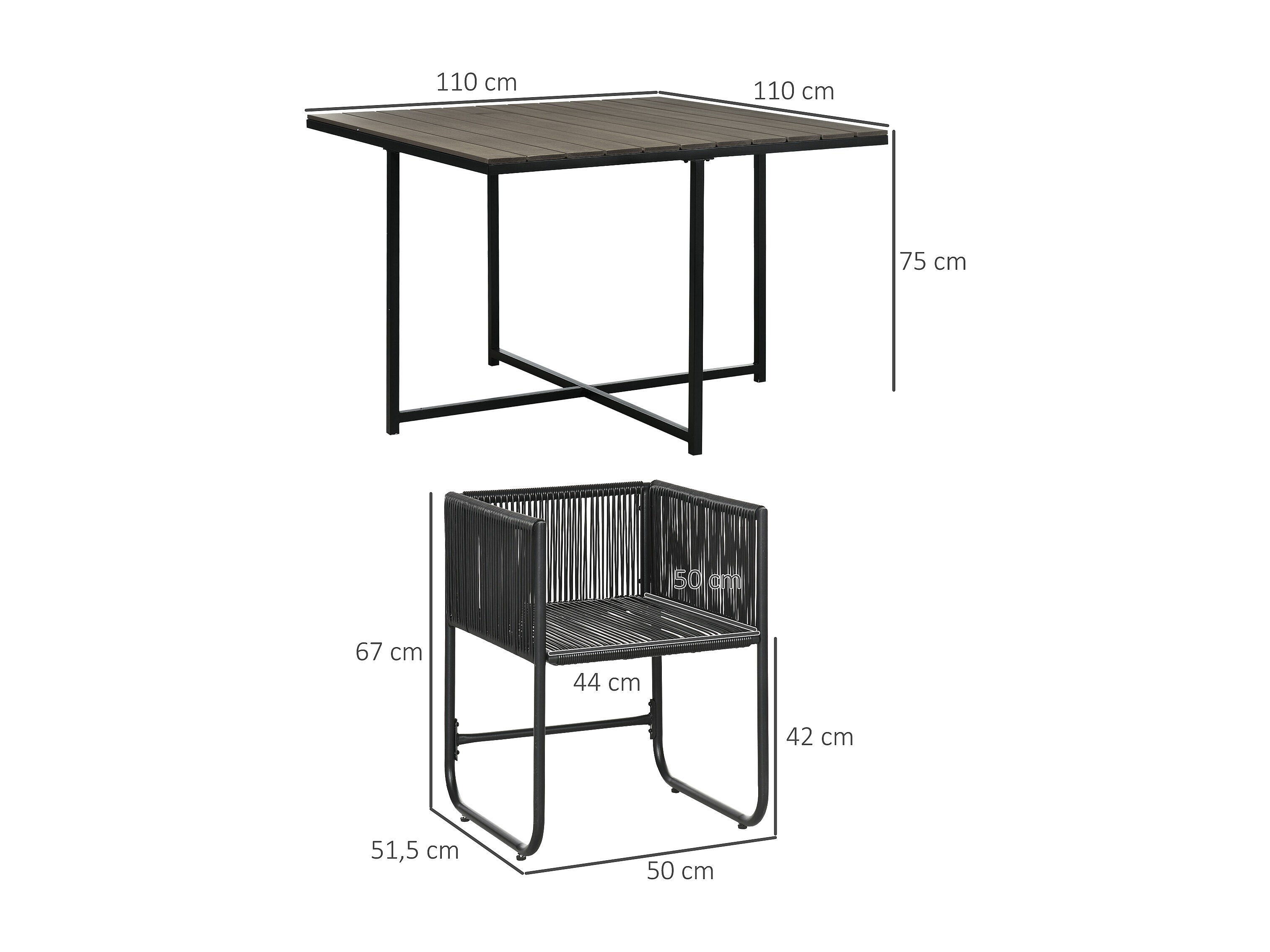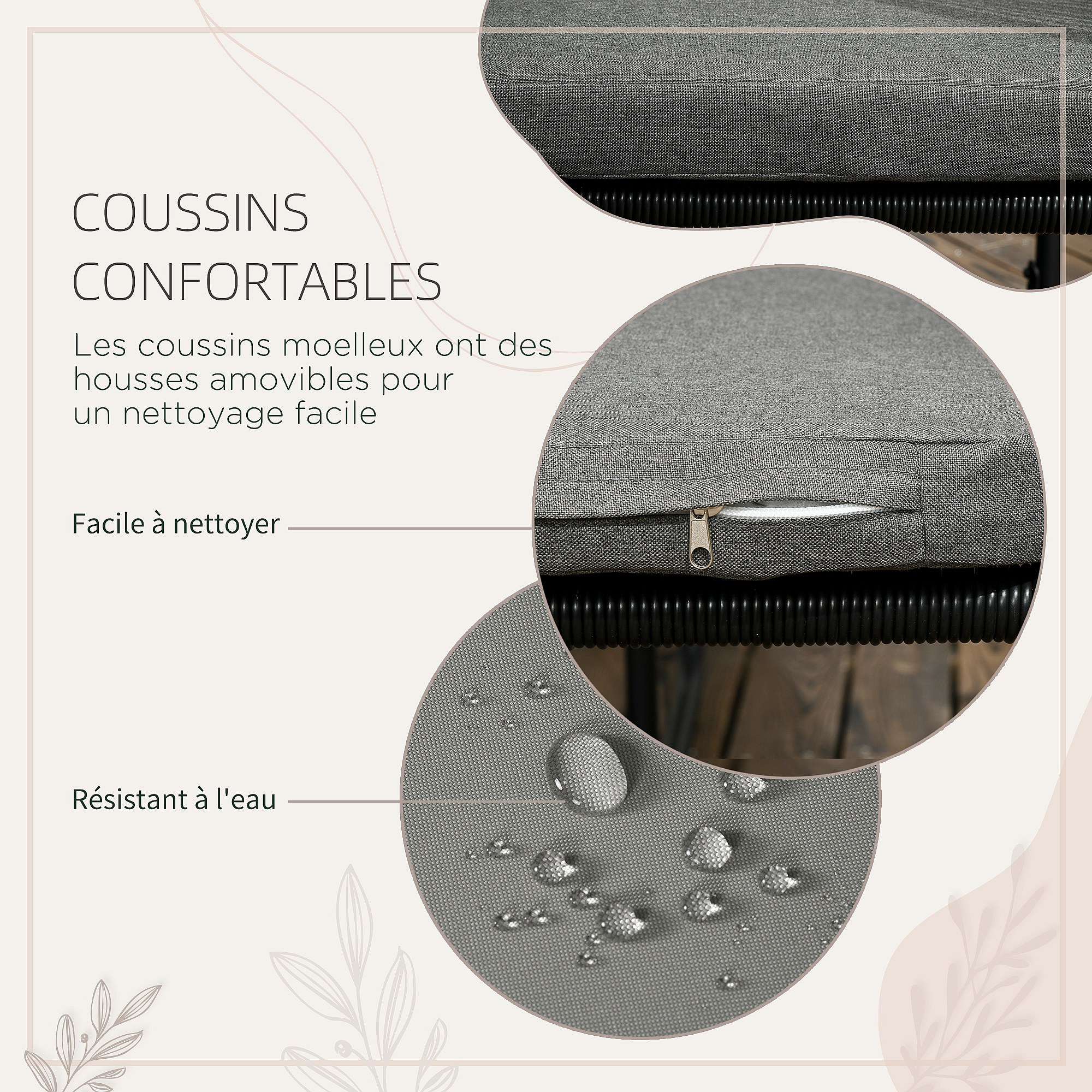 Ensemble salon de jardin encastrable 4 personnes 5 pièces - coussins déhoussables - métal résine filaire noir gris