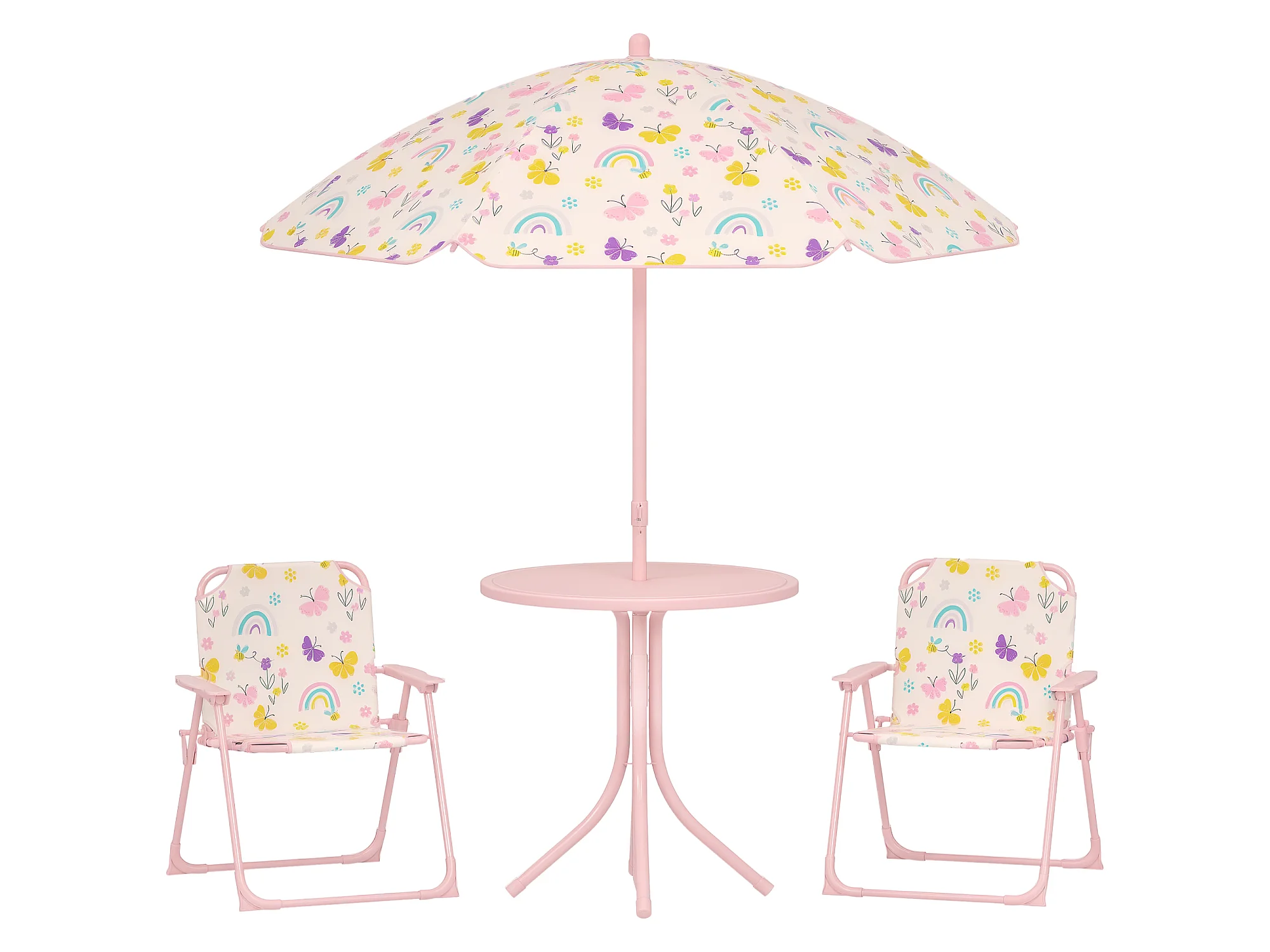 Ensemble salon de jardin enfant pliable 2 places 4 pièces motif arc en ciel rose