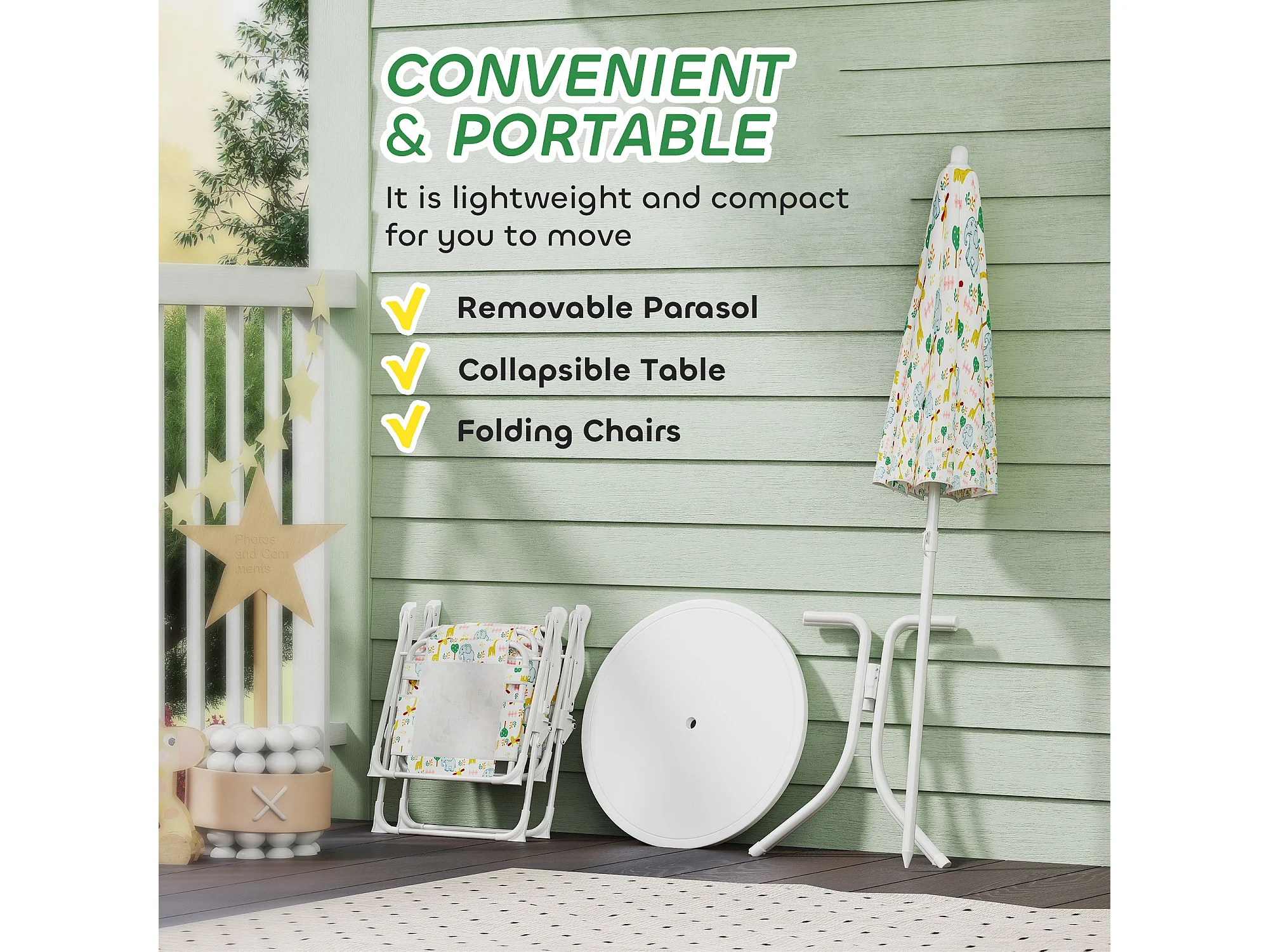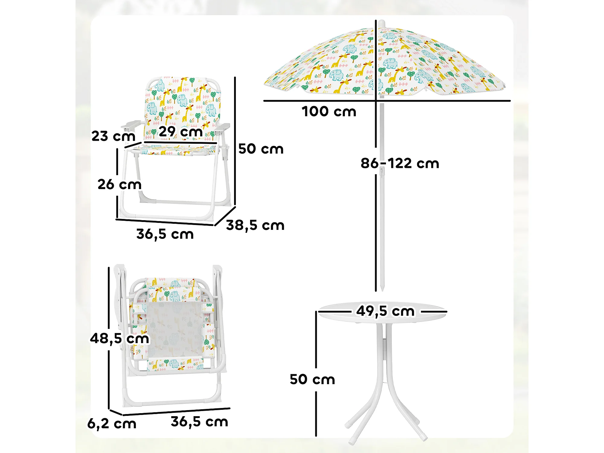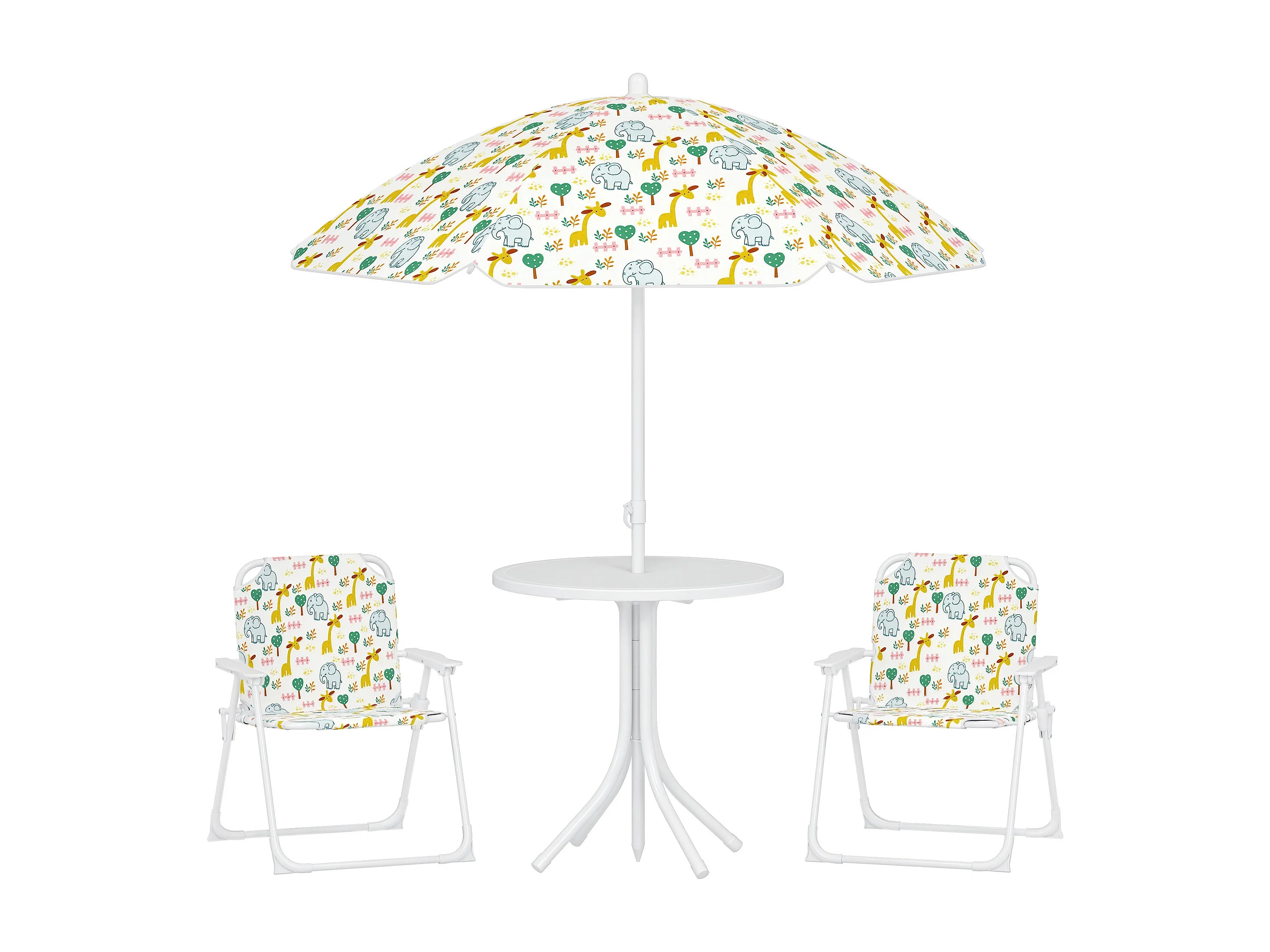 Ensemble salon de jardin enfant pliable 2 places 4 pièces motif vie de la savane blanc