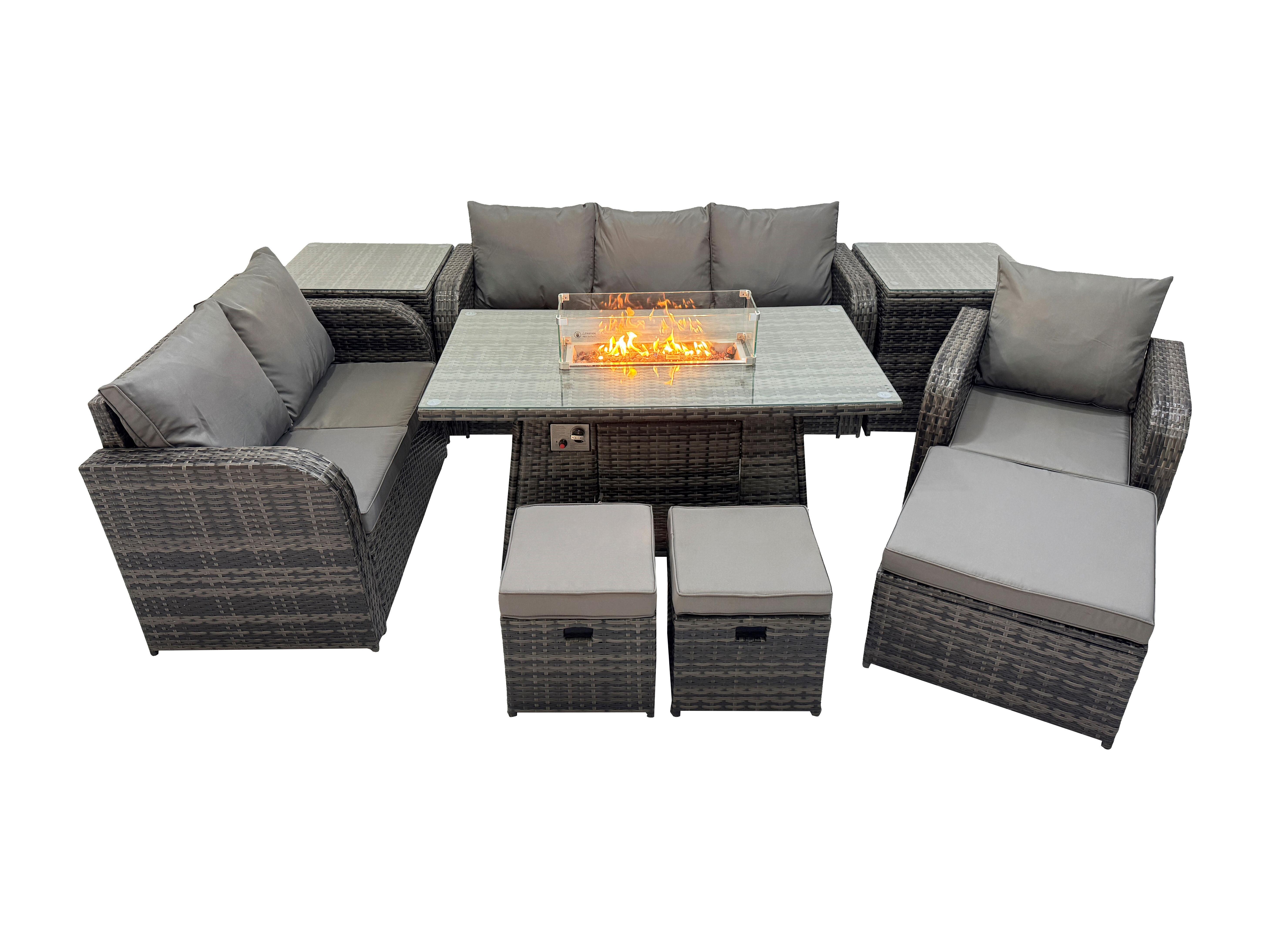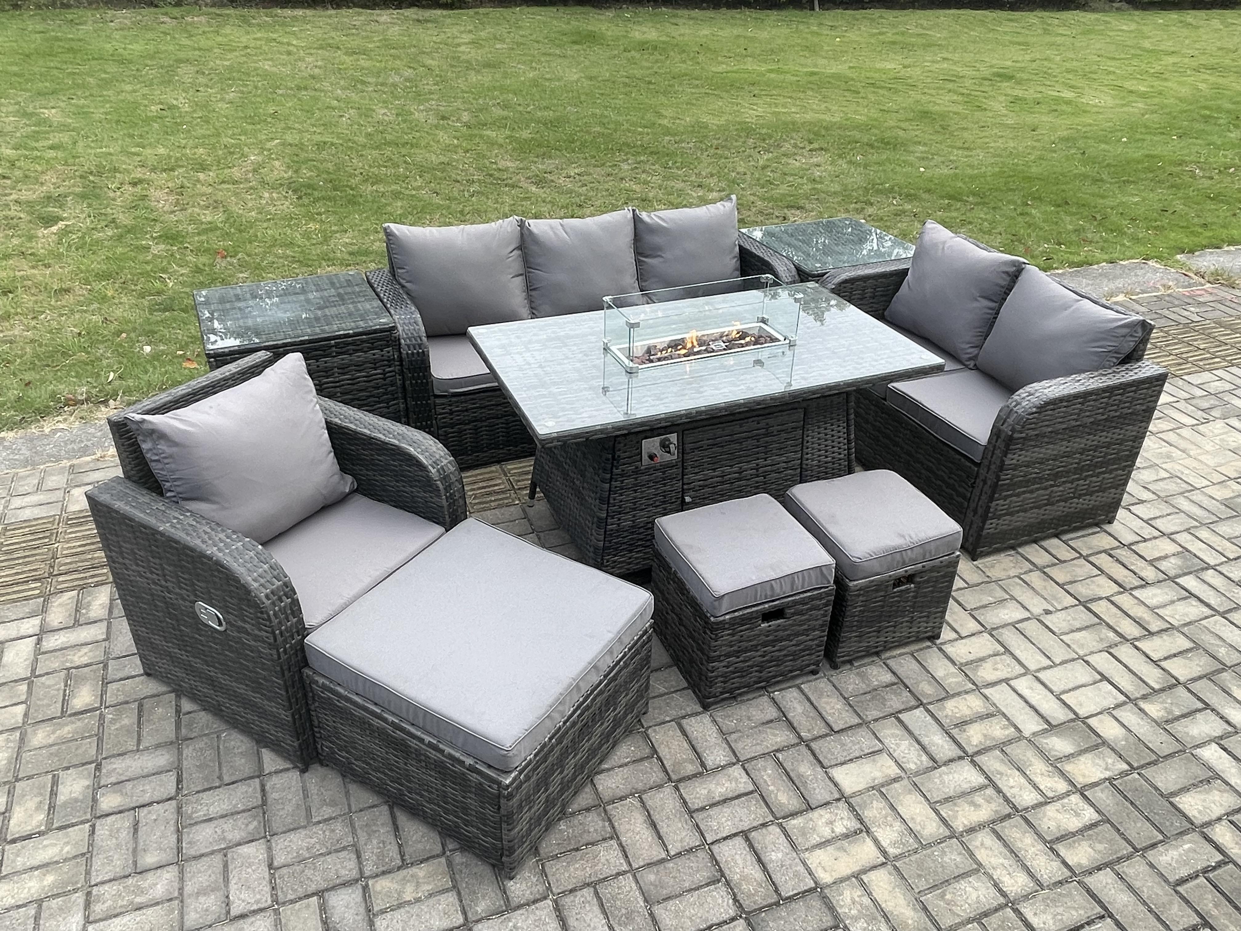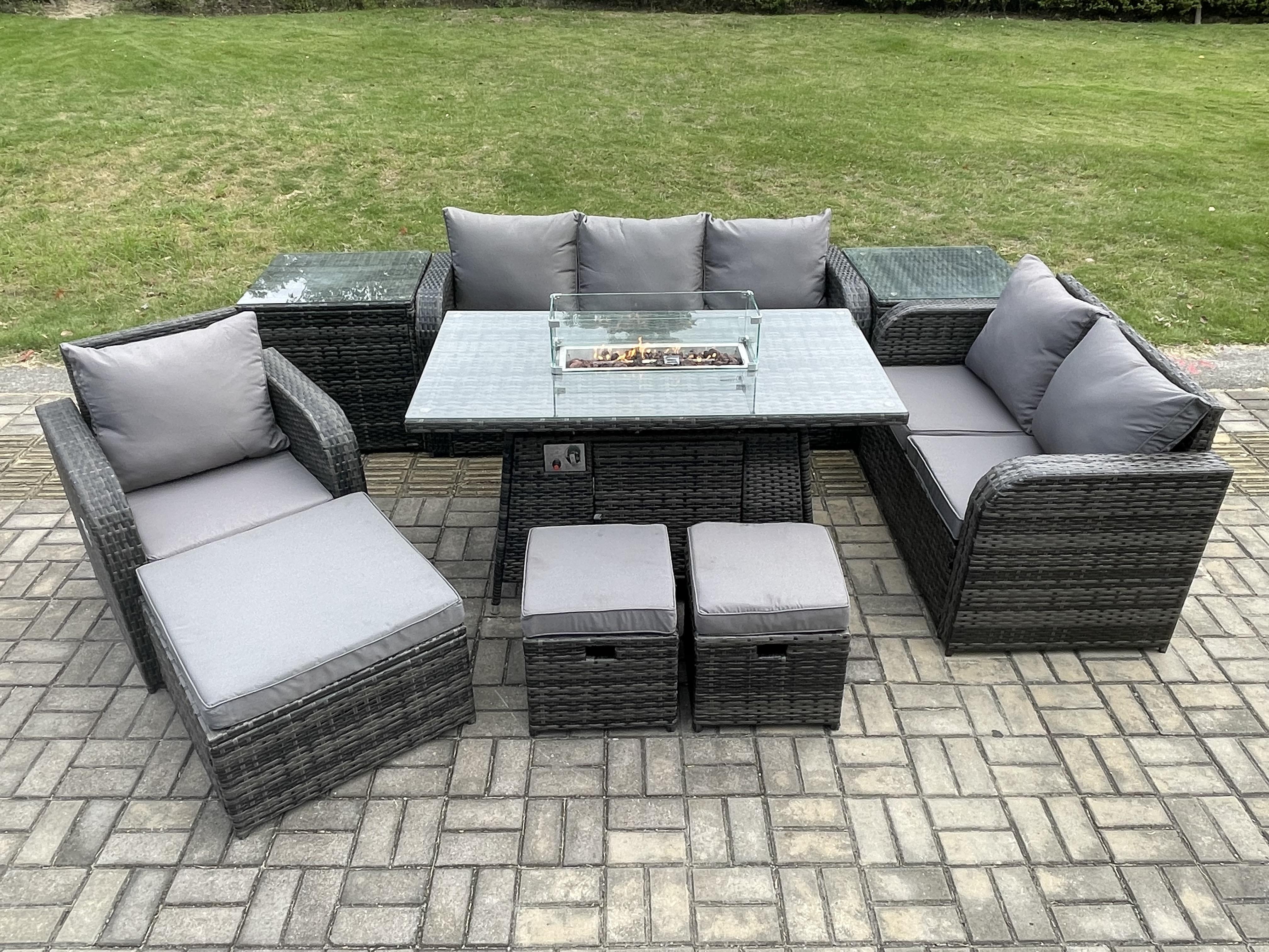 Ensemble Salon de Jardin Extérieur en polyrotin Table de foyer à gaz et Canapé Fauteuil avec 2 Tables d'appoint 3 Tabourets