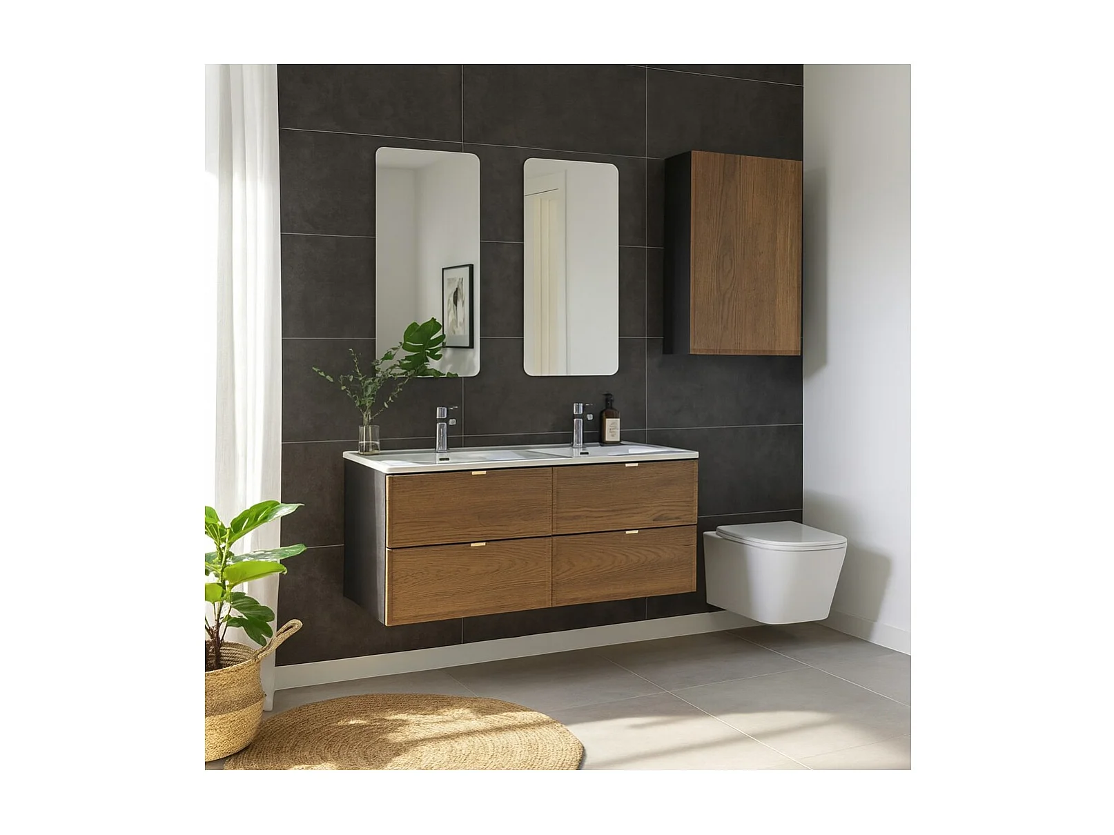 Ensemble SAVIA : meubles sous vasque 120cm + double vasque encastrable + meubles de rangement + miroirs LED + WC