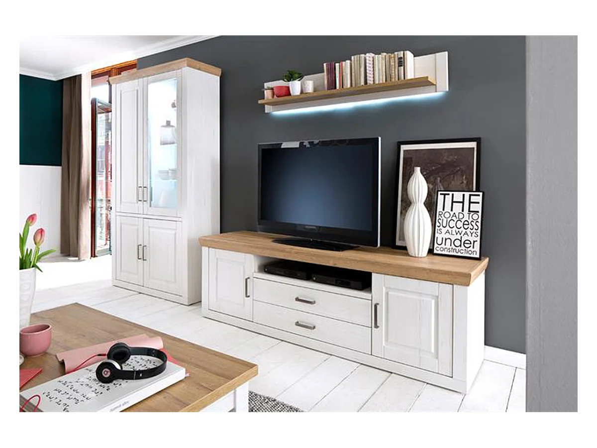 Ensemble séjour 3 élèments en bois blanc et chêne + éclairage LED