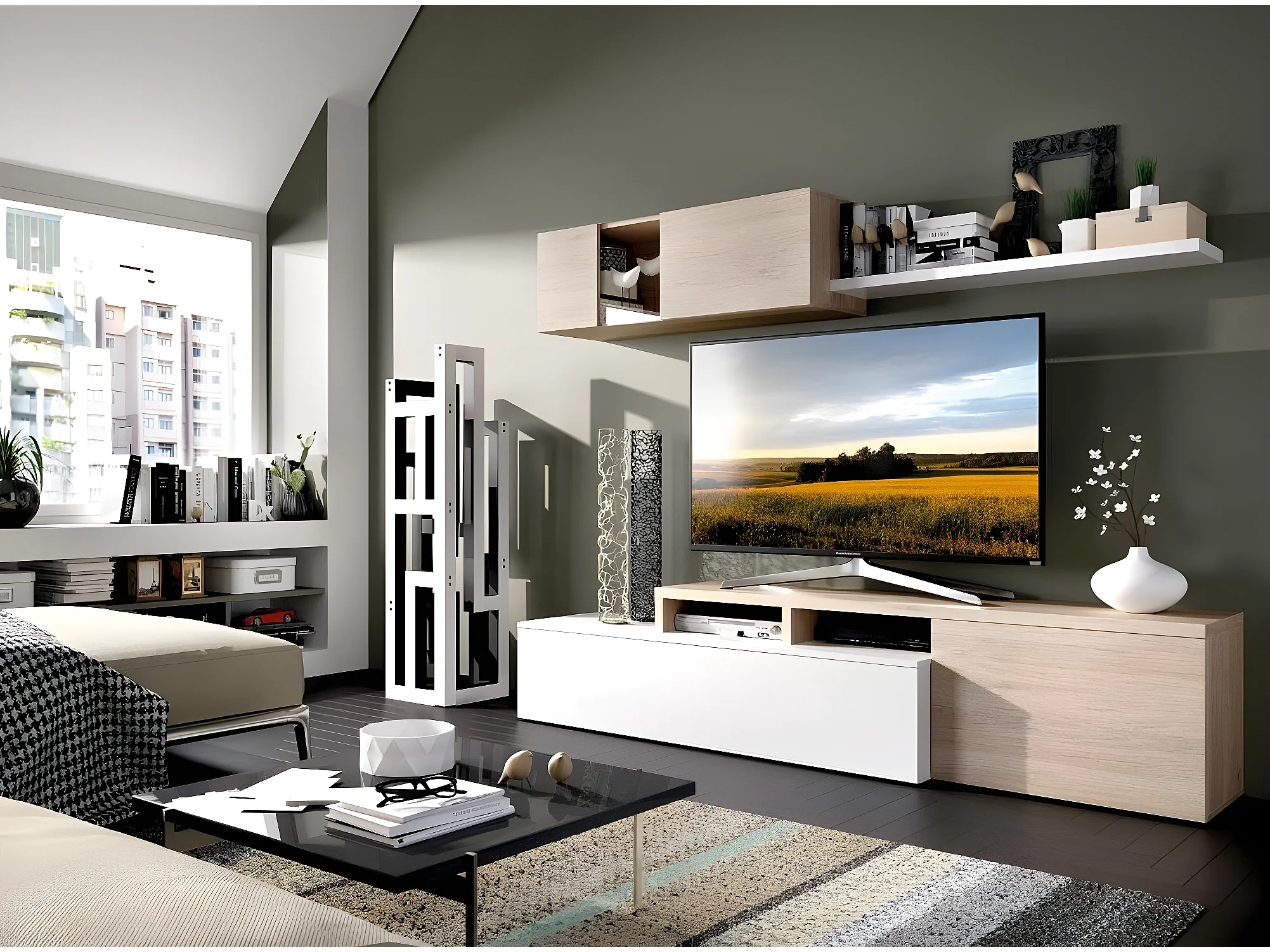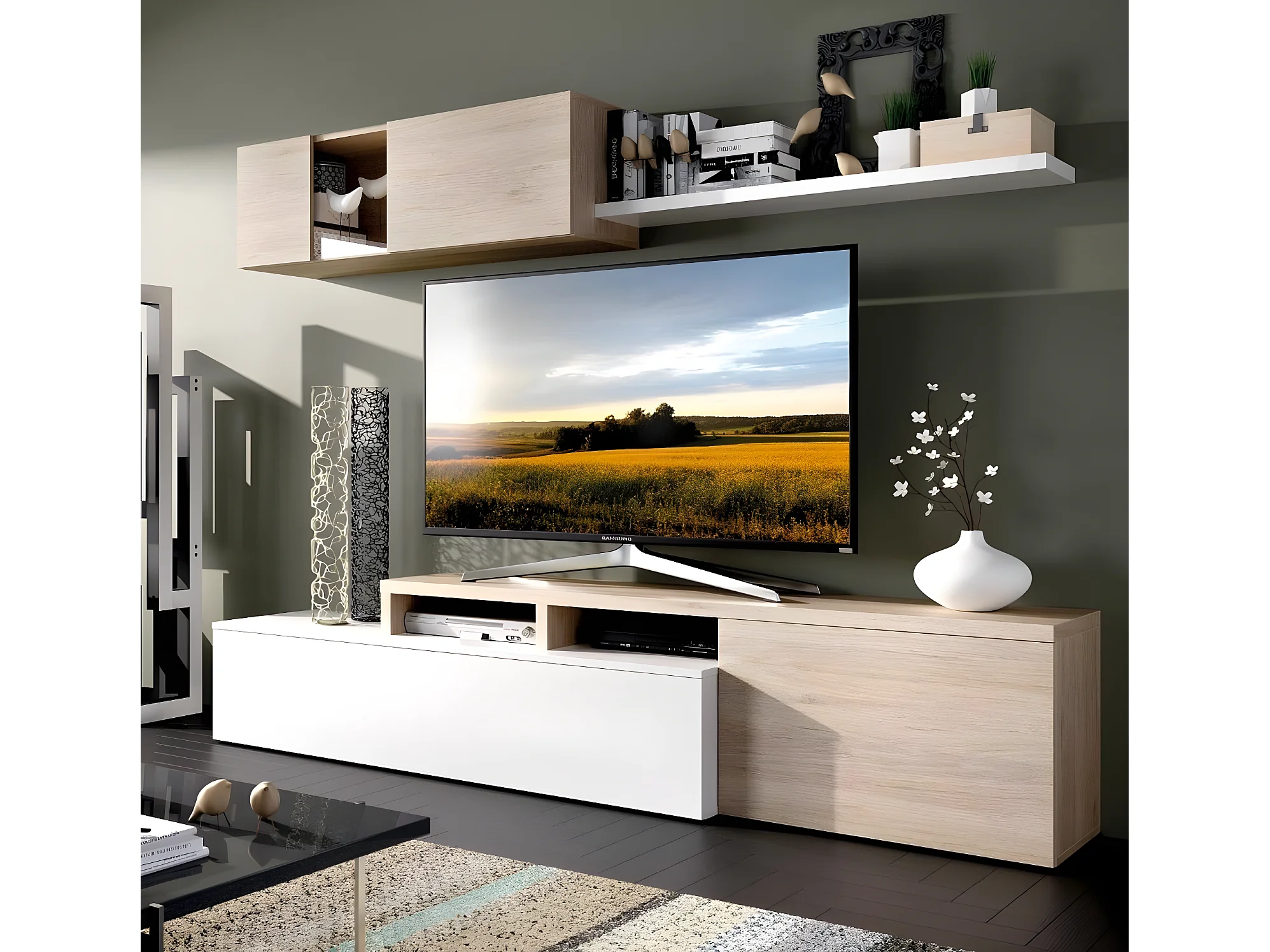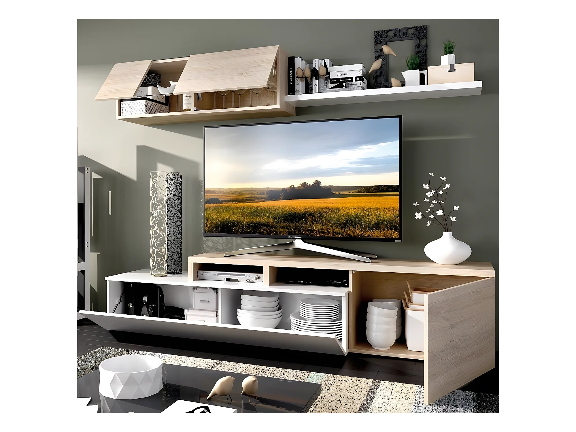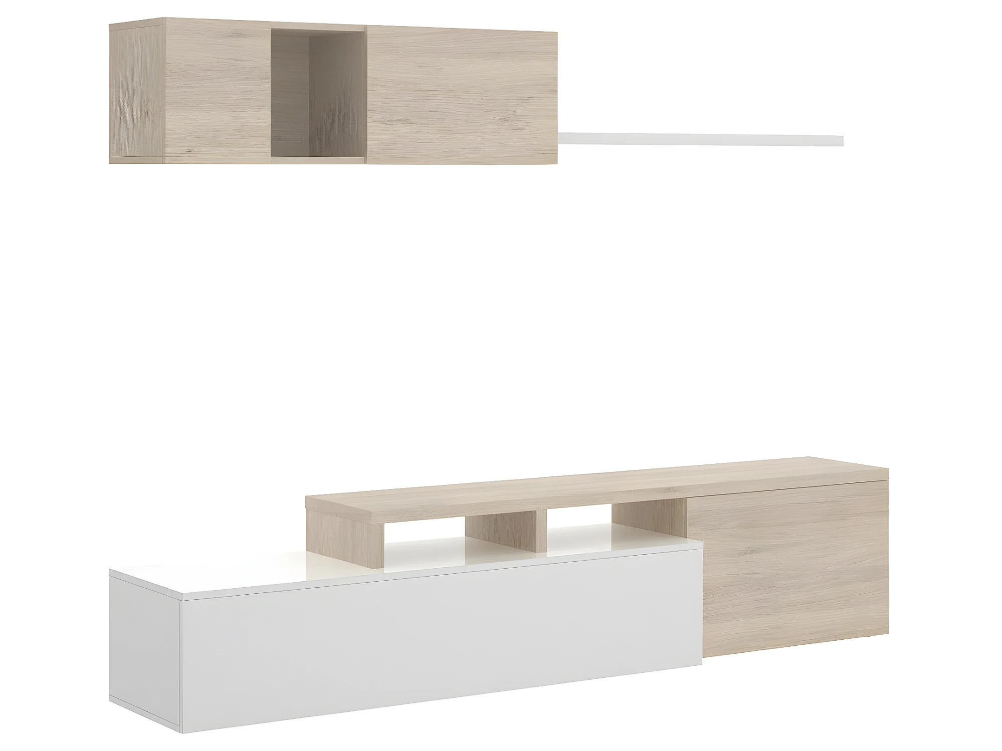 Ensemble séjour de 3 éléments coloris blanc brillant/naturel