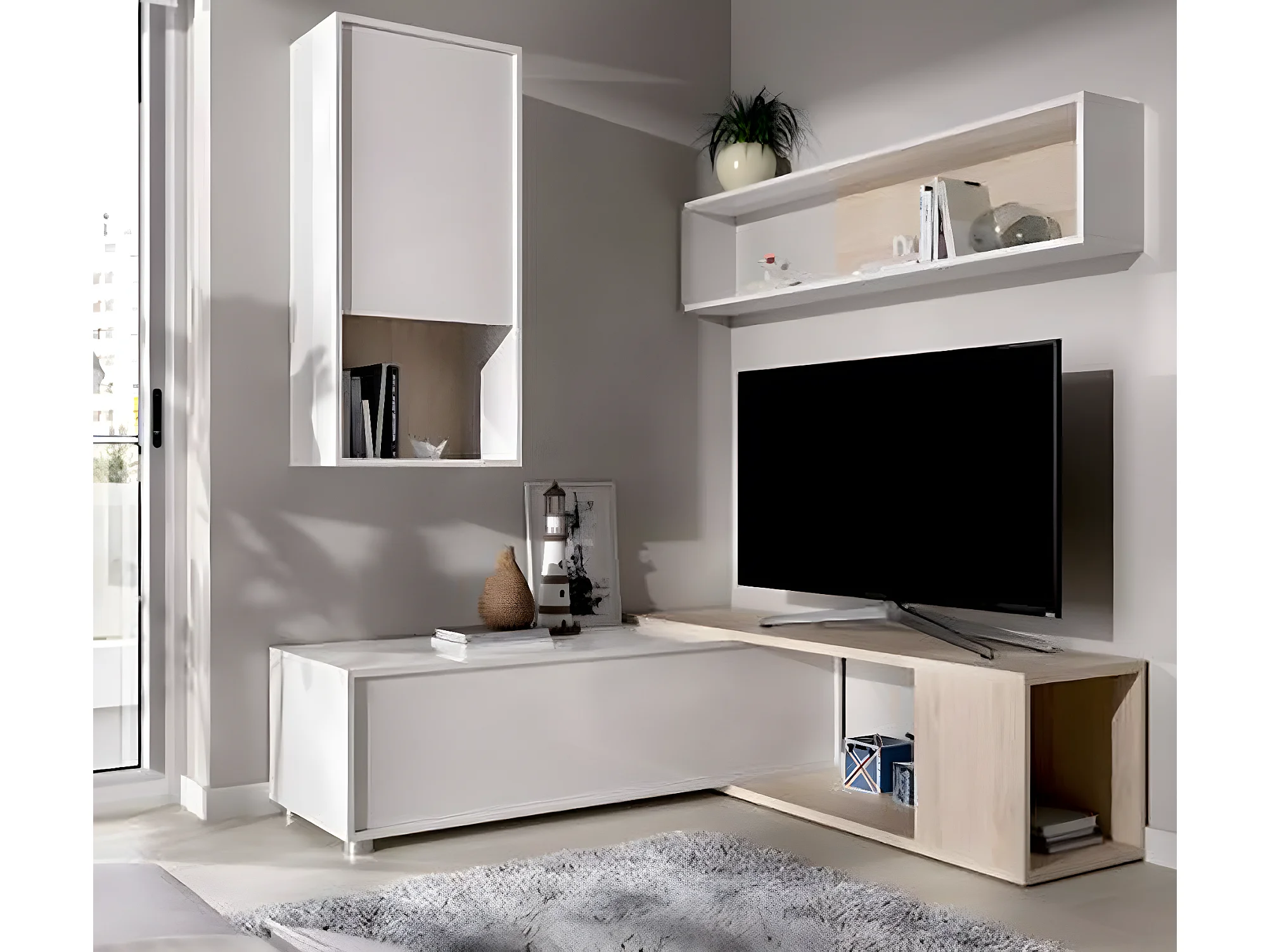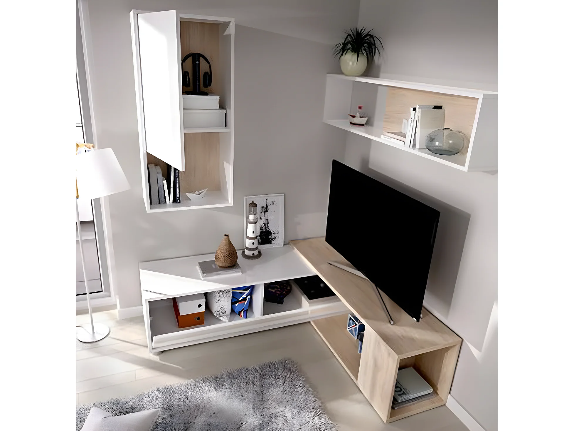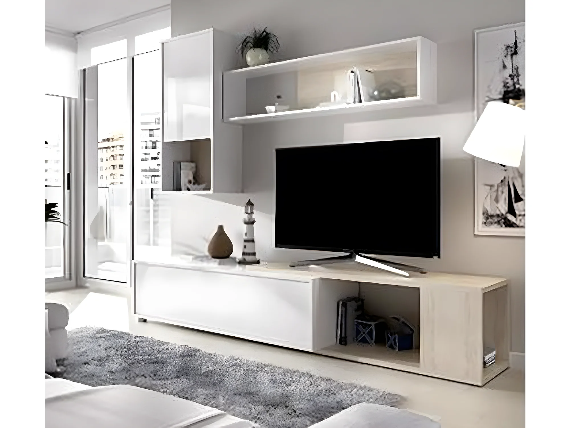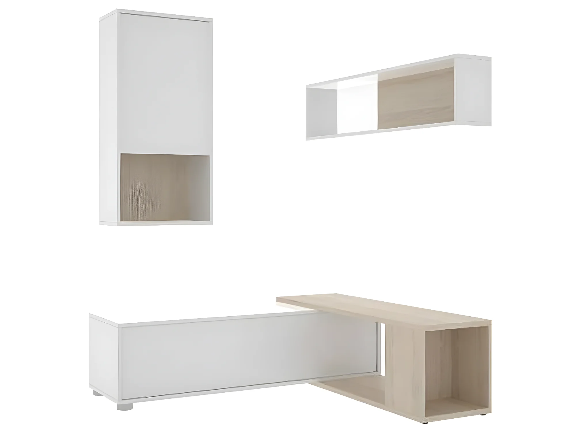 Ensemble séjour de 3 éléments coloris Blanc Brillant /naturel