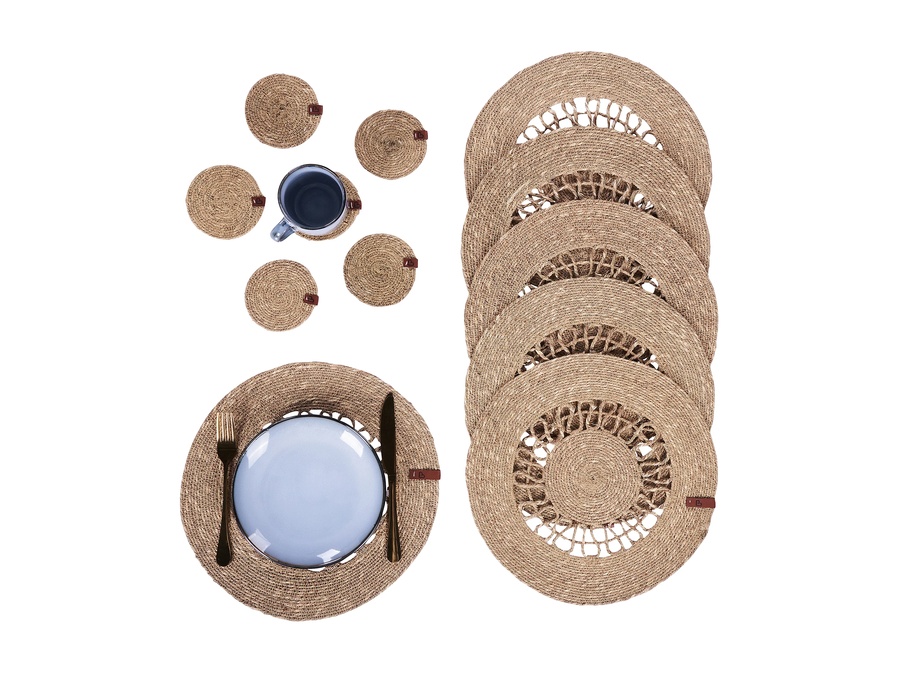 Ensemble sets de table et sous-verres PEPPERLEAF Naturel Jute