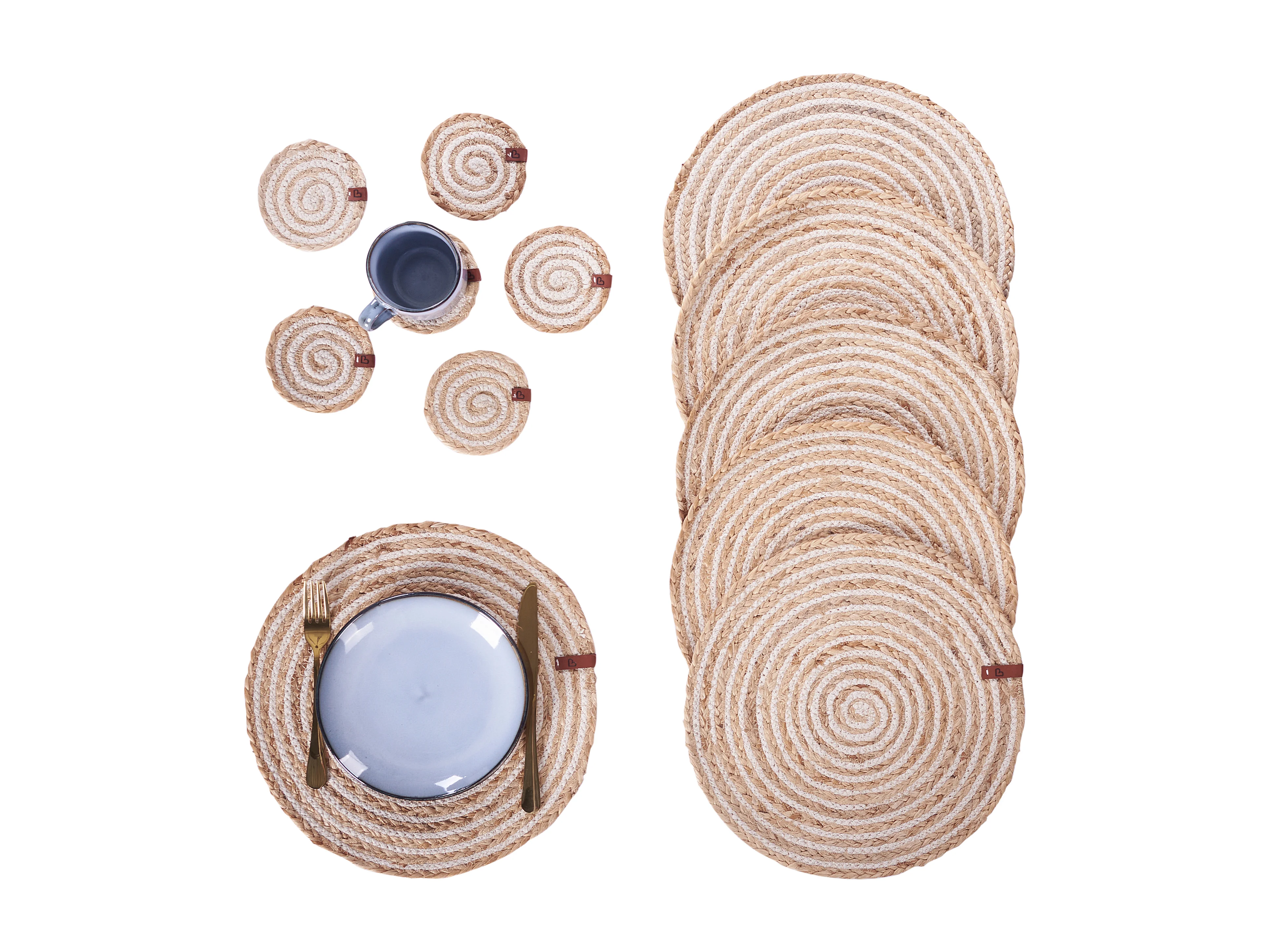 Ensemble sets de table et sous-verres PEPPERLEAF Naturel Jute
