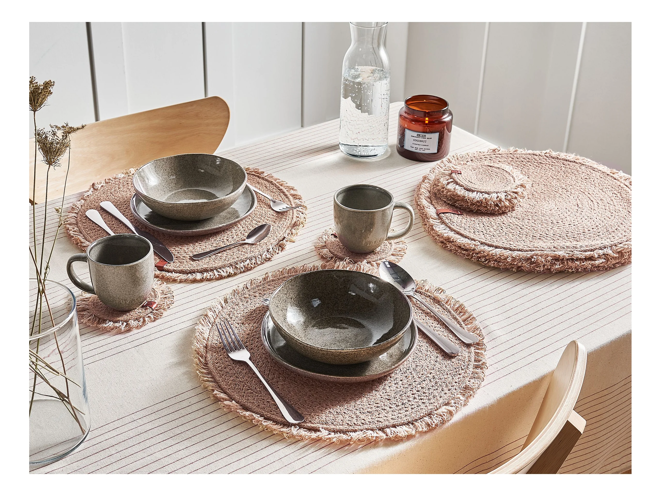 Ensemble sets de table et sous-verres ROSELLA Gris Jute Coton