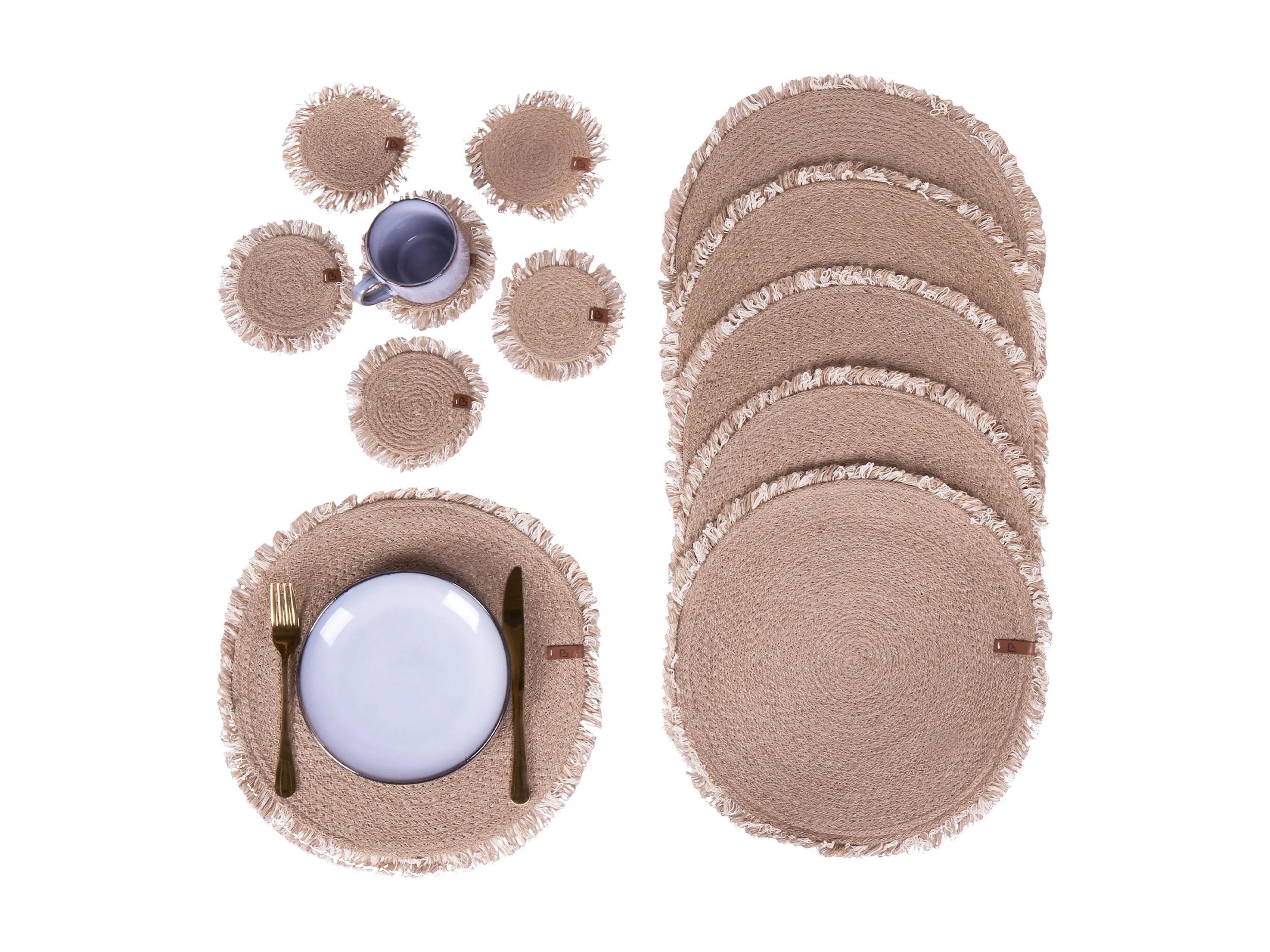 Ensemble sets de table et sous-verres QUININE Naturel Jute