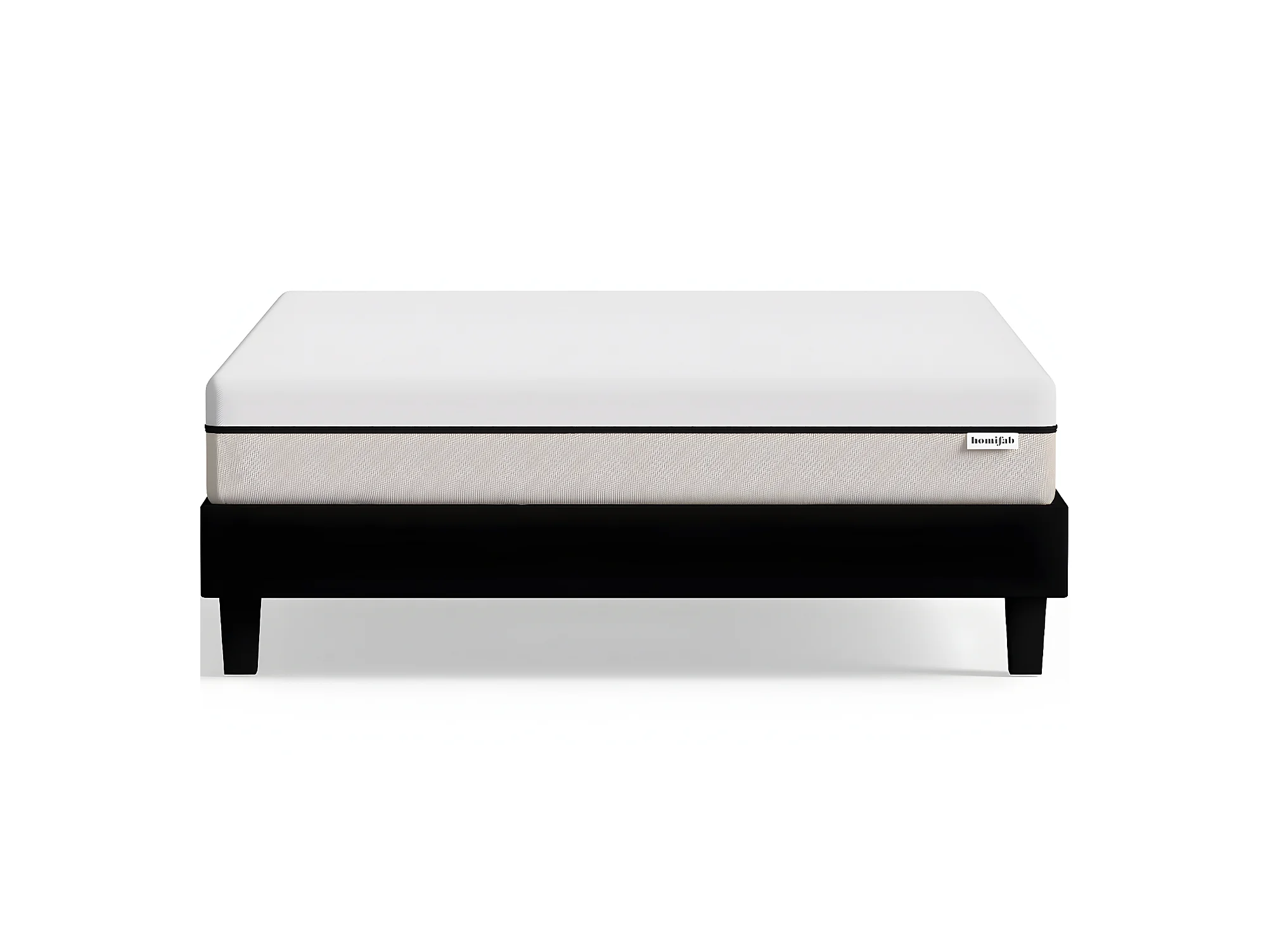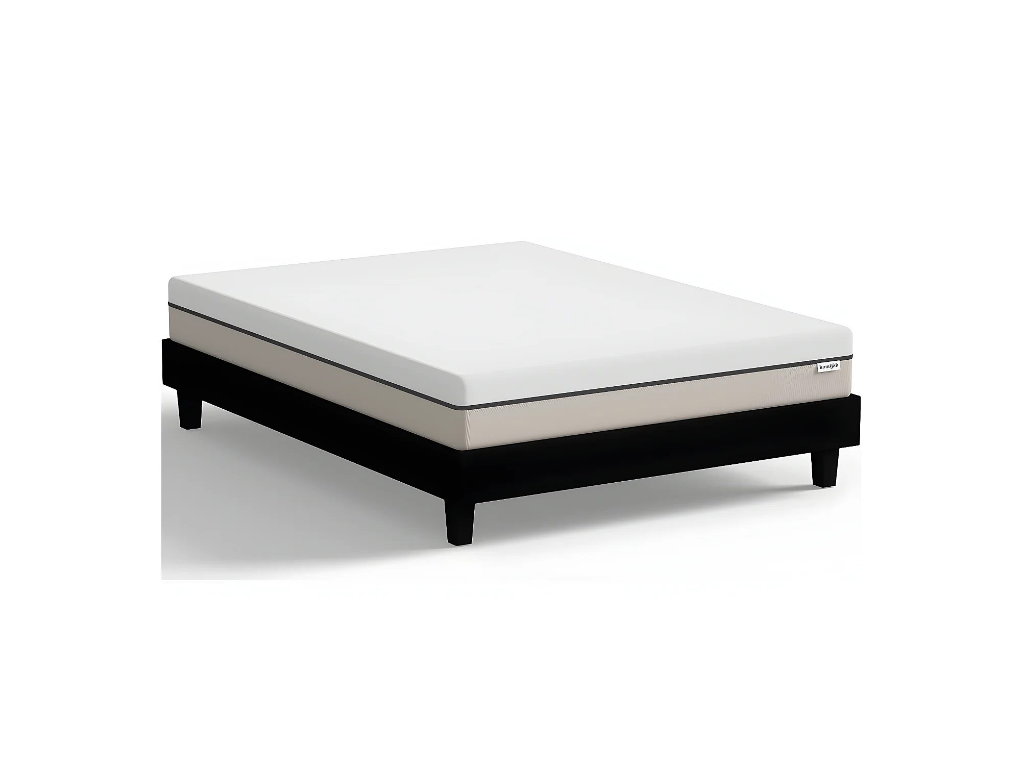 Ensemble sommier à lattes 180x200 cm en tissu noir + Matelas Hybride à ressorts ensachés et mémoire de forme - Spring Elite