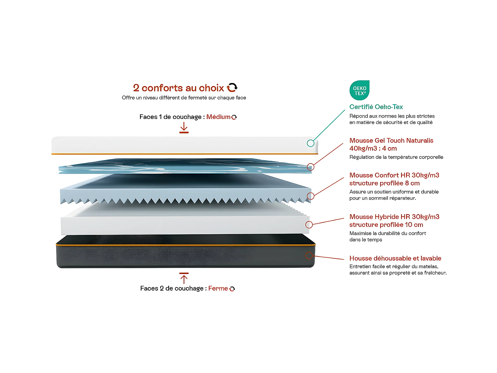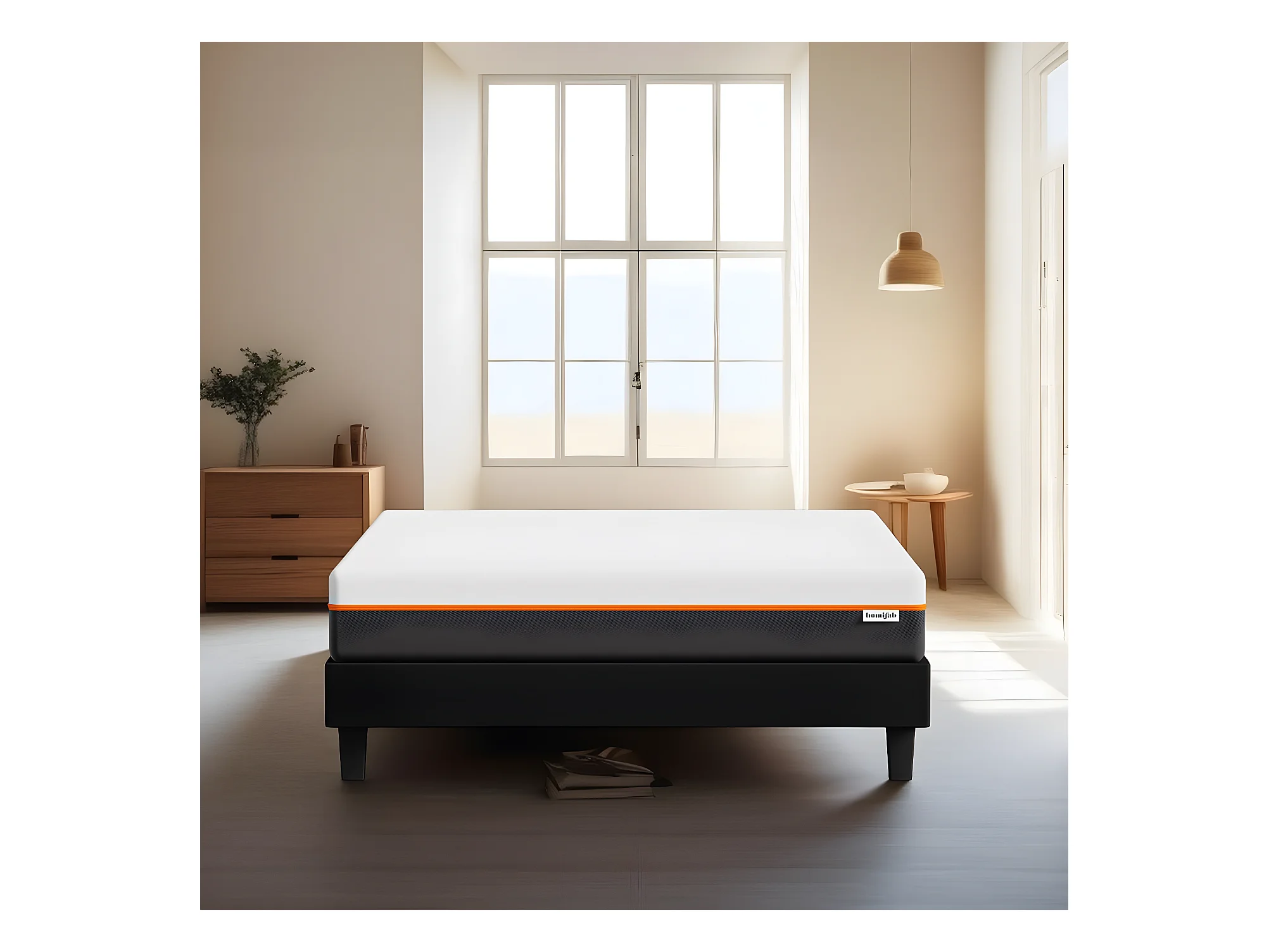 Ensemble sommier à lattes 180x200 cm en tissu noir + Matelas mousse gel à mémoire de forme, double confort - Dual Confort