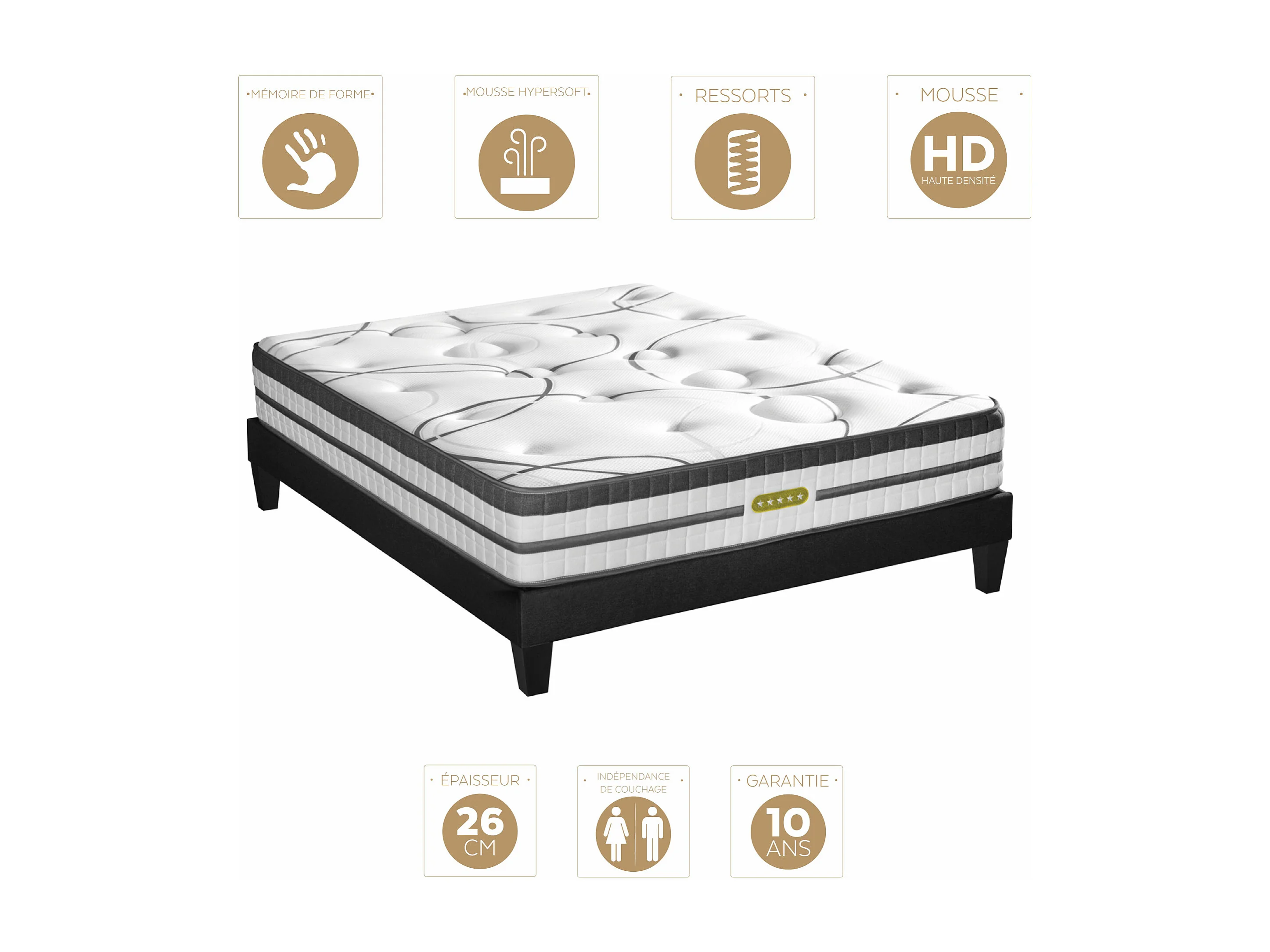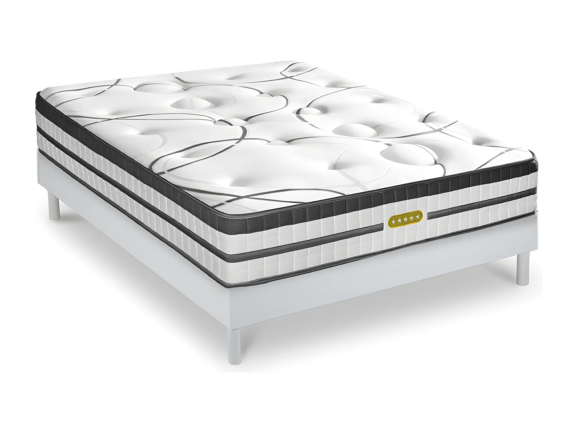 Ensemble sommier Bois Blanc et Matelas Concorde Ressorts ensachés Accueil mémoire 26cm 140x200cm