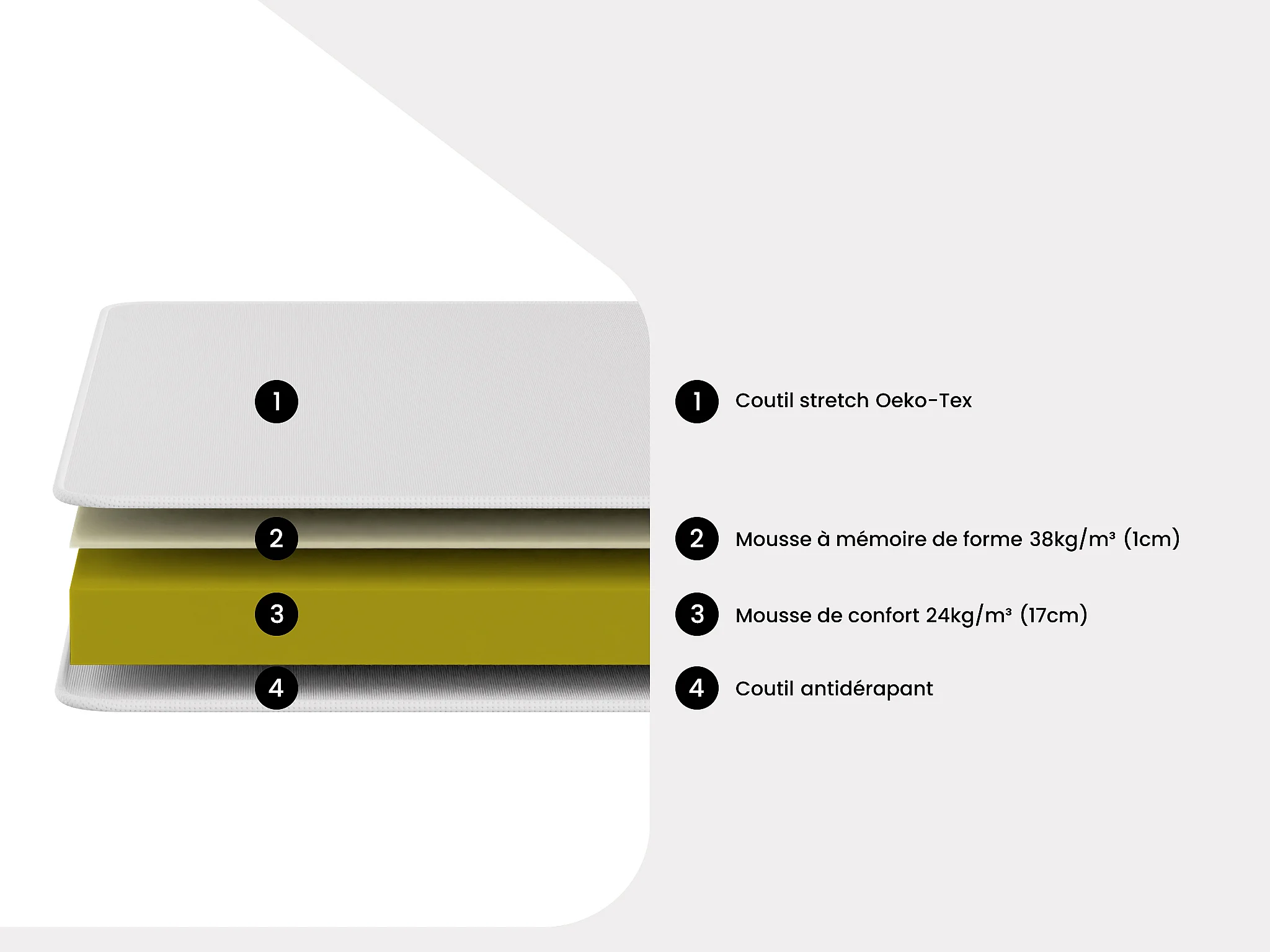 Ensemble 120 x 190 cm sommier + matelas mousse à mémoire de forme ép.18cm - RYZE de YSMÉE