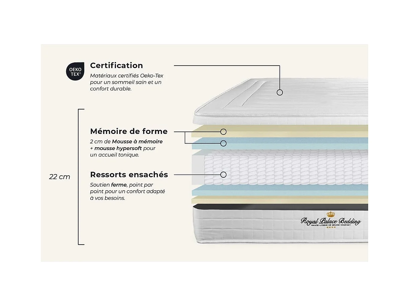 Ensemble sommier + matelas LANCASTER ressorts ensachés et mémoire de forme 160x200