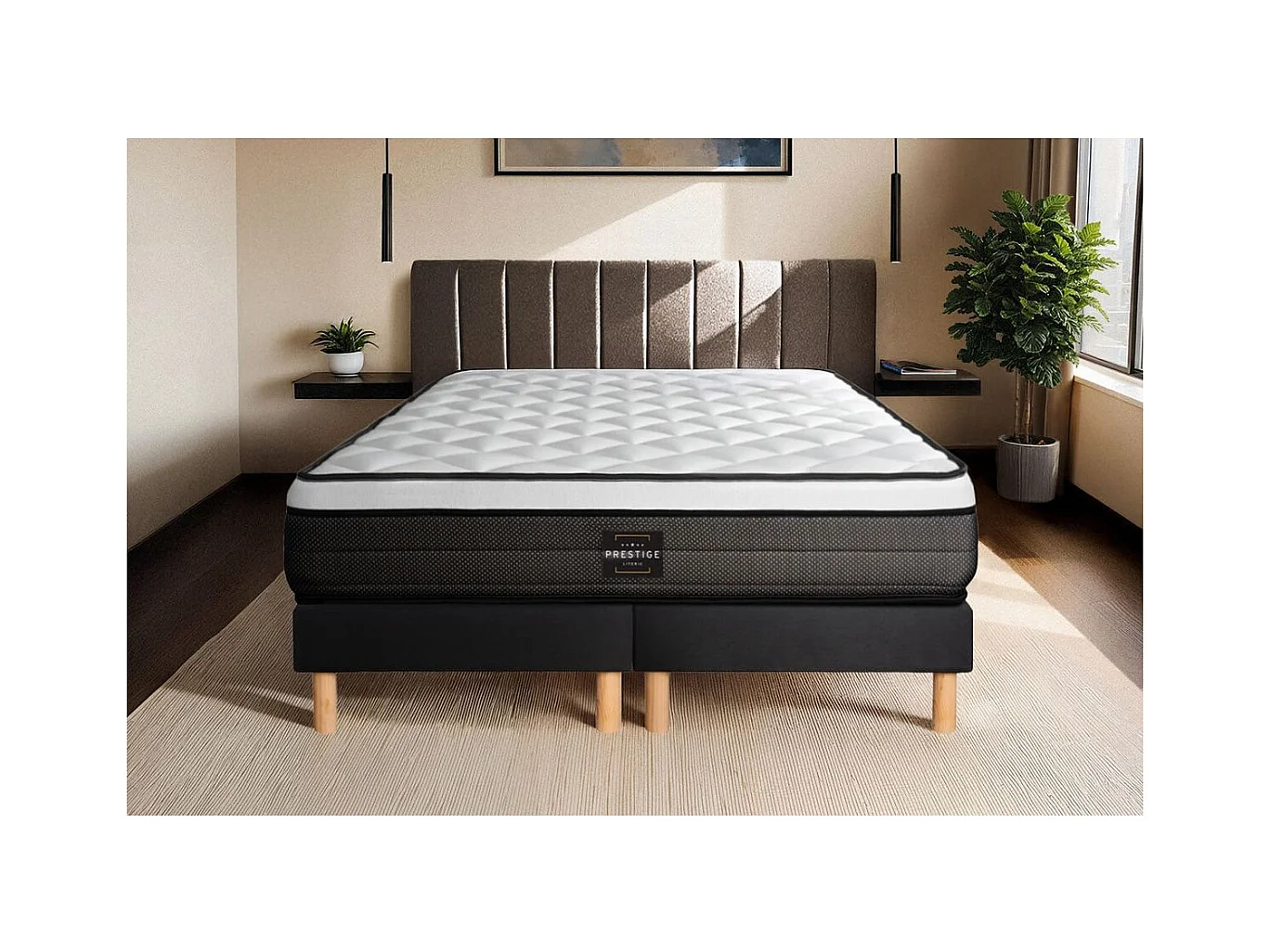 Ensemble Suite 200x200 Ressorts ensachés, mémoire de forme 5 zones double sommier noir