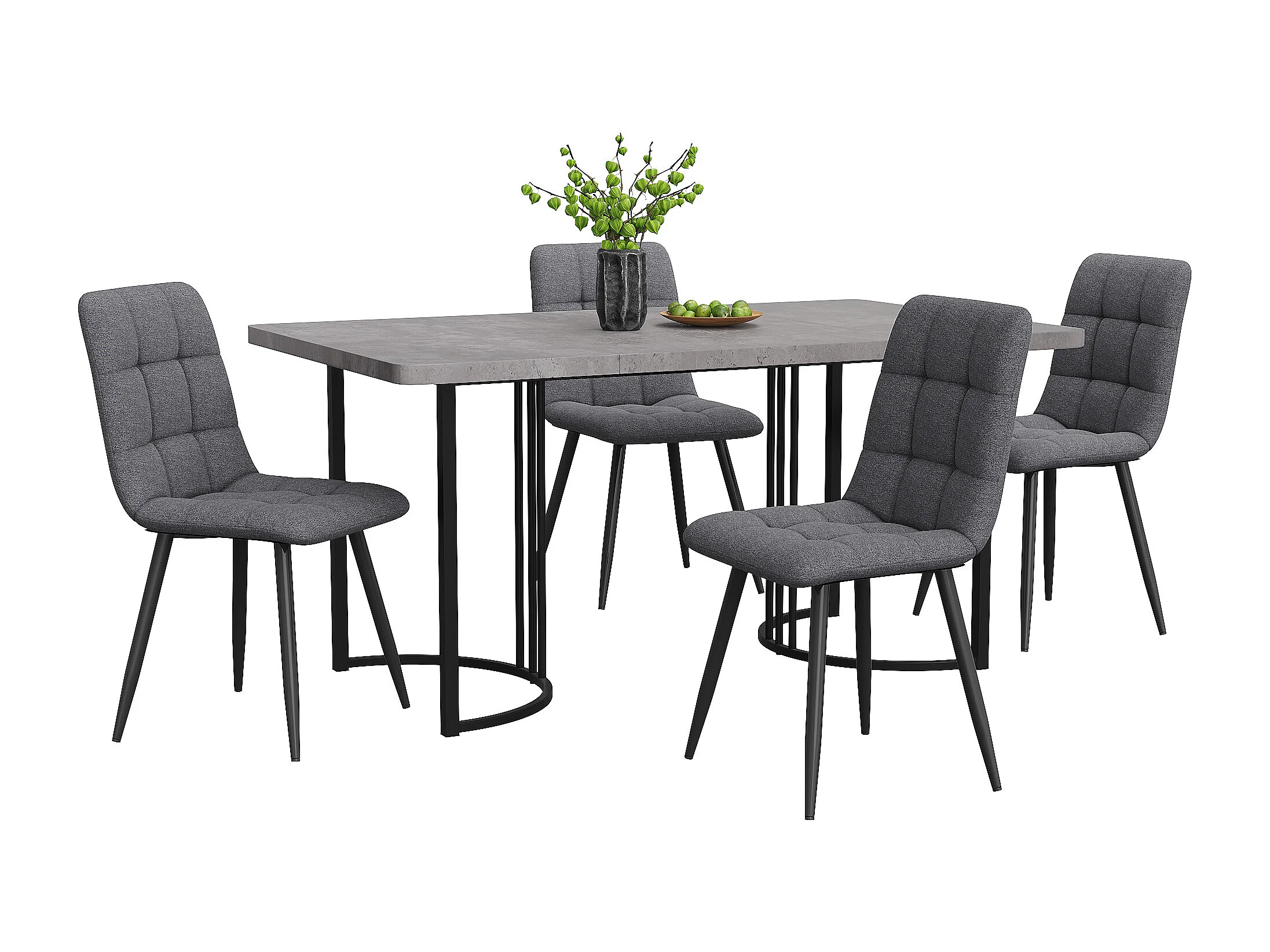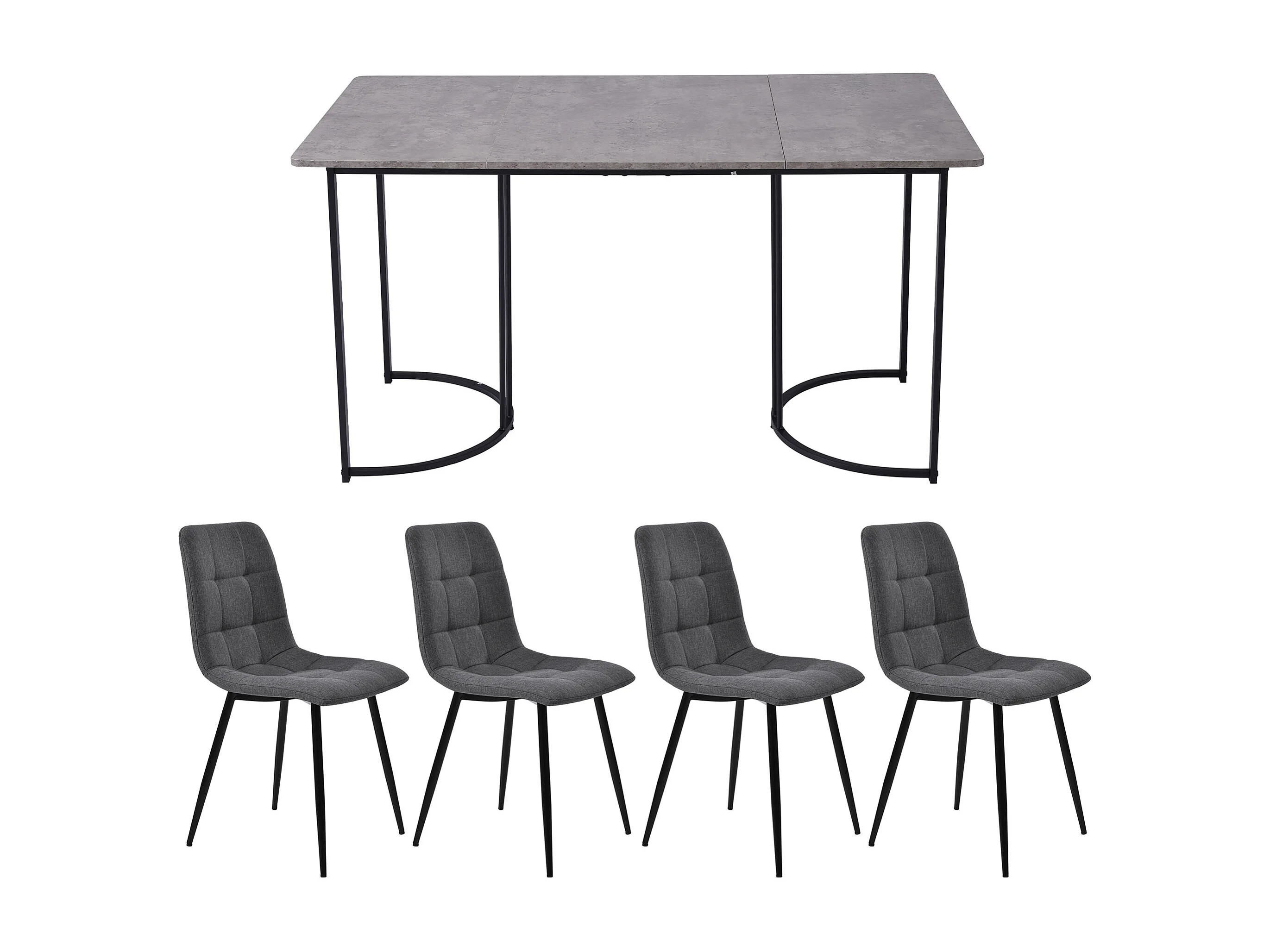 Ensemble table 140x80 cm et 4 chaises lin gris foncé - pieds de table en métal noir - plateau en MDF gris
