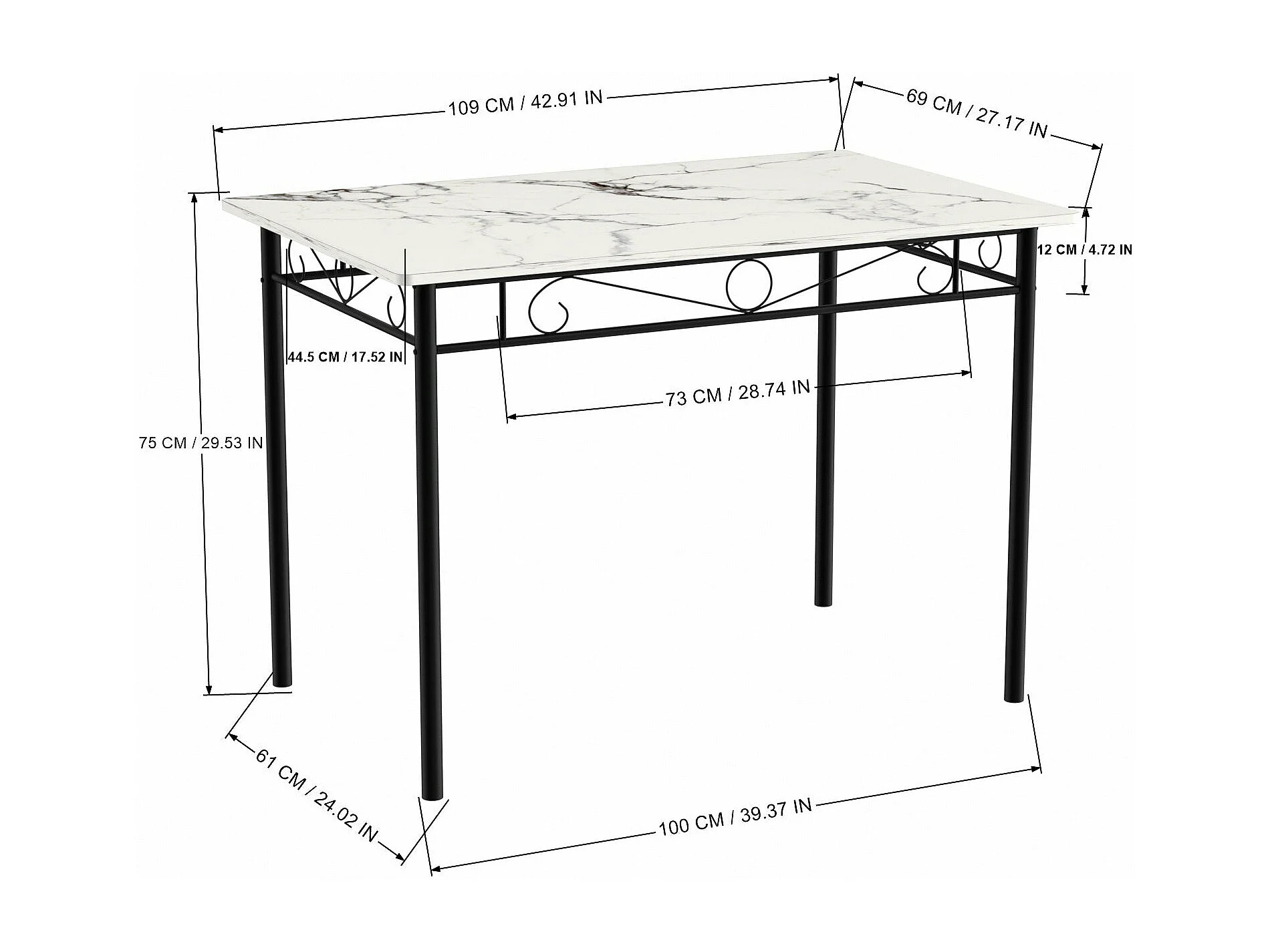 Ensemble table à manger 109x 69x 75 cm et 4 chaises - marbre noir et blanc - style industriel pour cuisine, salle à manger, salon