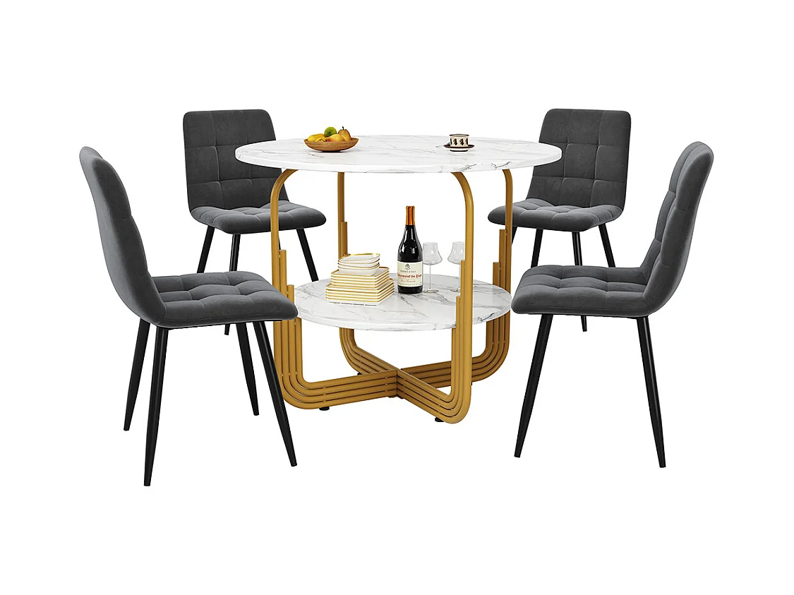 Ensemble table à manger 5 pièces 4 chaises moderne table ronde 80cm pieds dorés plateau marbré chaises gris