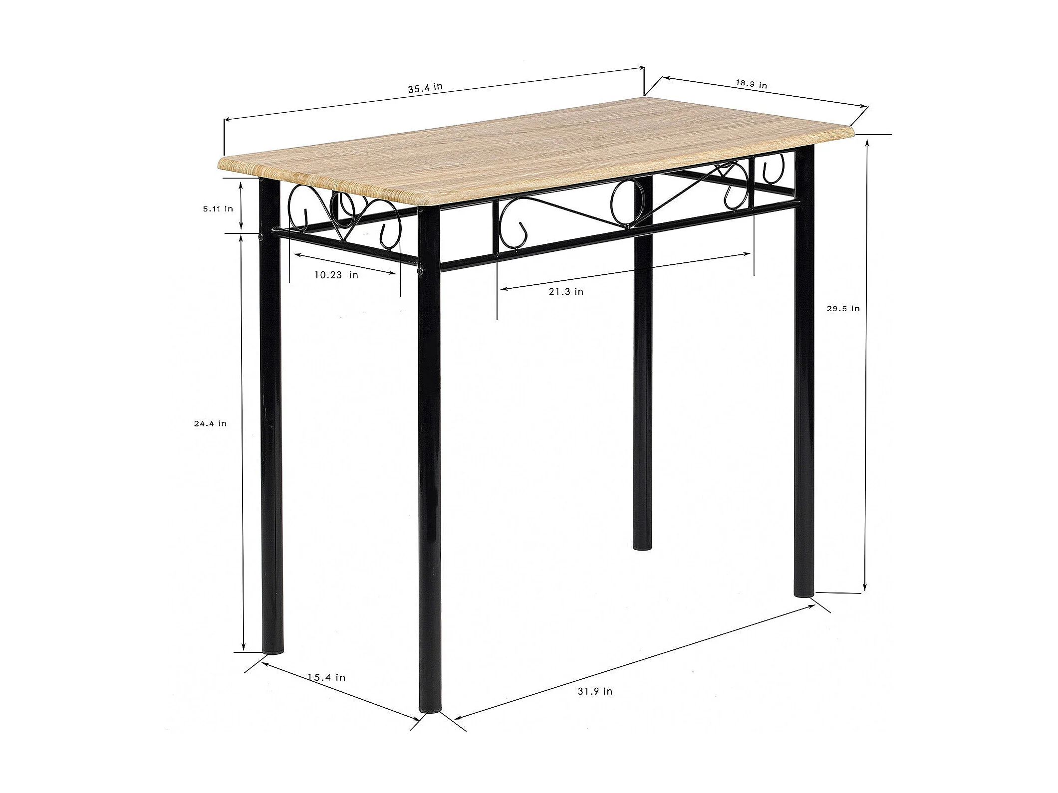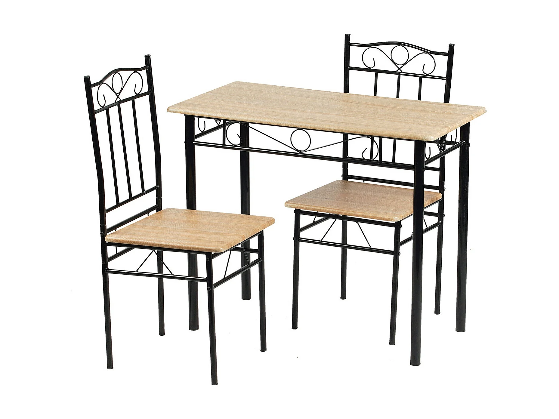 Ensemble table à manger 90x 48x 75 cm et 2 chaises - Hêtre clair et Noir - Style Industriel, pour Cuisine, Salle à Manger, Salon