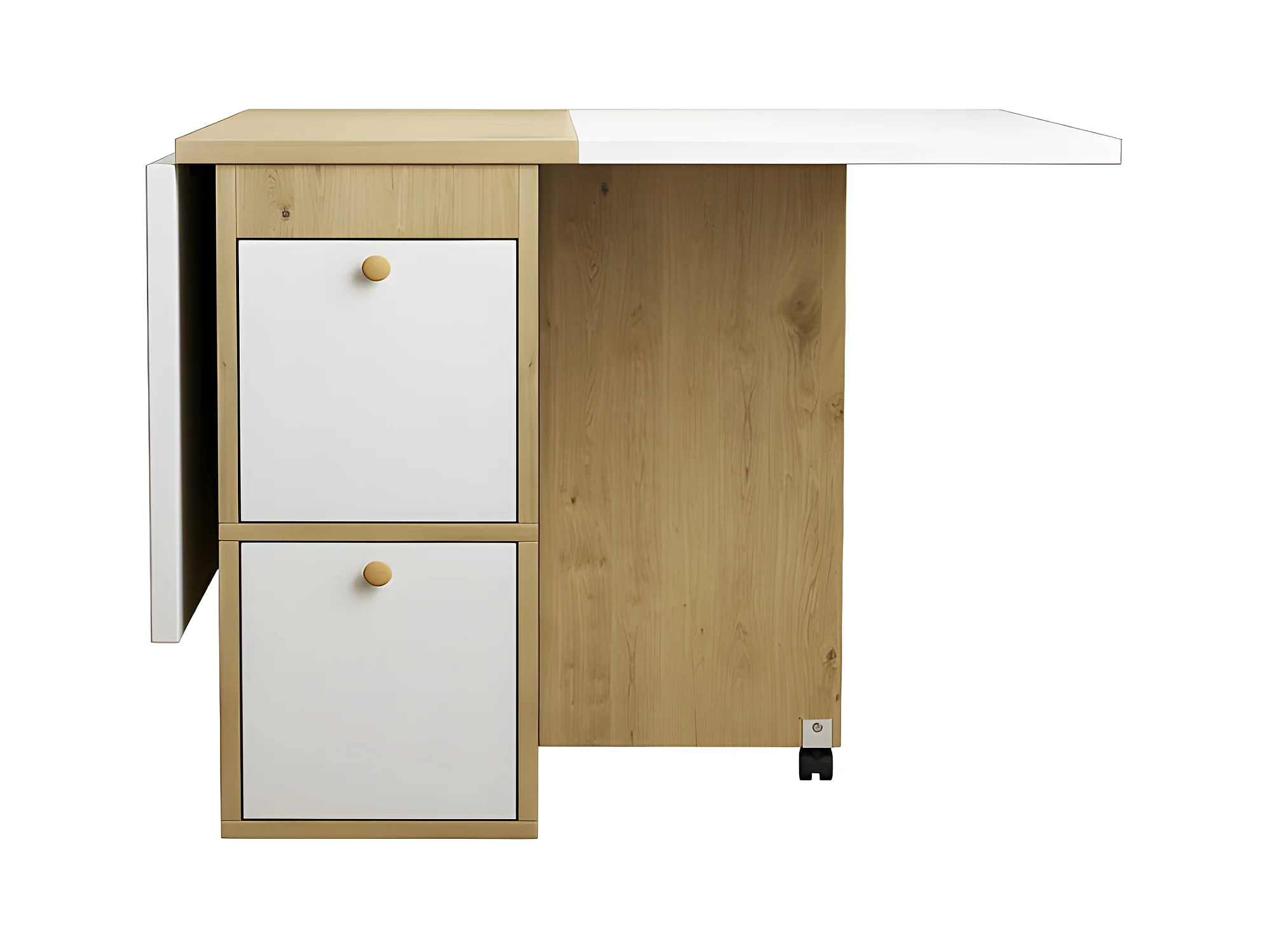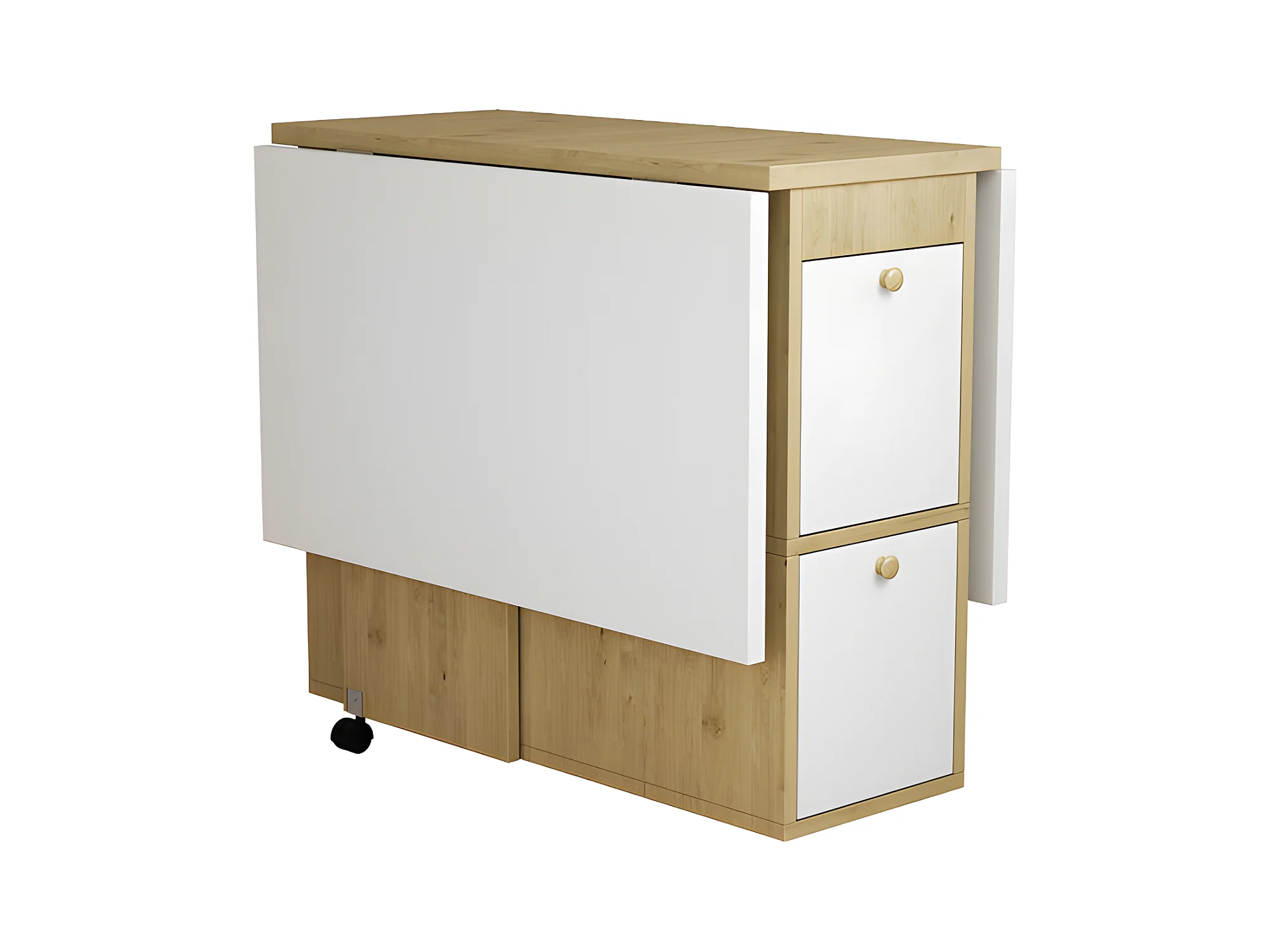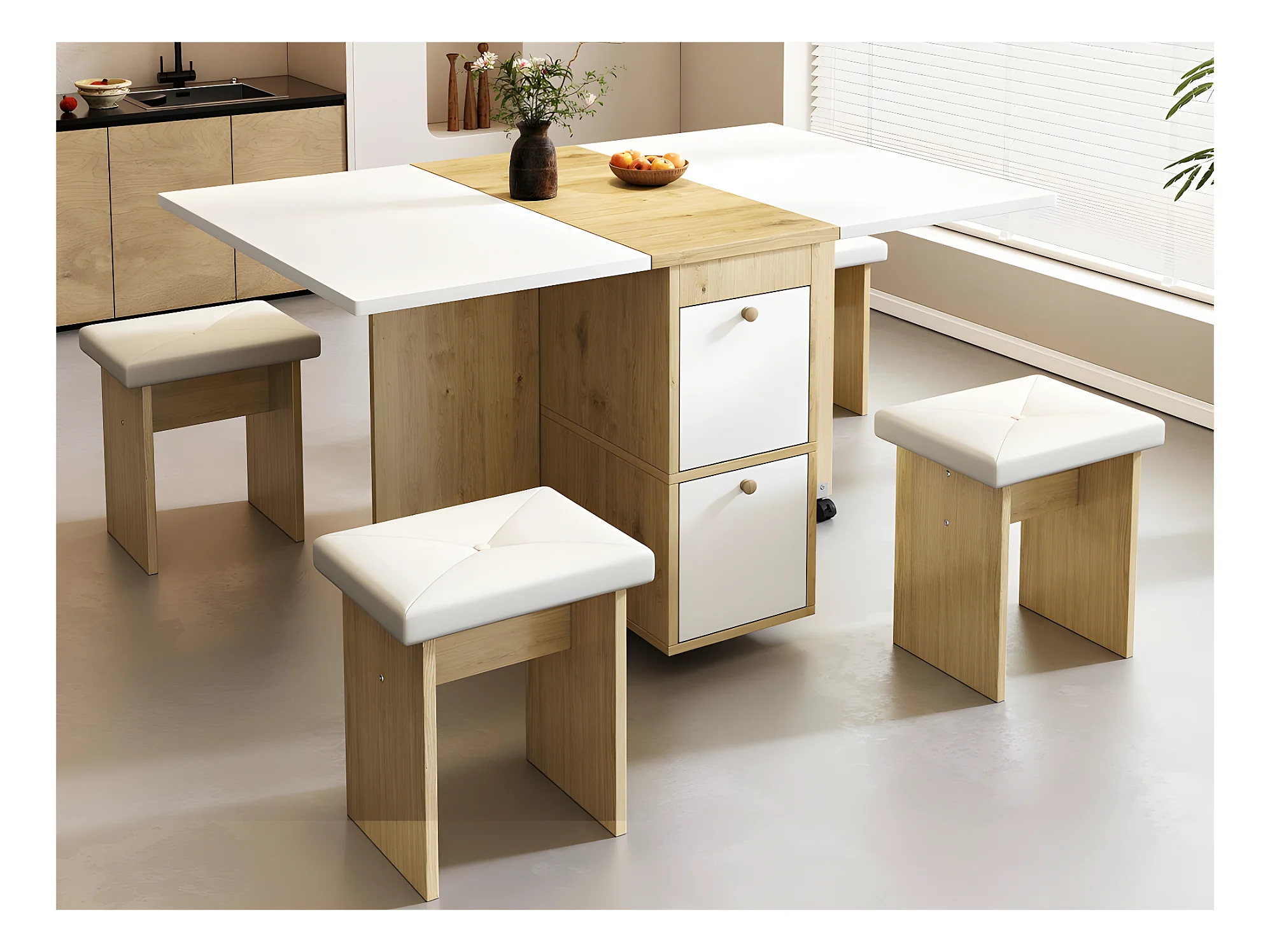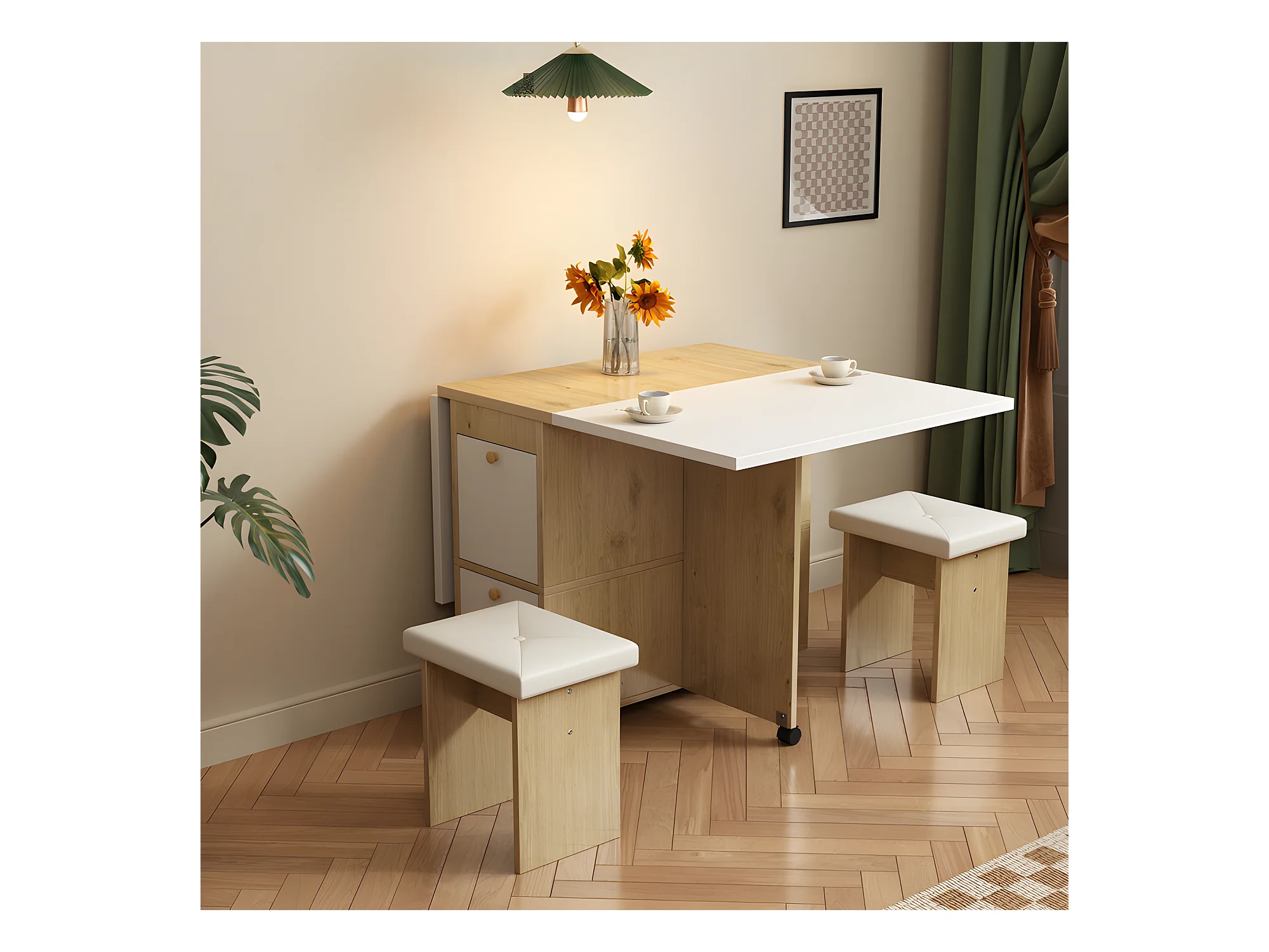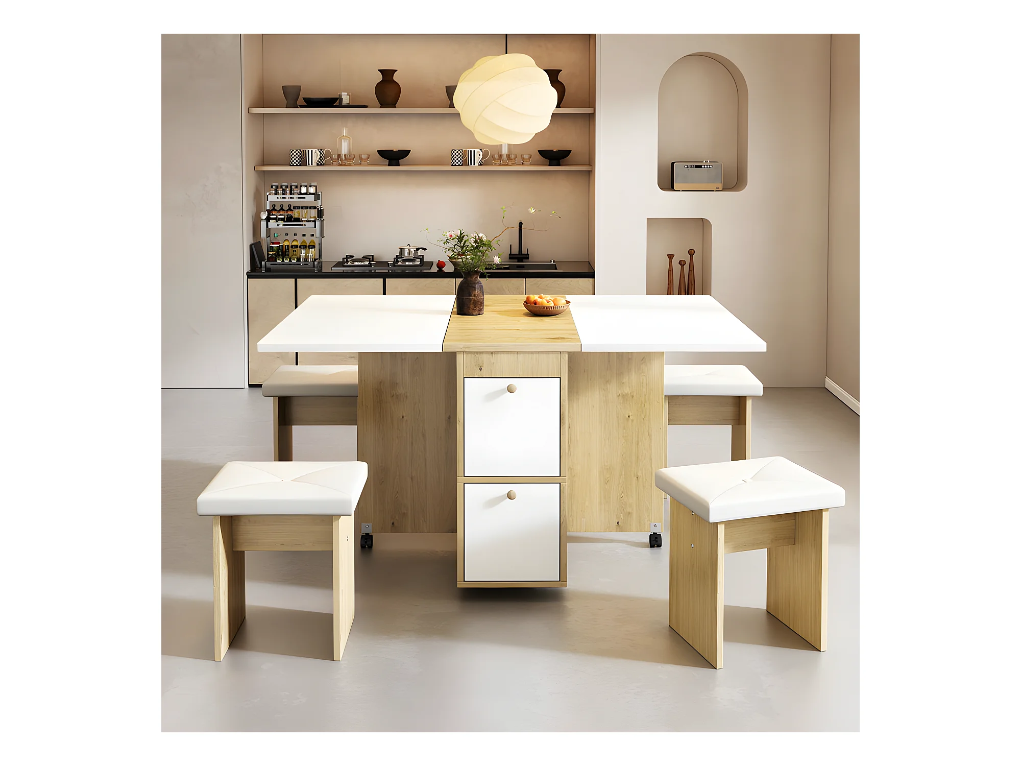 Ensemble table à manger avec 4 chaises - table pliante avec 2 tiroirs 140*80*75cm - en panneaux de particules - Blanc & Doré
