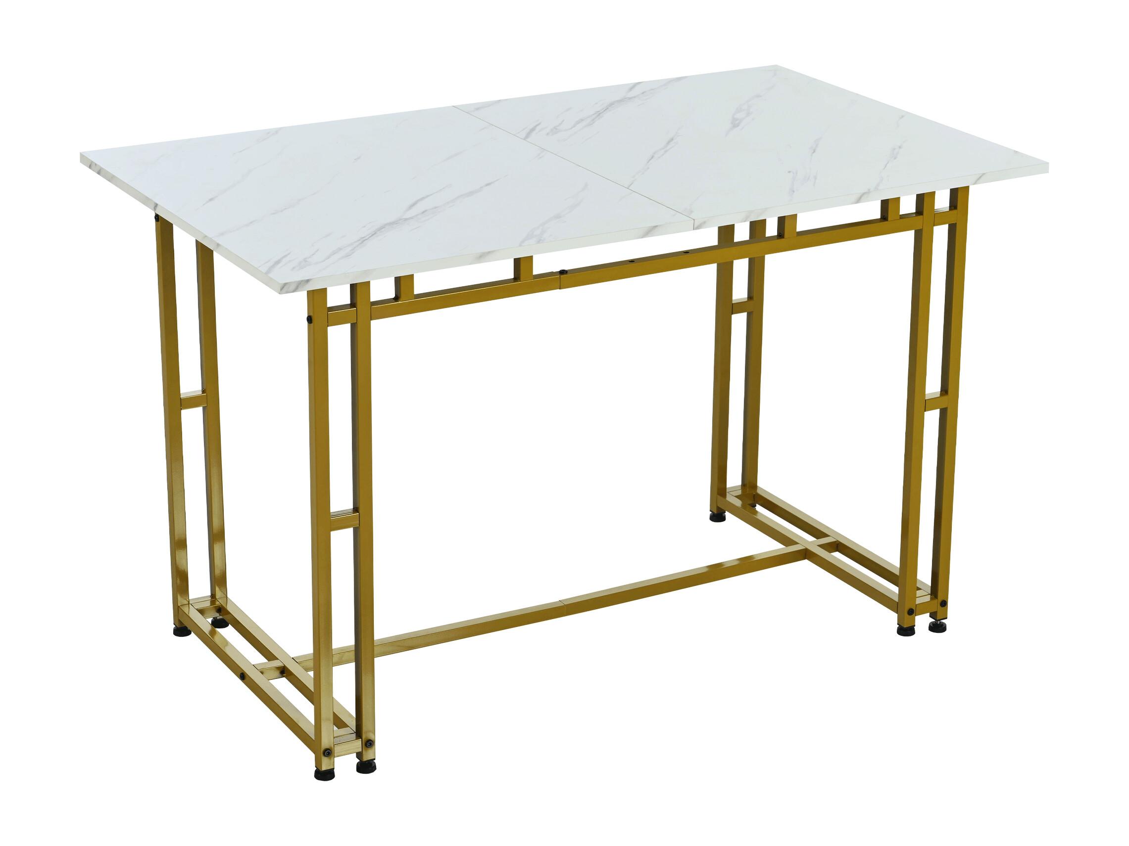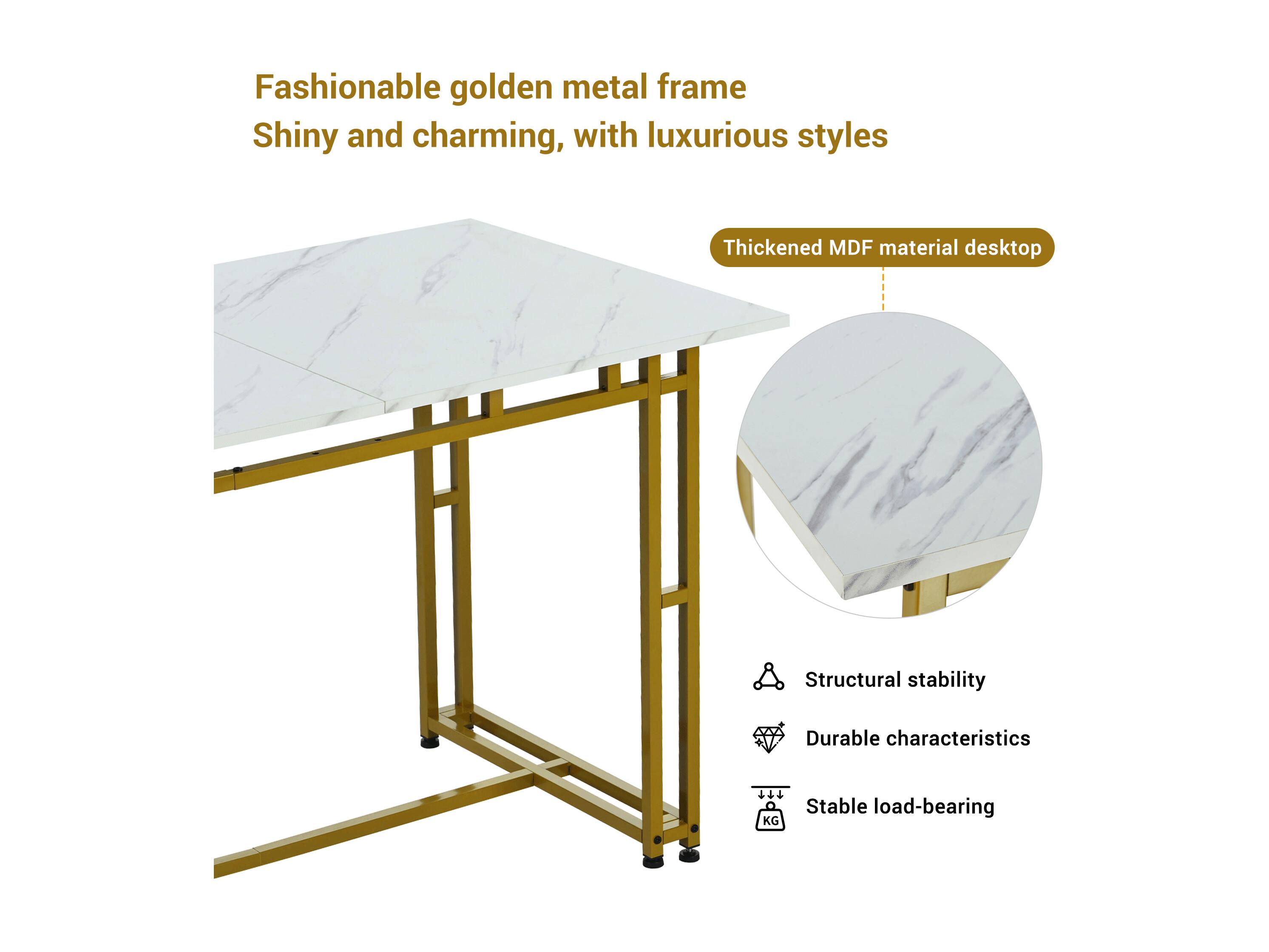 Ensemble Table à manger Blanc+Doré 120x70 cm avec 4 chaises en Velours Gris Clair
