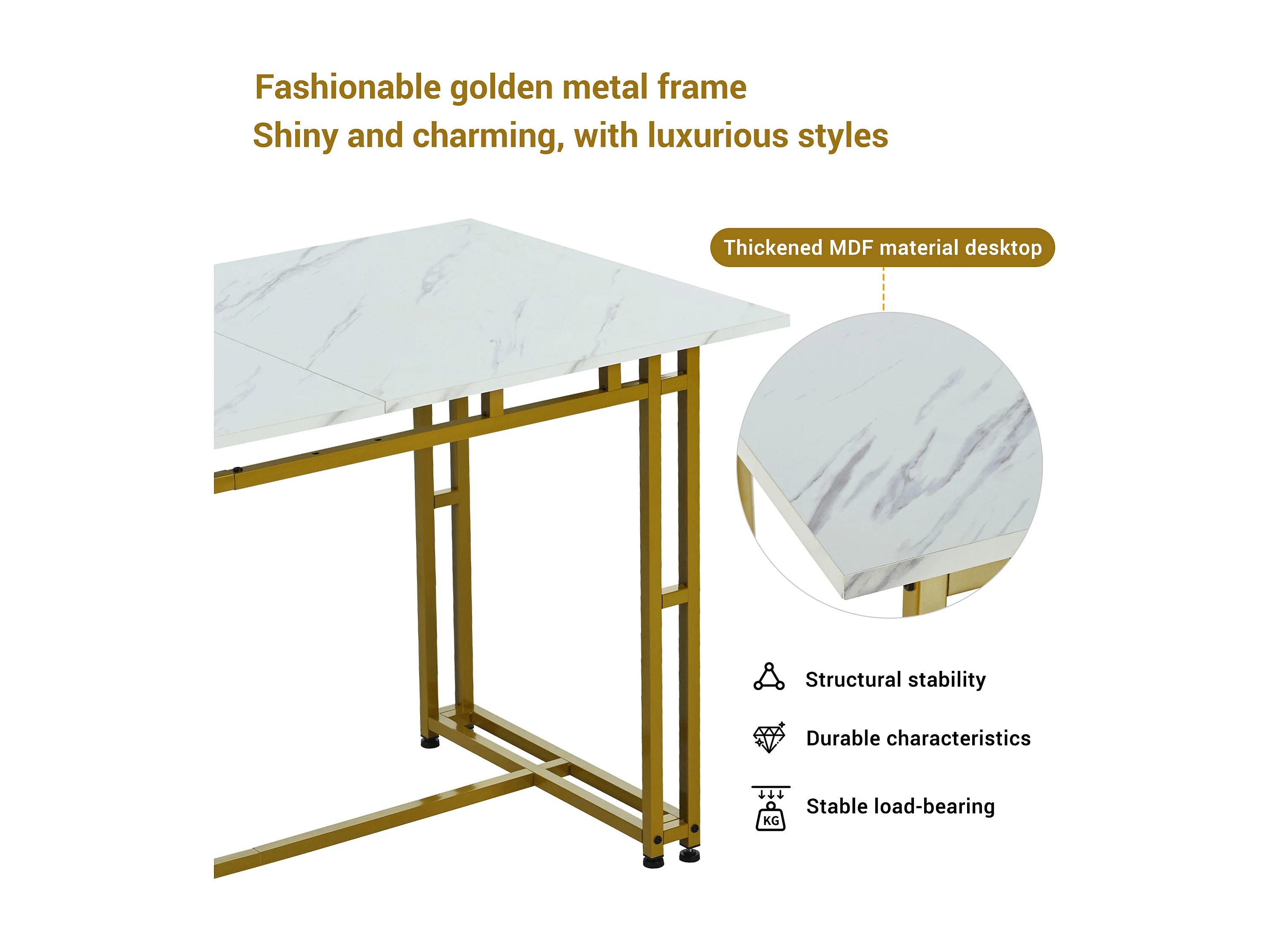 Ensemble Table à manger Blanc+Doré 120x70 cm avec 4 chaises en Velours Noir