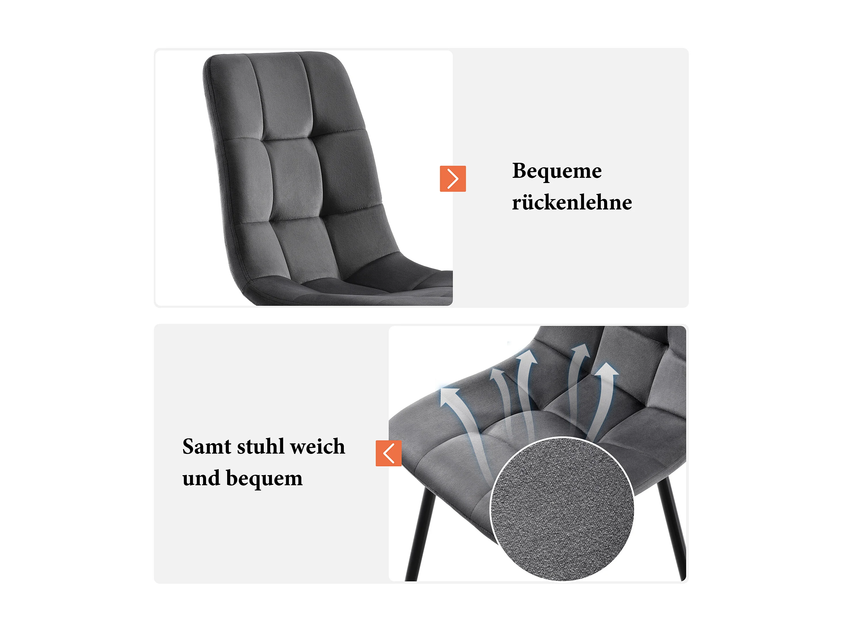 Ensemble Table à manger Blanc+Noir 120x70 cm avec 4 chaises en Velours Gris Foncé