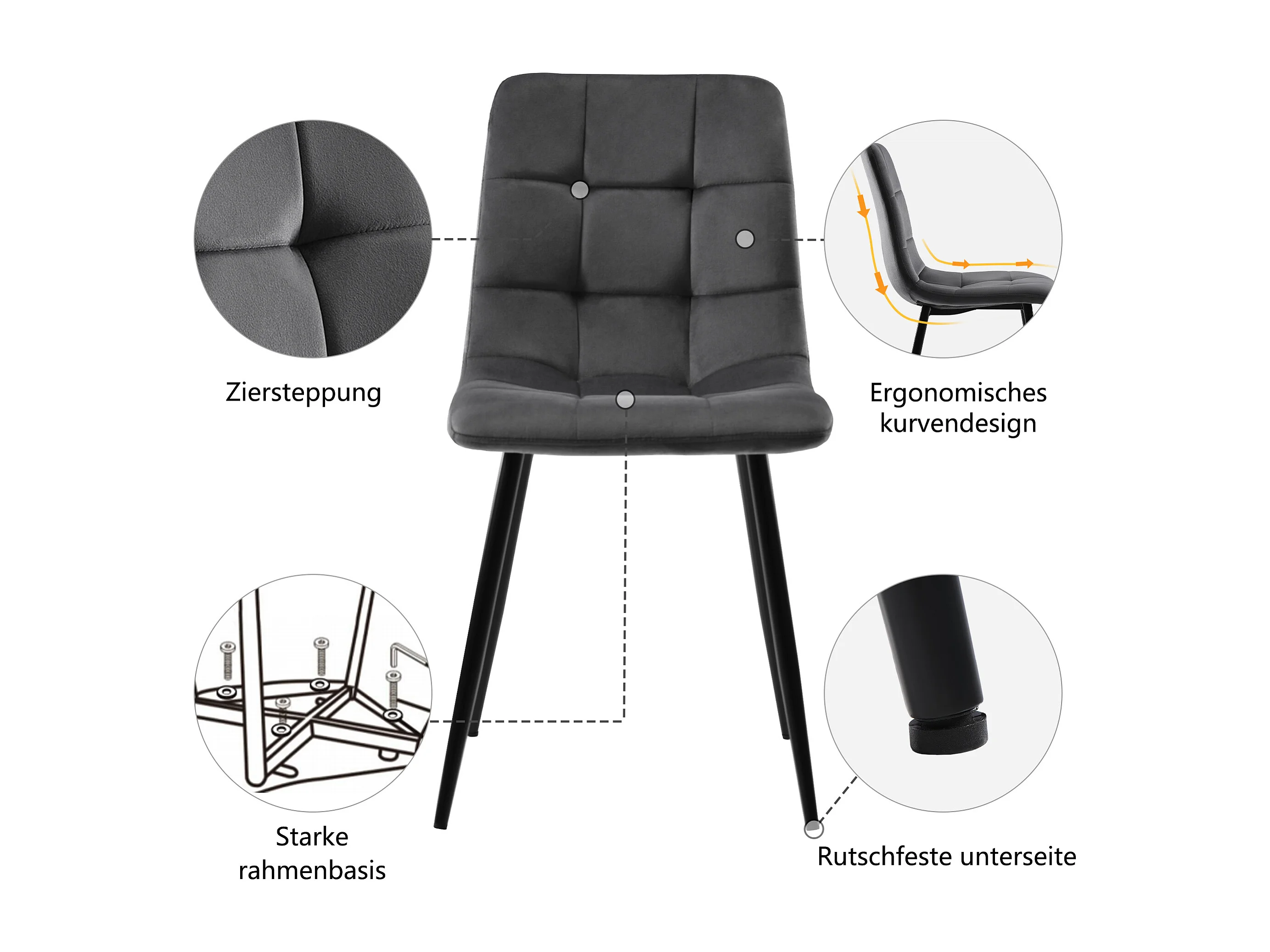 Ensemble Table à manger Blanc+Noir 140x80 cm avec 4 chaises en Velours Gris Foncé