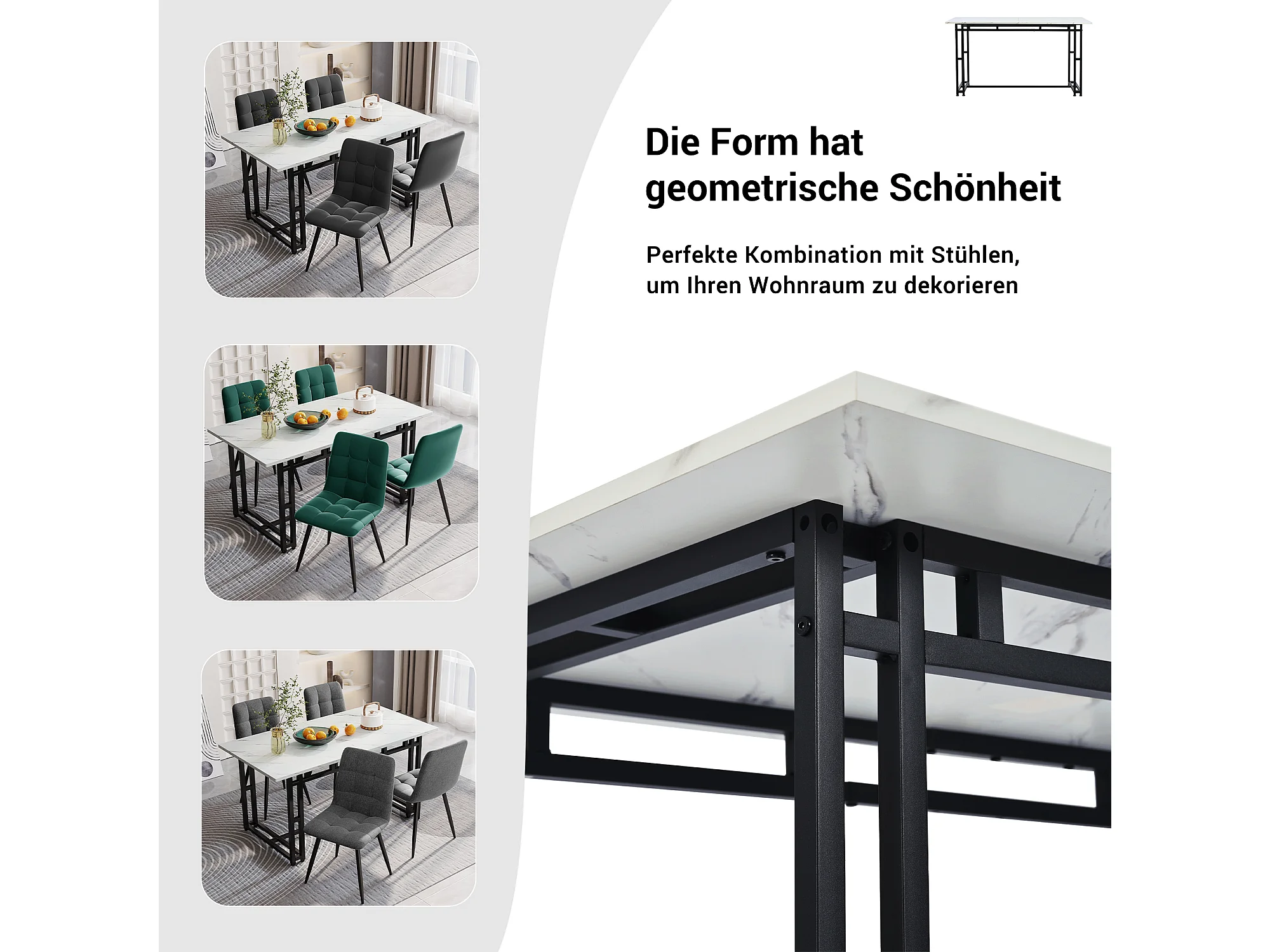 Ensemble Table à manger Blanc+Noir 140x80 cm avec 4 chaises en Velours Noir
