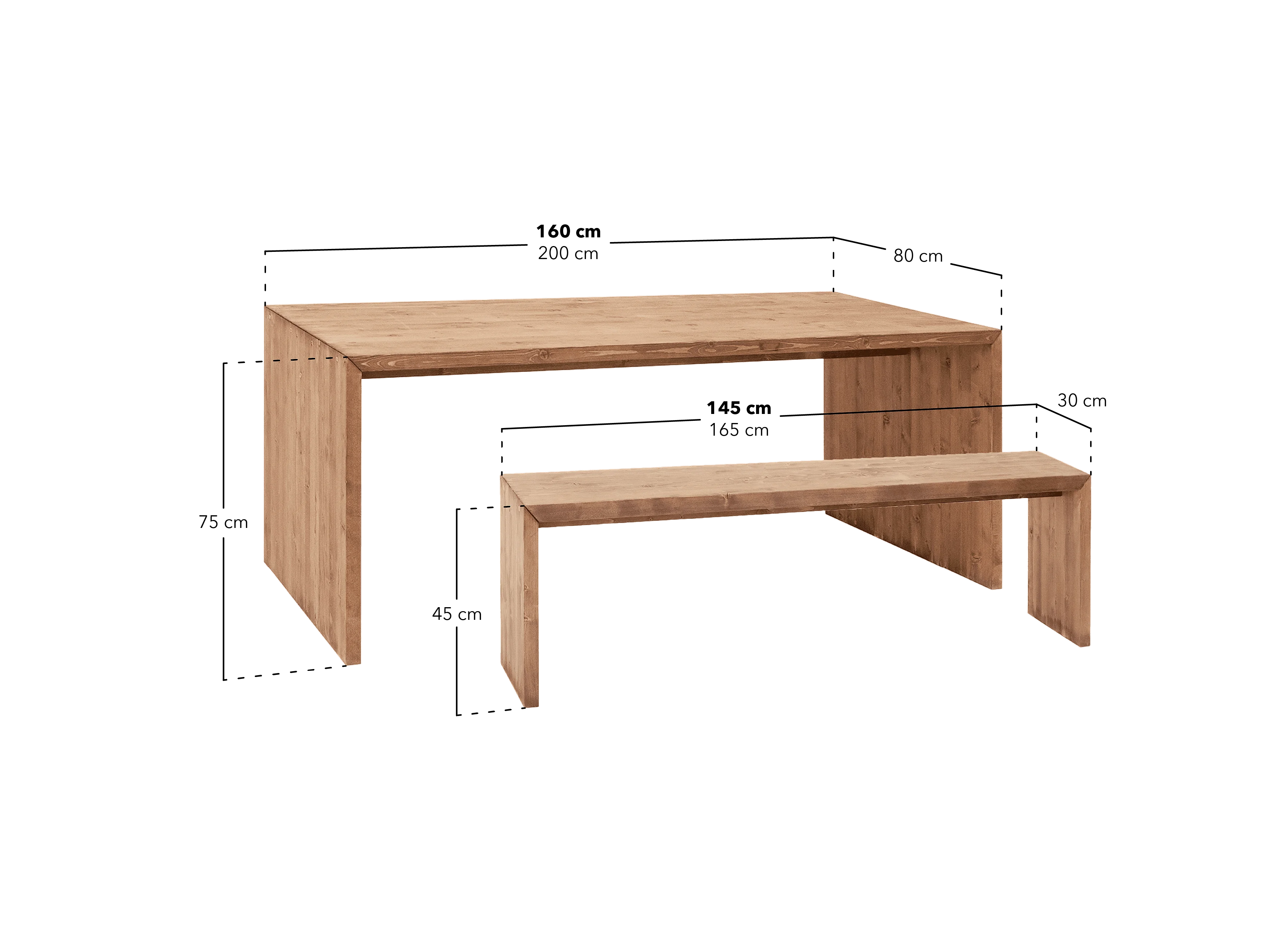 Ensemble table à manger et banc en bois de sapin marron 200x75cm - TELVA - DECOWOOD
