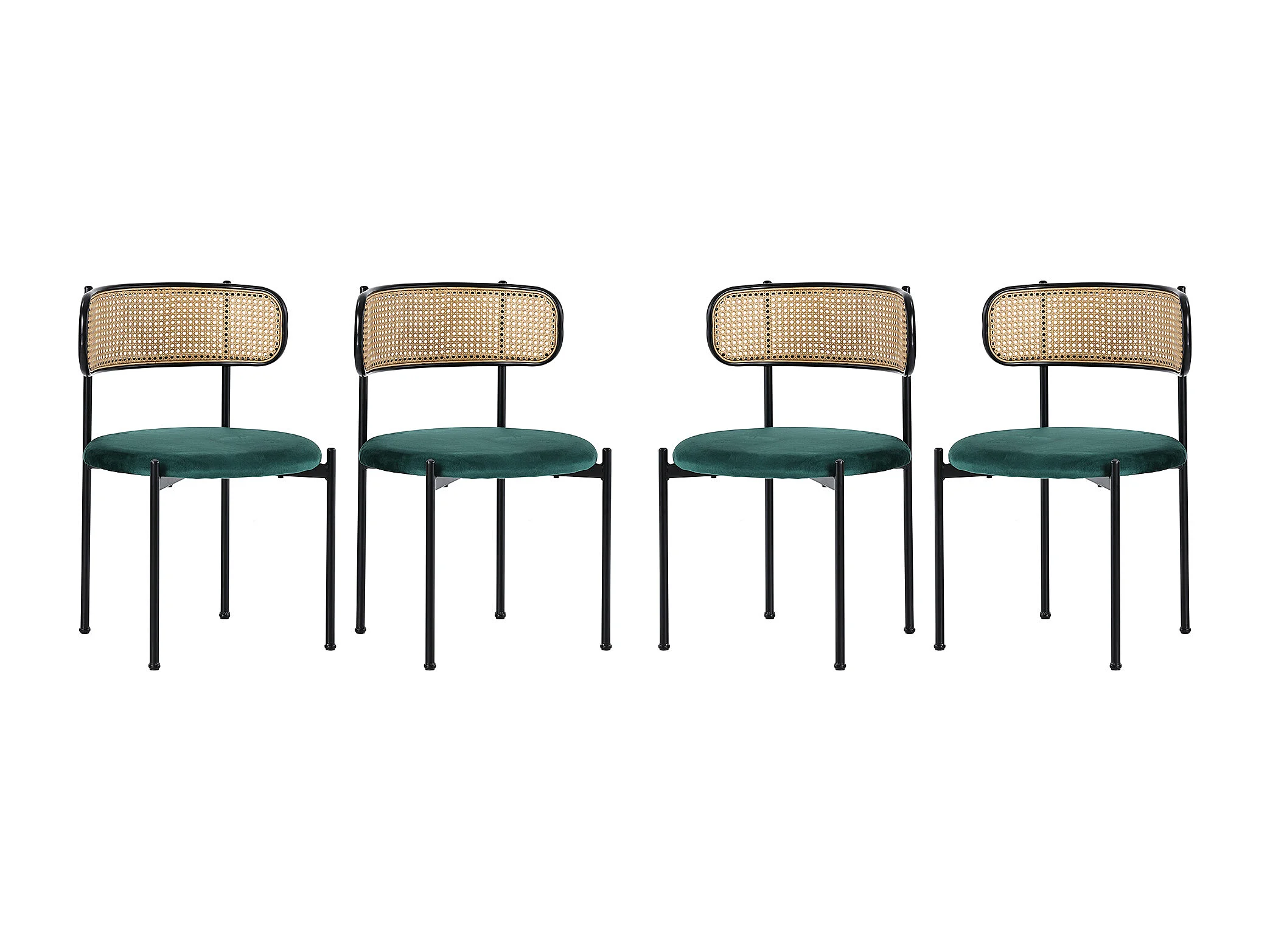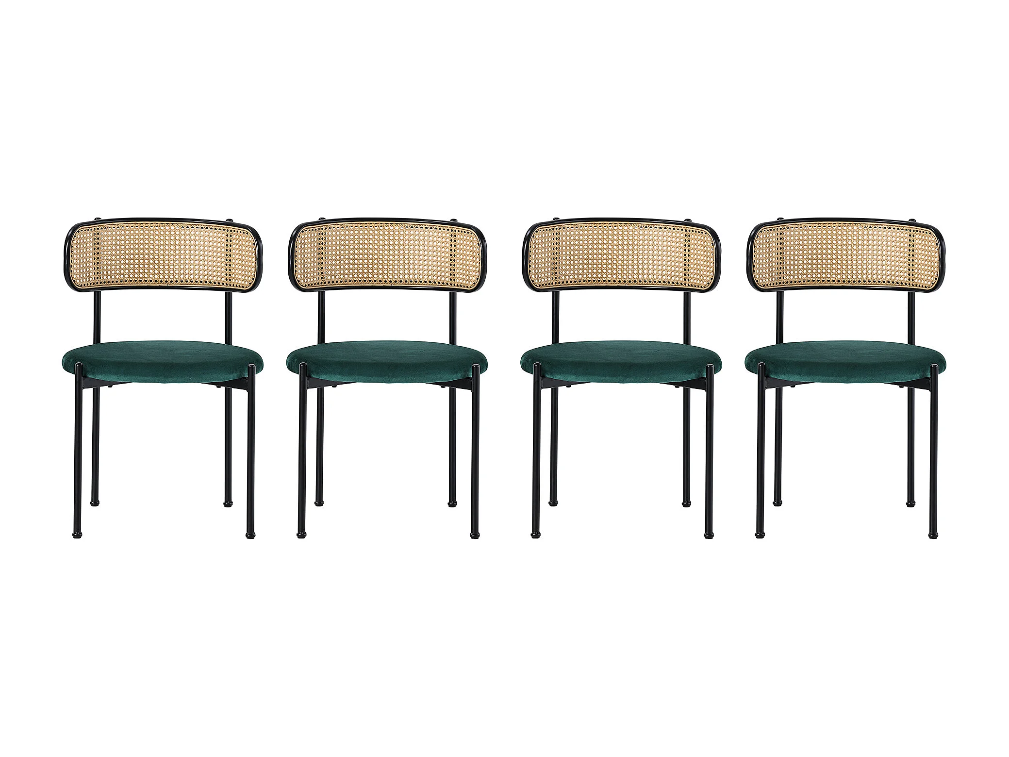 Ensemble Table à manger et chaises, 5 pièces, 4 chaises velours, 1 table rectangulaire MDF, noir + gris + vert (L140/180 x l80 x H75 cm)