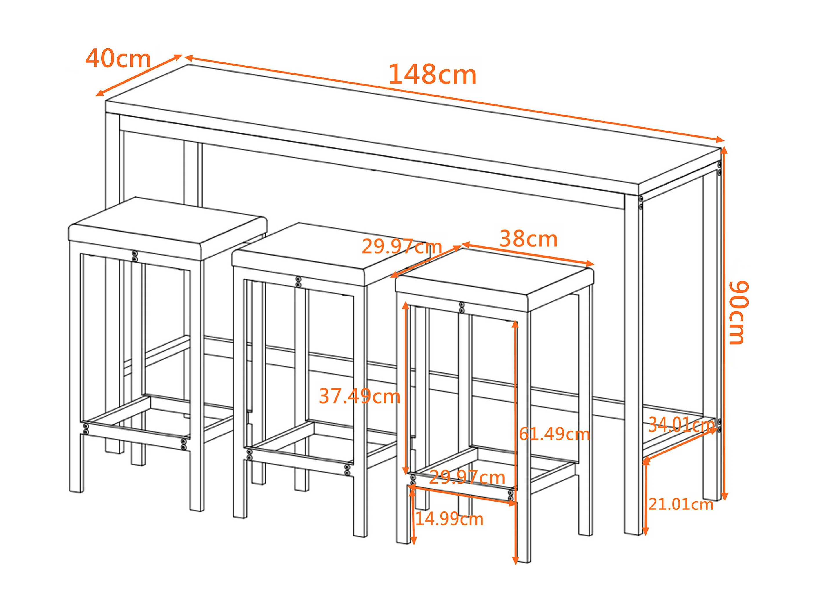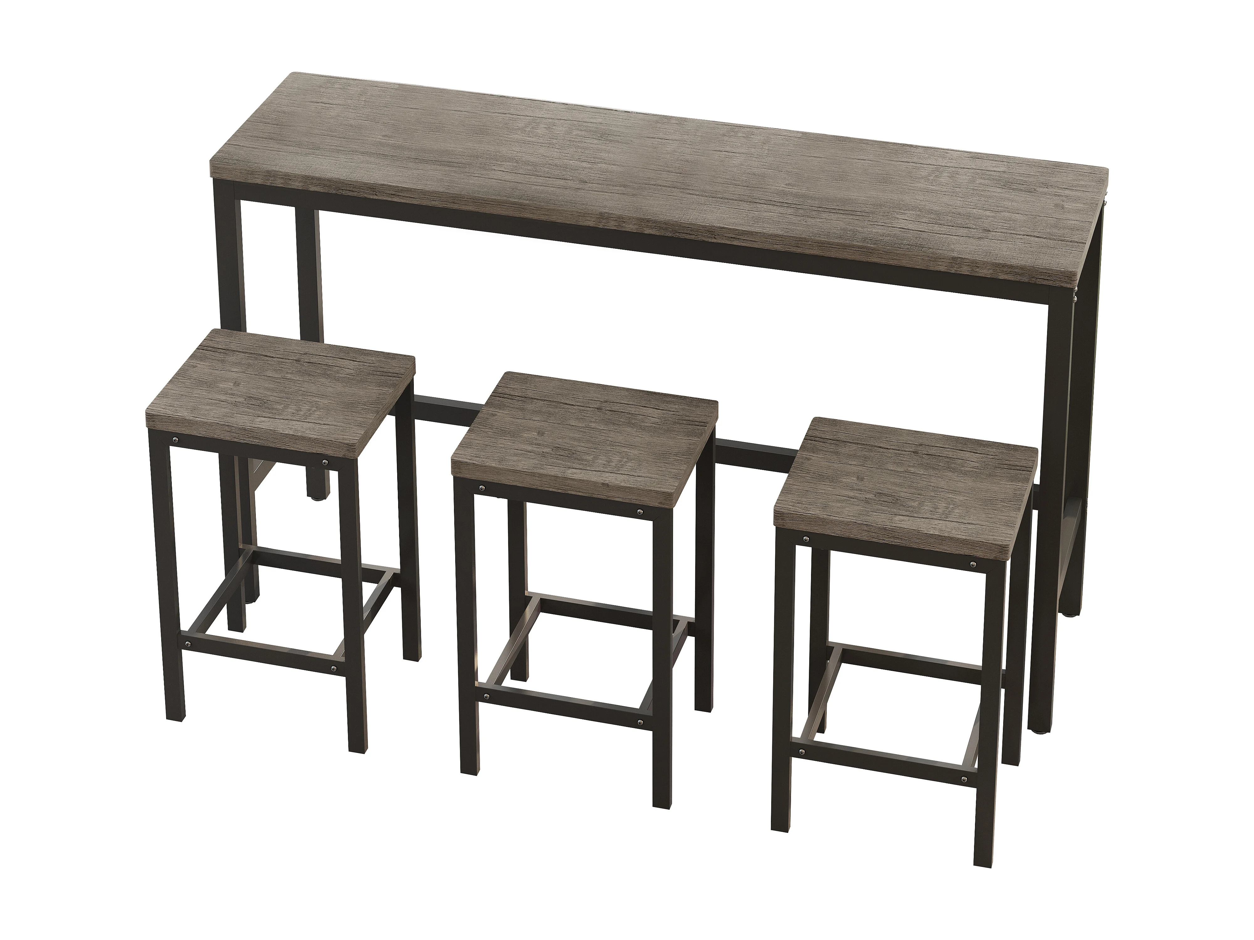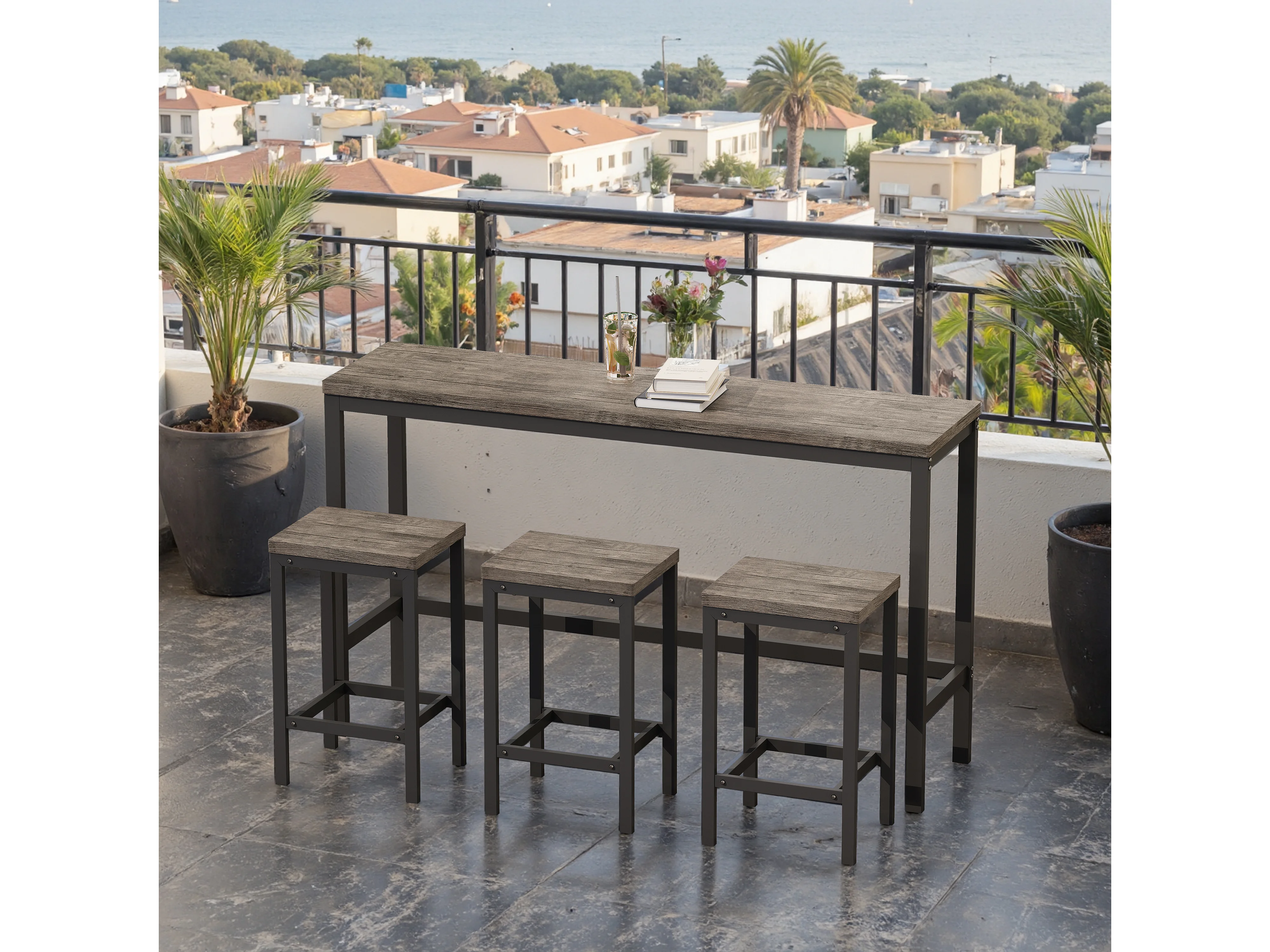 Ensemble table bar avec 3 tabourets - Plateau marron-gris, structure métal