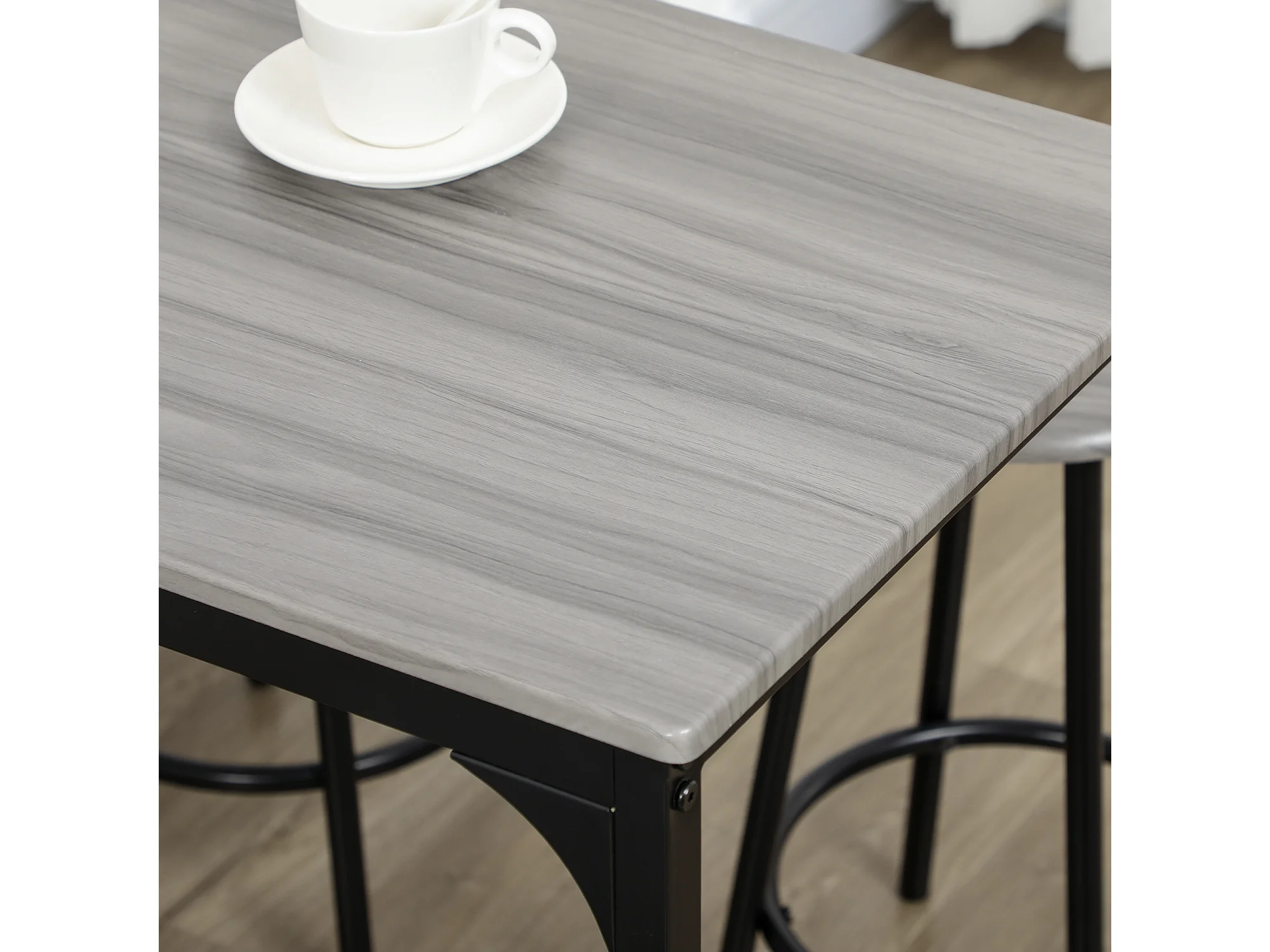 Ensemble table de bar 4 tabourets style industriel métal noir aspect bois gris