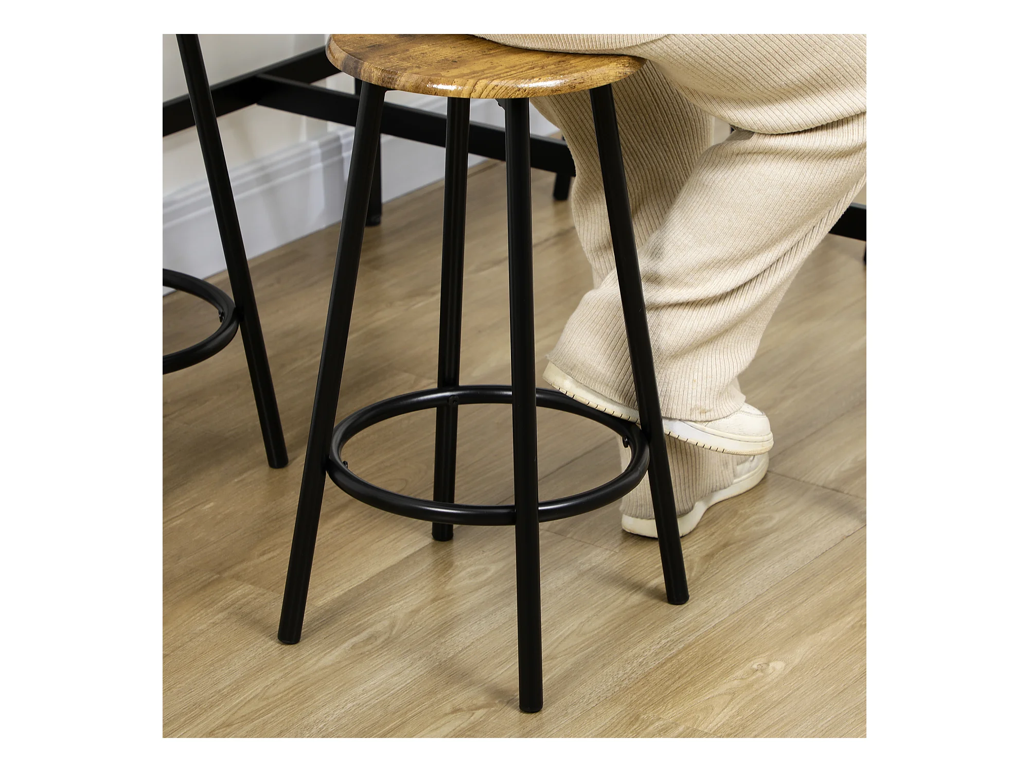 Ensemble table de bar 4 tabourets style industriel métal noir aspect bois vieilli