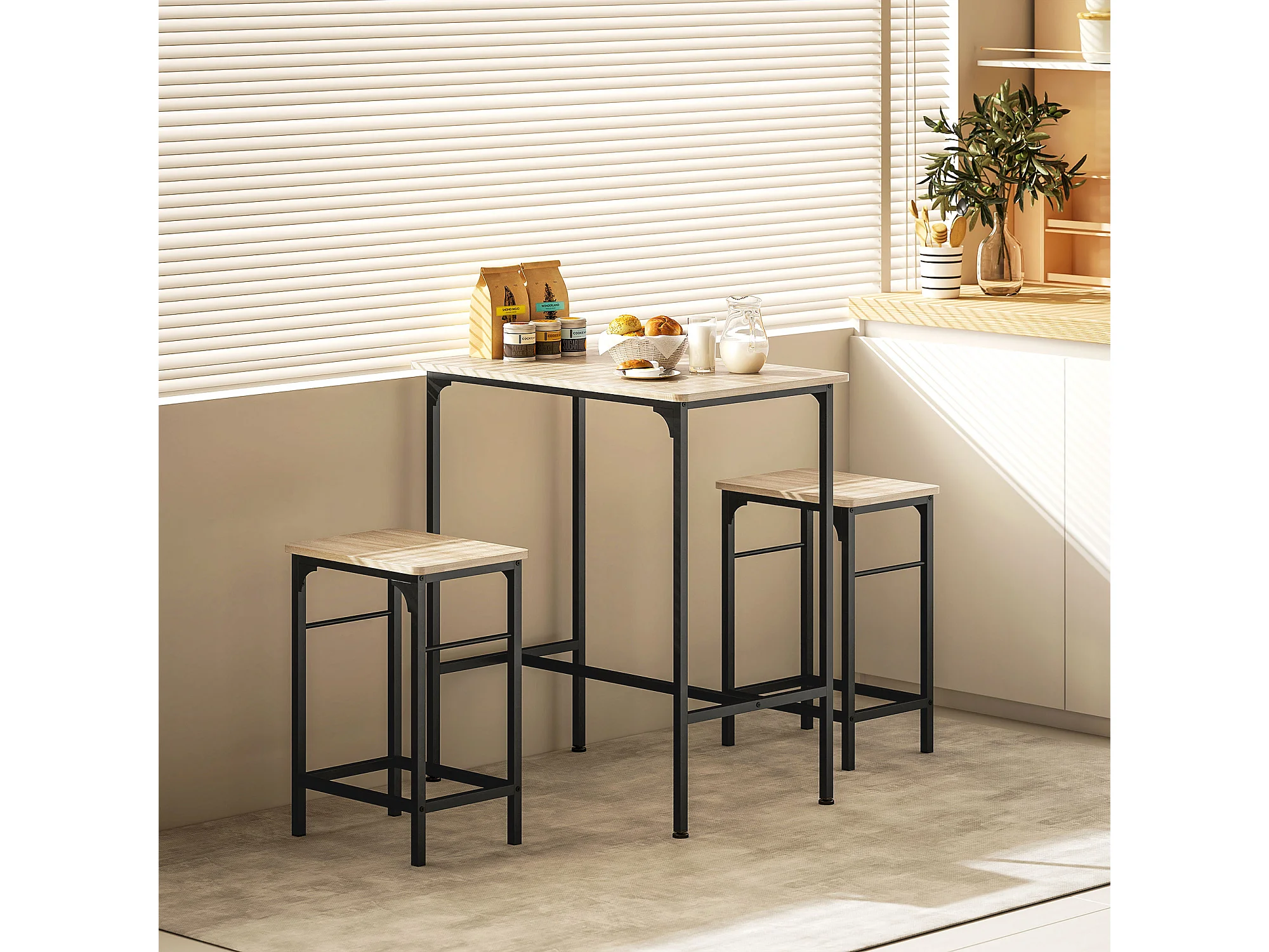 Ensemble table de bar avec 2 tabourets acier noir effet bois de chêne clair