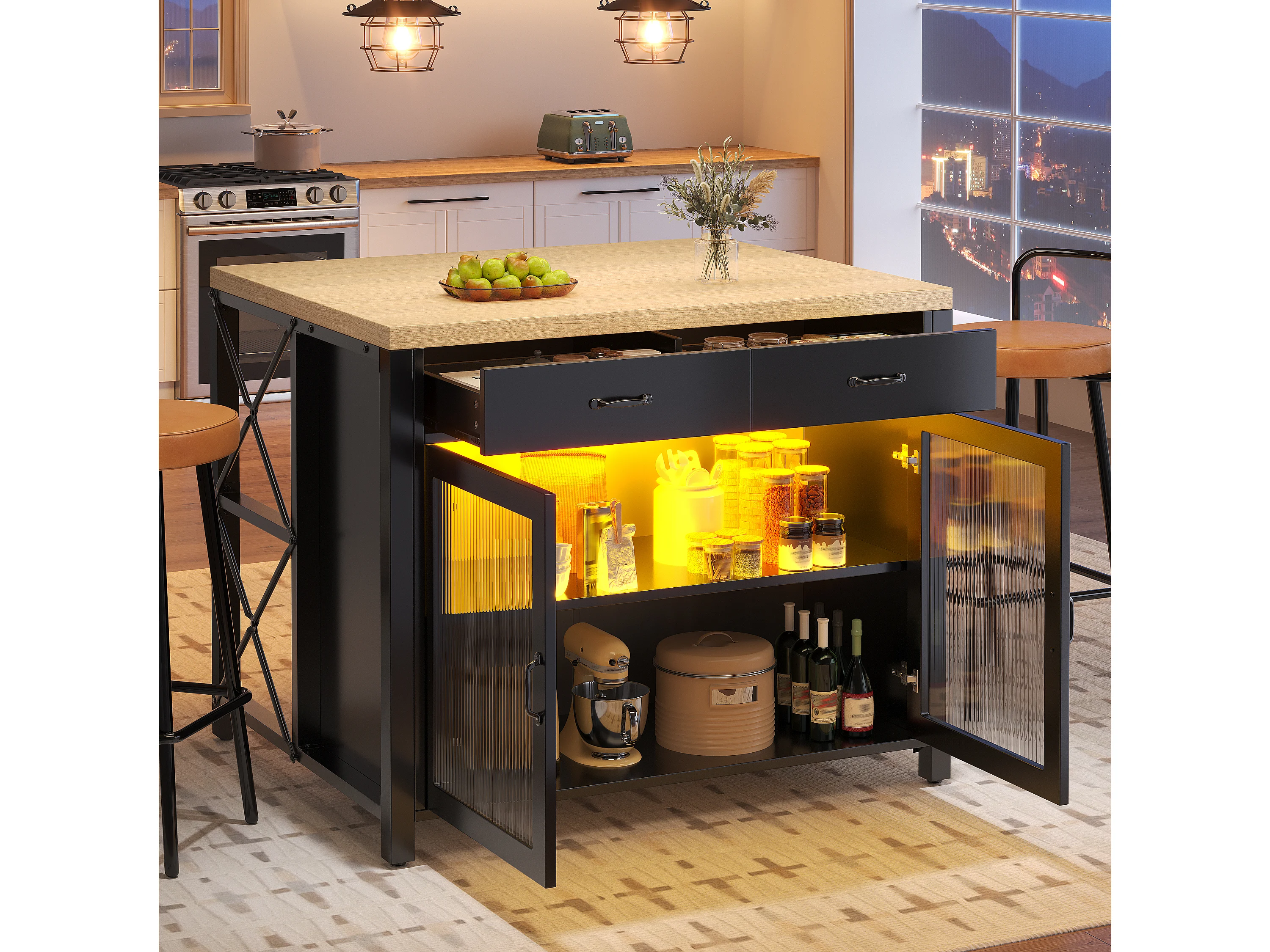 Ensemble table de bar avec tabourets(5 pièces) - table de bar avec Leds + tiroirs + 4 tabourets - MDF - noir