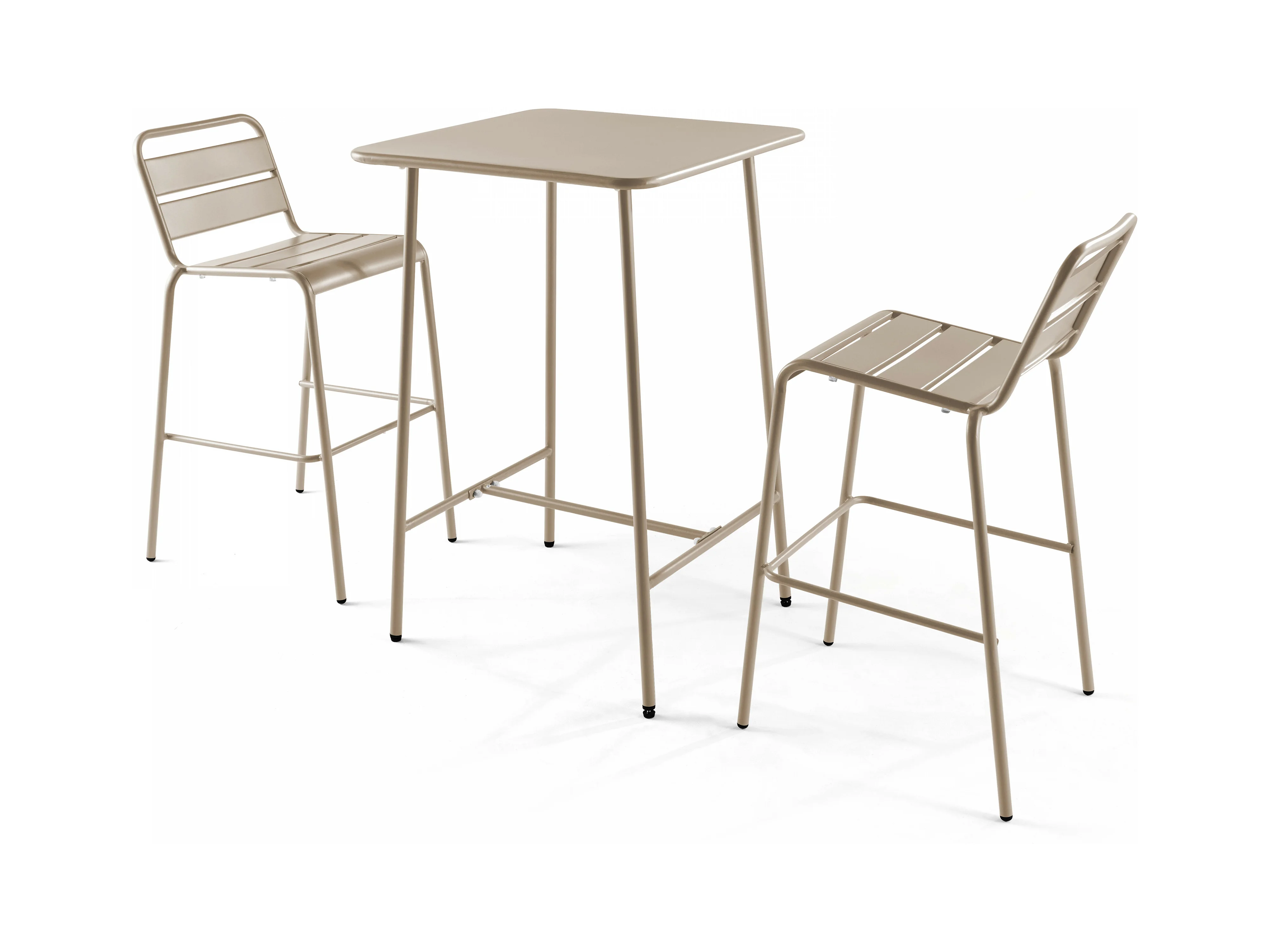 Ensemble table de bar et 2 chaises hautes en métal taupe - Palavas