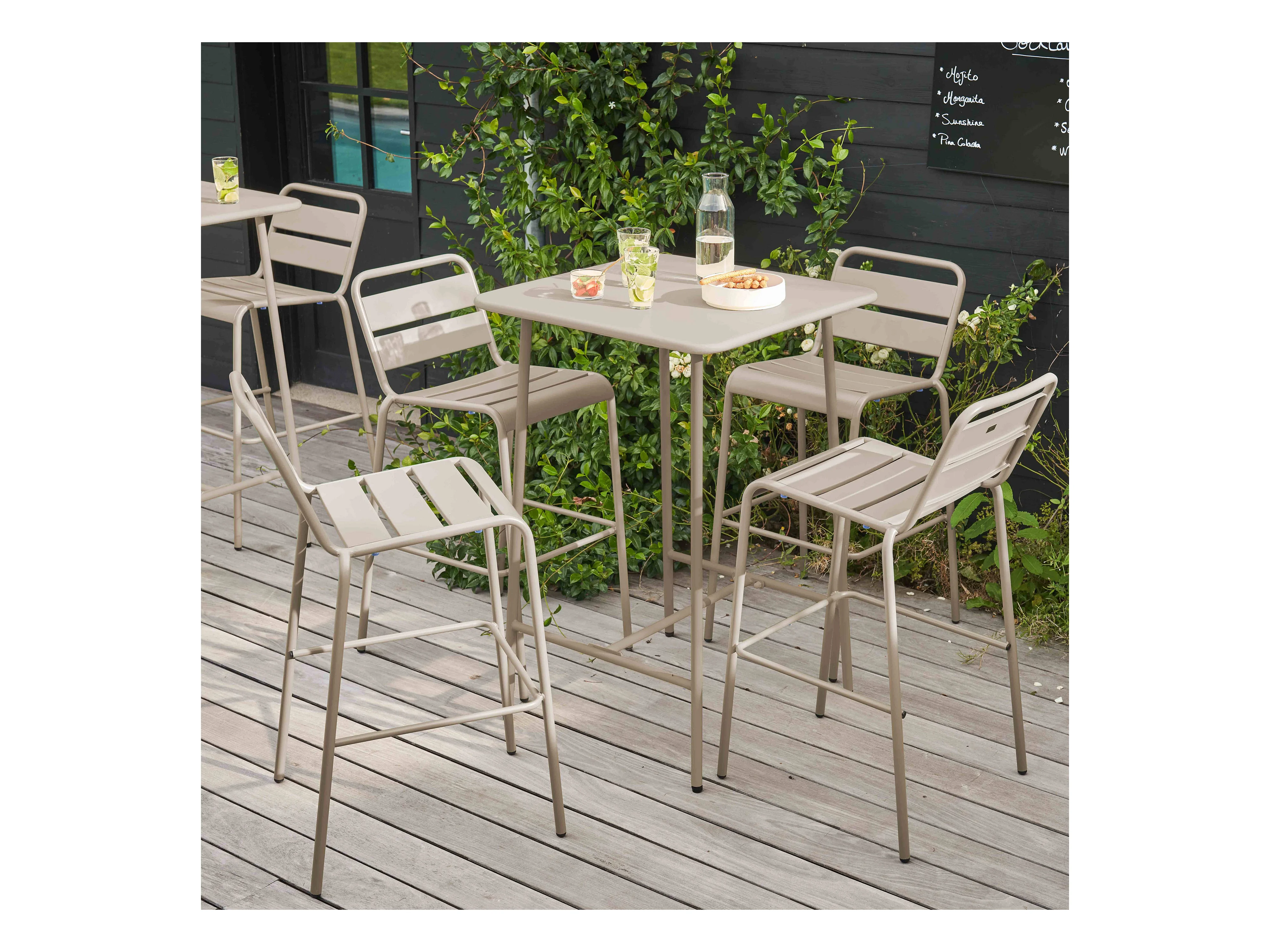 Ensemble table de bar et 4 chaises hautes en métal taupe - Palavas