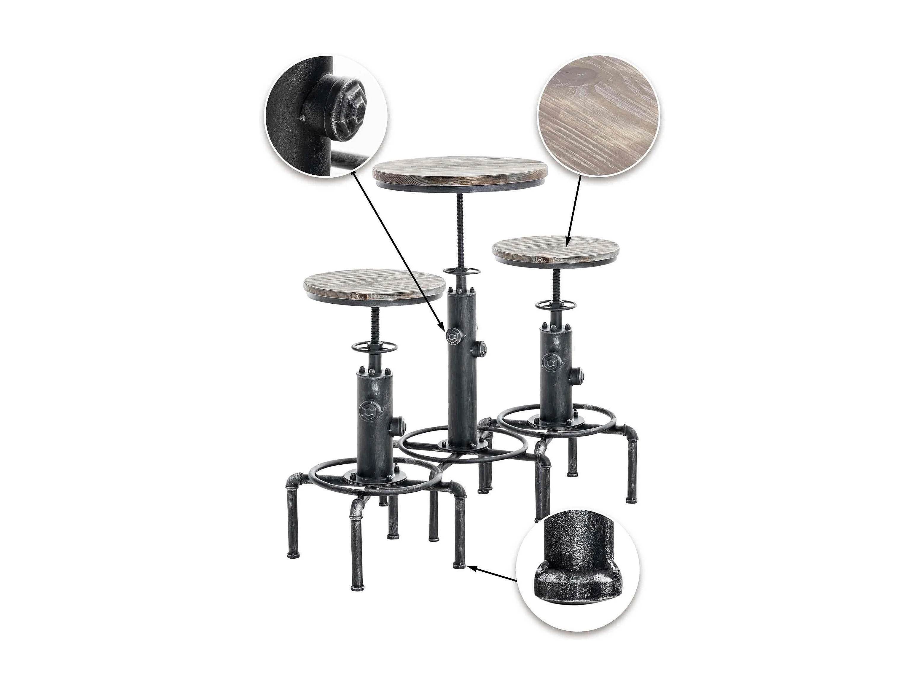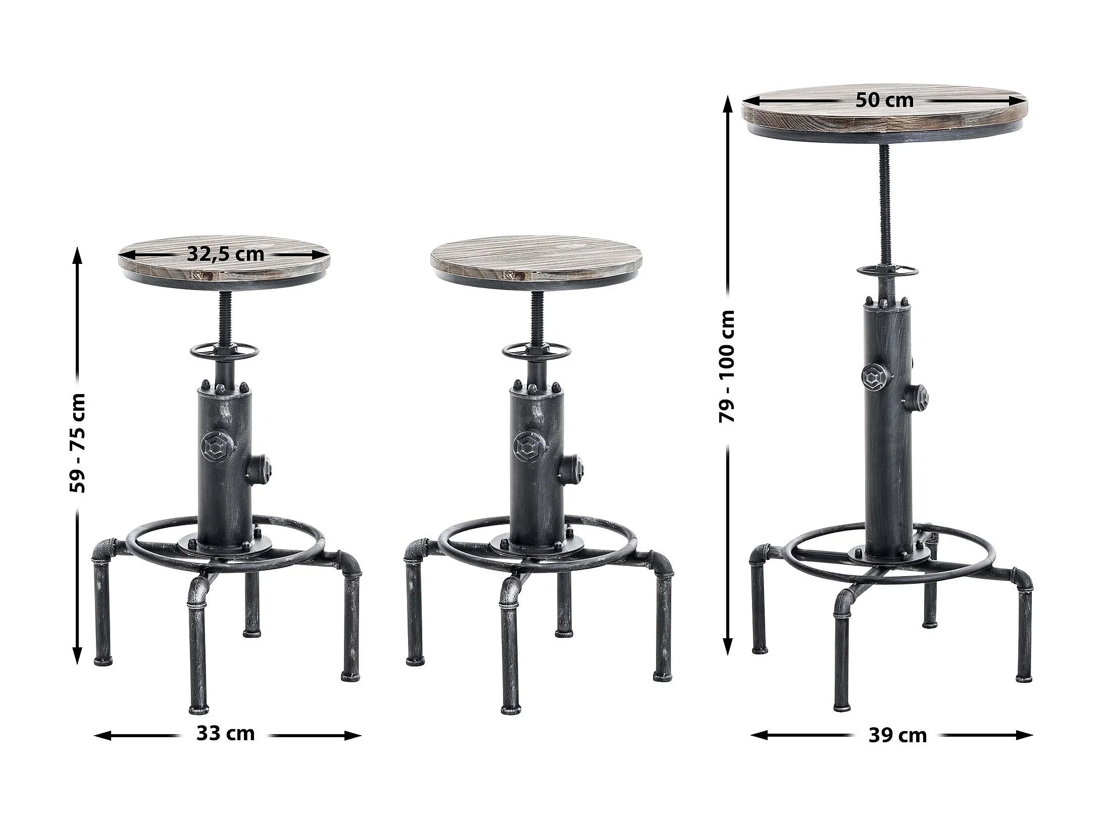 Ensemble table de bar - Métal - Argent antique - Lynton