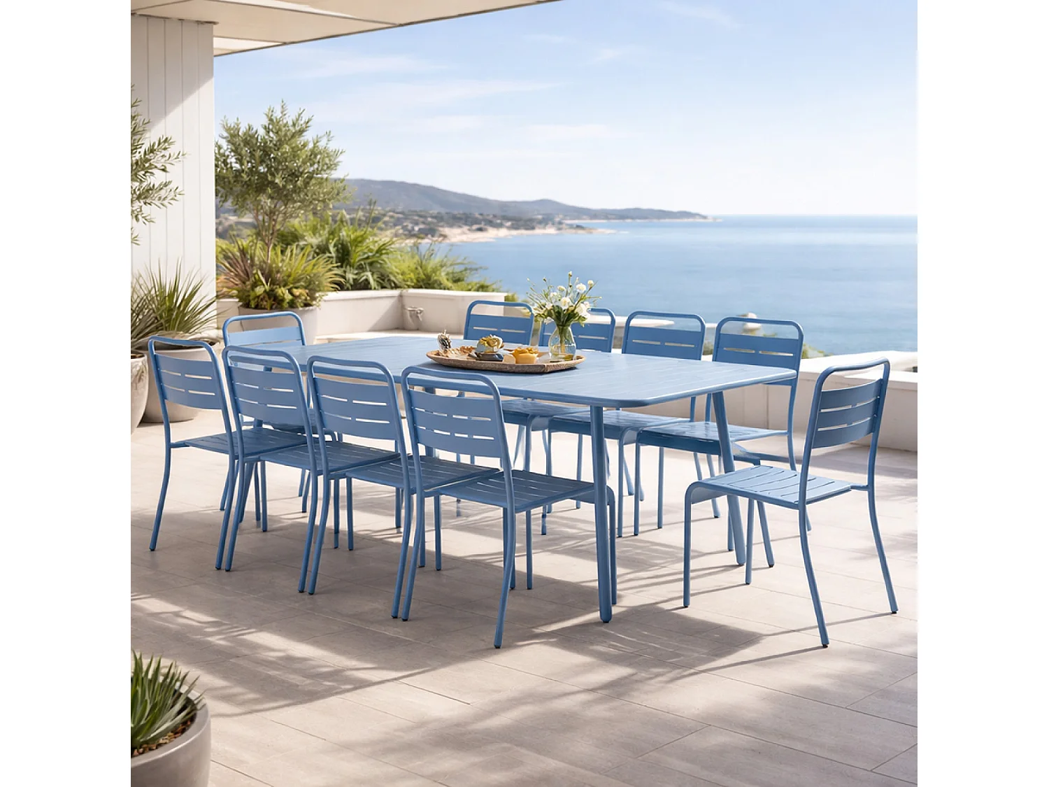 Ensemble table de jardin 234 cm et 10 chaises bleu BERGAME