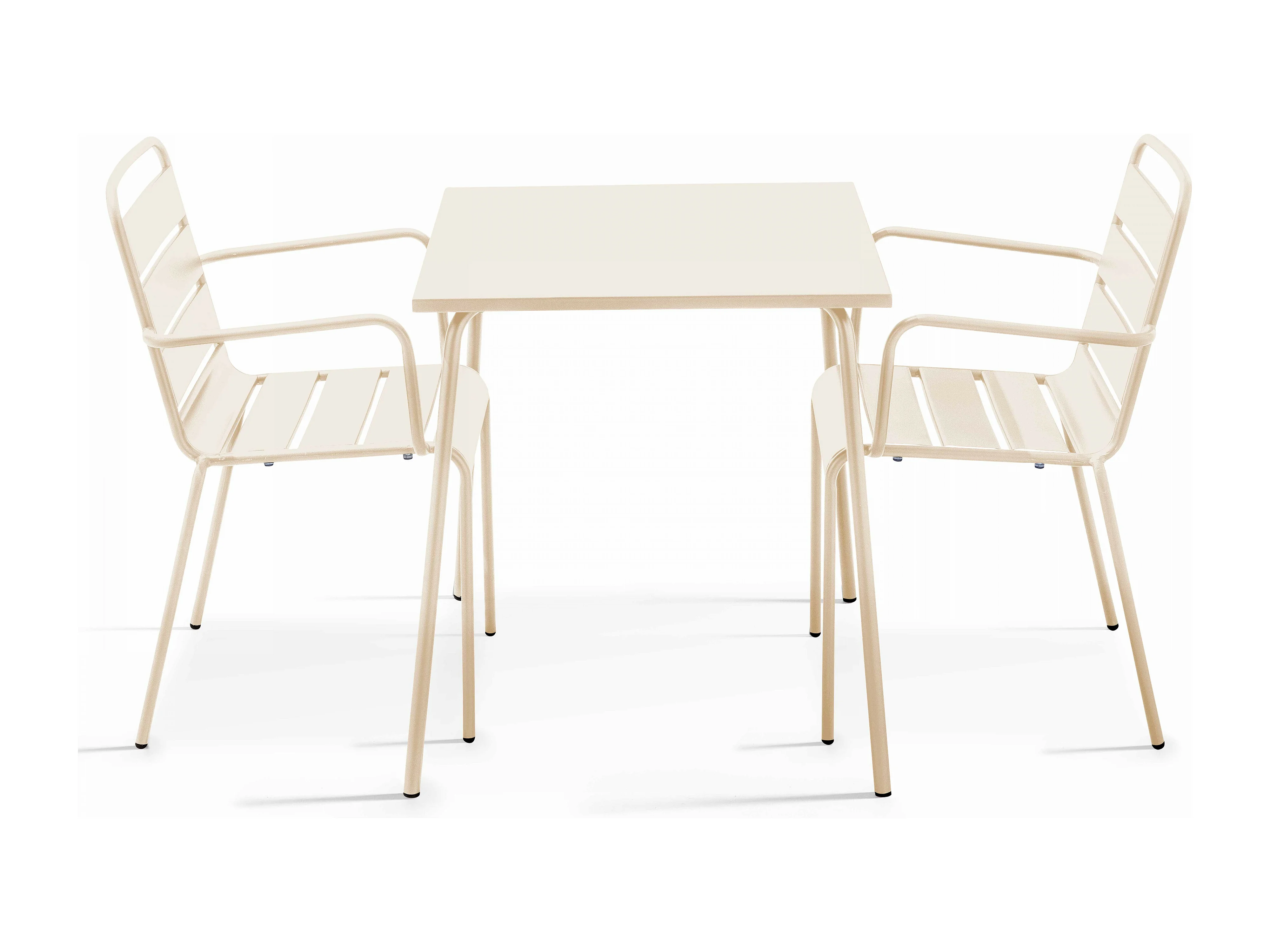 Ensemble table de jardin carrée et 2 fauteuils acier ivoire - Palavas