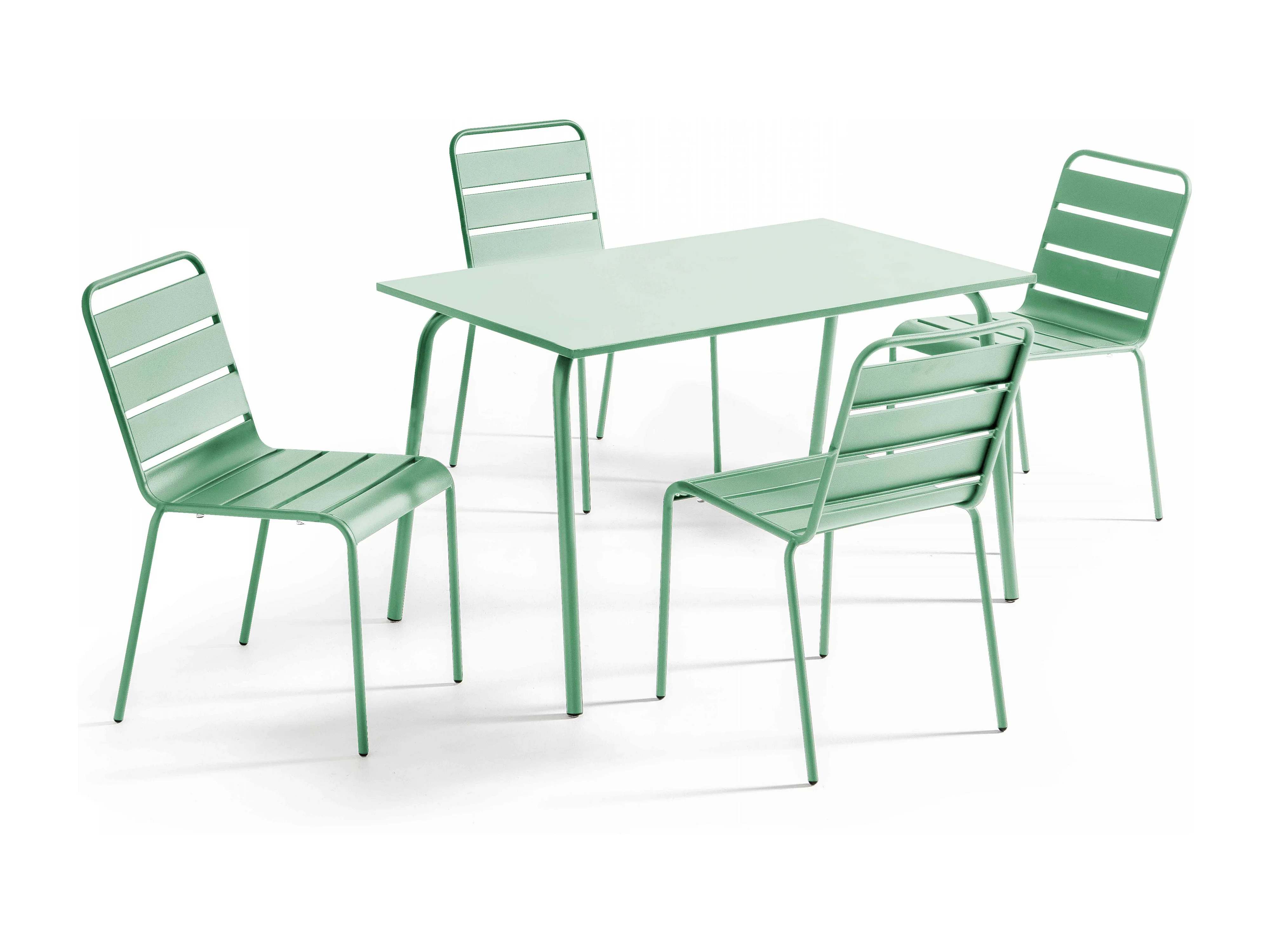 Ensemble table de jardin en métal et 4 chaises vert sauge - Palavas