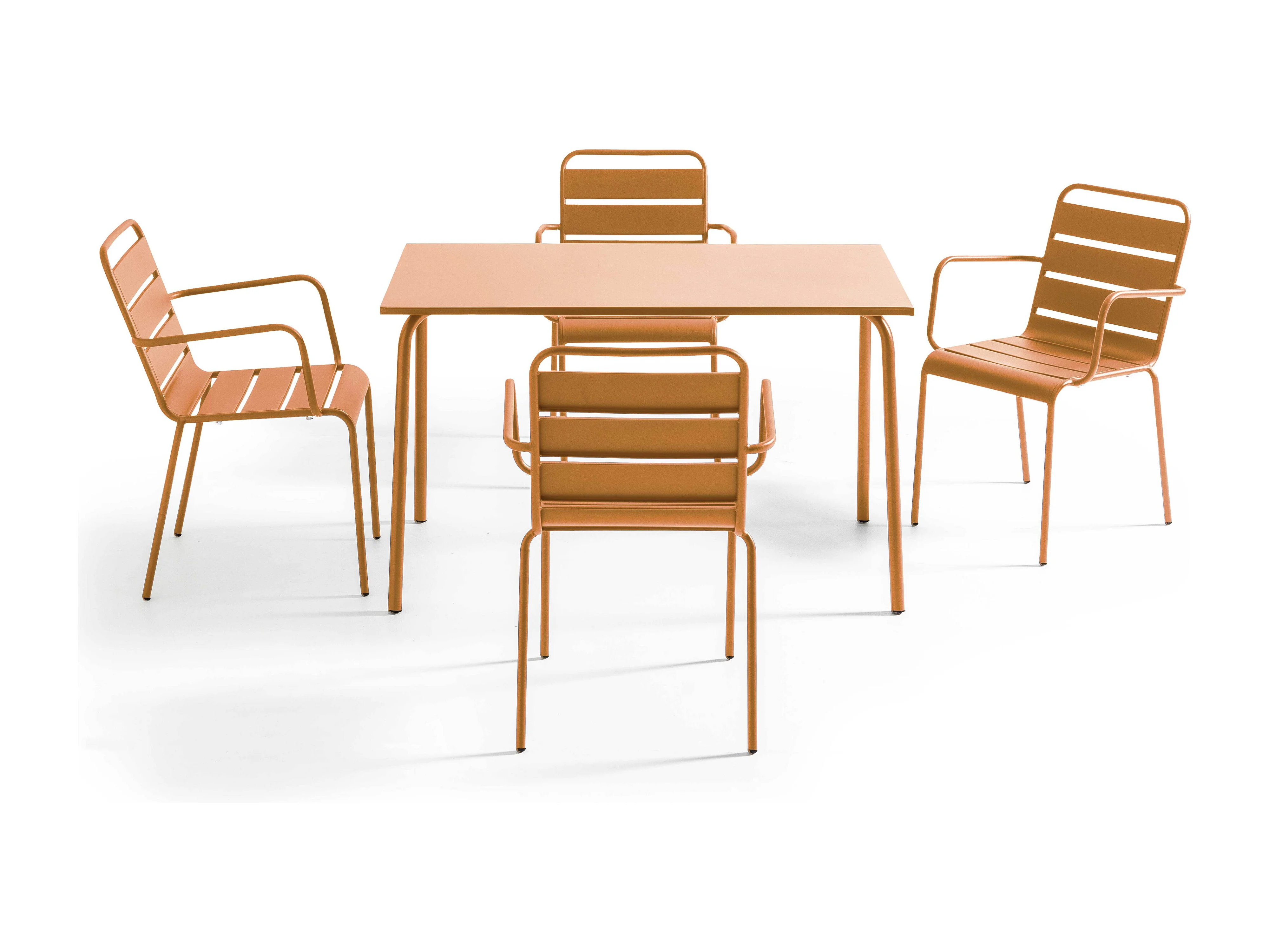 Ensemble table de jardin et 4 fauteuils en métal Caramel - Palavas