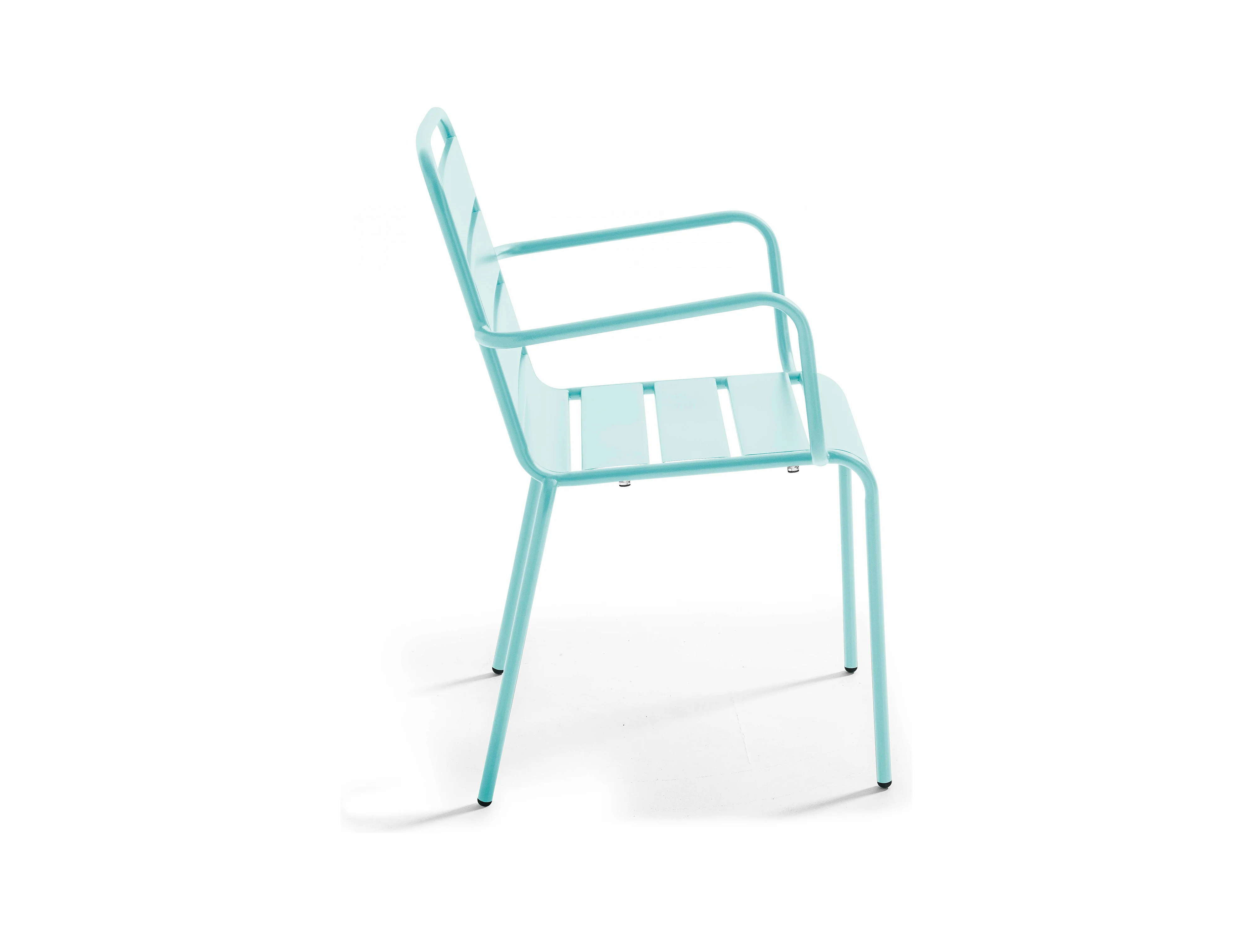 Ensemble table de jardin et 4 fauteuils en métal turquoise - Palavas